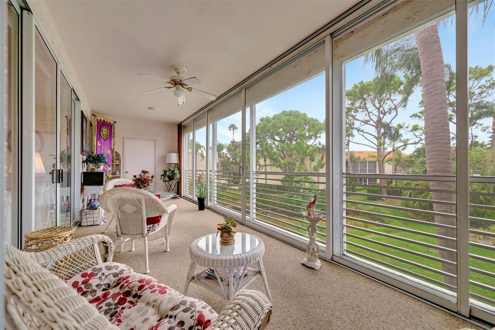 Welcome to Vizcaya, a gated Mediterranean-inspired oasis where elegance meets convenience. The entrance to the condo features a beautiful courtyard with a fountain. This beautifully maintained 3-bedroom, 2-bath condo (with one bedroom currently used as an office) offers a bright, open-concept living and dining area with vaulted ceilings and abundant natural light. The updated kitchen features a pass-through window to the dining area, perfect for entertaining. The spacious primary suite includes a vaulted ceiling, His/hers closets, and an ensuite bath with a relaxing jetted tub. The guest bath offers a convenient walk-in shower. Enjoy serene water views from the expansive enclosed lanai that spans the entire length of the home, overlooking a peaceful pond. Vizcaya residents enjoy resort-style amenities including four scenic lakes, a newly remodeled clubhouse with dance floor, modern kitchen, sauna, exercise room, library, billiards room, and a large heated pool. An active social committee keeps the calendar full! Ideally located near IMG Academy, the stunning beaches of Anna Maria Island, Longboat Key, and Siesta Key, and just minutes from downtown Bradenton, Sarasota, theaters, shopping, museums, and top medical centers. Condo also features a deeded covered carport space with additional storage closet. Living room fireplace does not convey Start living your Florida dream today!
