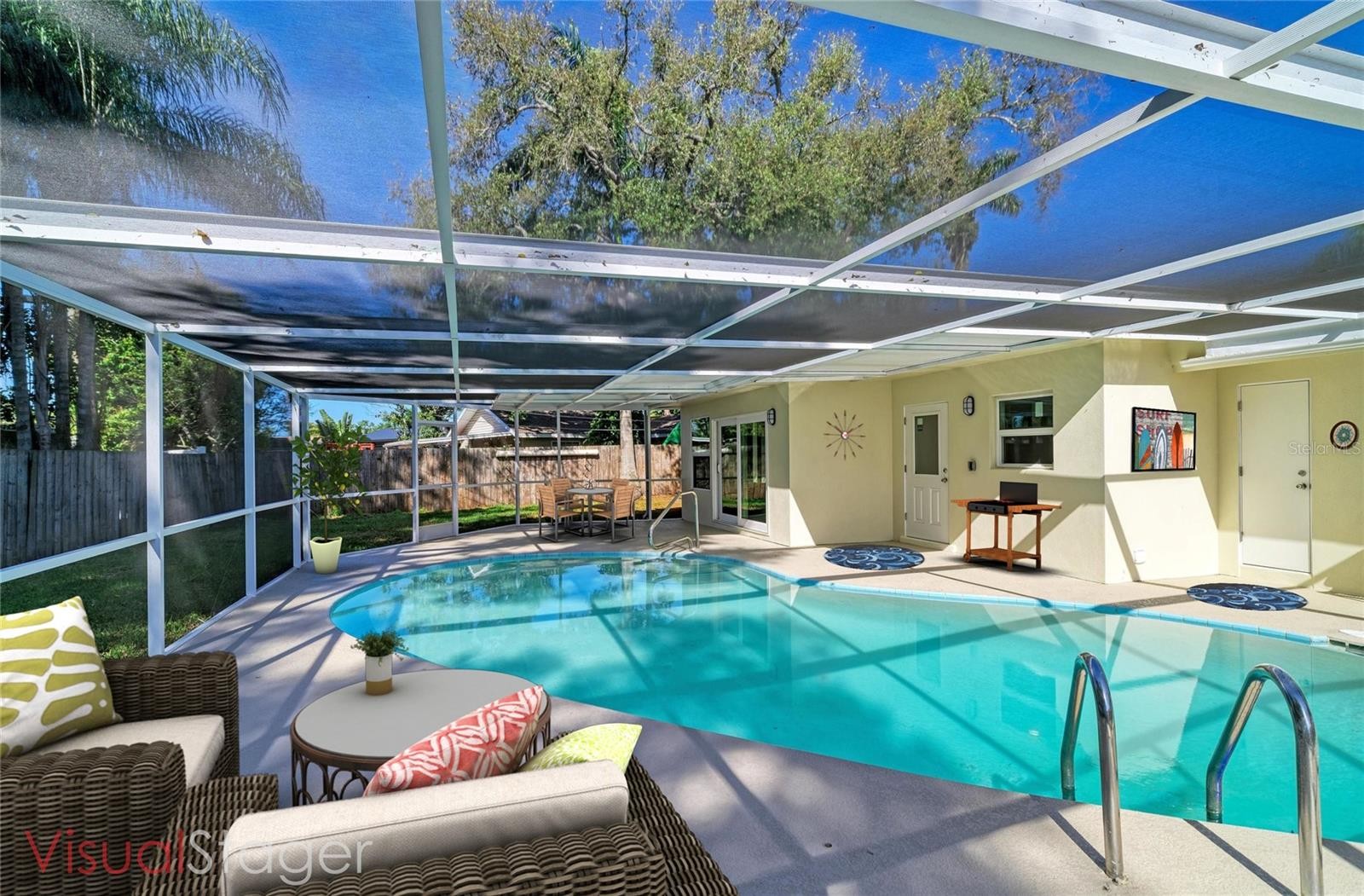 One or more photo(s) has been virtually staged. NOTHING LEFT TO DO...Except Move in and Start Living the GOOD LIFE!!! NEW EVERYTHING in this amazing West Side Pool Home featuring: A Kitchen your family chef will adore that offers all new Maple Bright White shaker cabinets (soft close), Pristine Quartz Counter Tops, farm sink with flex fixture, ALL NEW APPLIANCES (Stainless Steel of course), and a Center Island with breakfast bar perfect for a morning cup of your favorite coffee or lunch on the go as you head out to the beach. So what else is NEW? Check out the completely UPDATED BATHS, the master offers a full size shower and a furniture quality vanity with quartz counter, the hall bath features a tub and is renovated and ready for your family. The BONUS ROOM is perfect for Dad's Den, Kids play room or an office for your home based business. The master bedroom features New French Doors leading out to the Pool, Perfect for a Private night time swim. How about a NEW METAL ROOF...your insurance agent will love that...perhaps you're concerned about summer storms but with all new HURRICANE RATED WINDOWS and DOORS there's no worries here! Keep your electric bills under control with Icynene insulation sprayed on the underside of the roof coupled with a Refurbished AC and all new duct work you'll be cool all summer long without breaking the bank. COMPLETELY UPDATED ELECTRIC, Indoor Laundry, Tankless Water Heater, exquisitely fashioned wood look ceramic tile flooring through out, all new interior doors, new fans and fixtures, New garage door...the list just keeps going! A rated schools, easy access to shopping and located just 5.5 miles to Anna Maria Island where you find Gentle Ocean Breezes, Sandy Beaches and Spectacular Sunsets nightly. This one is BRAND NEW to the market so CALL TODAY and make your Dream of Home Ownership a reality.