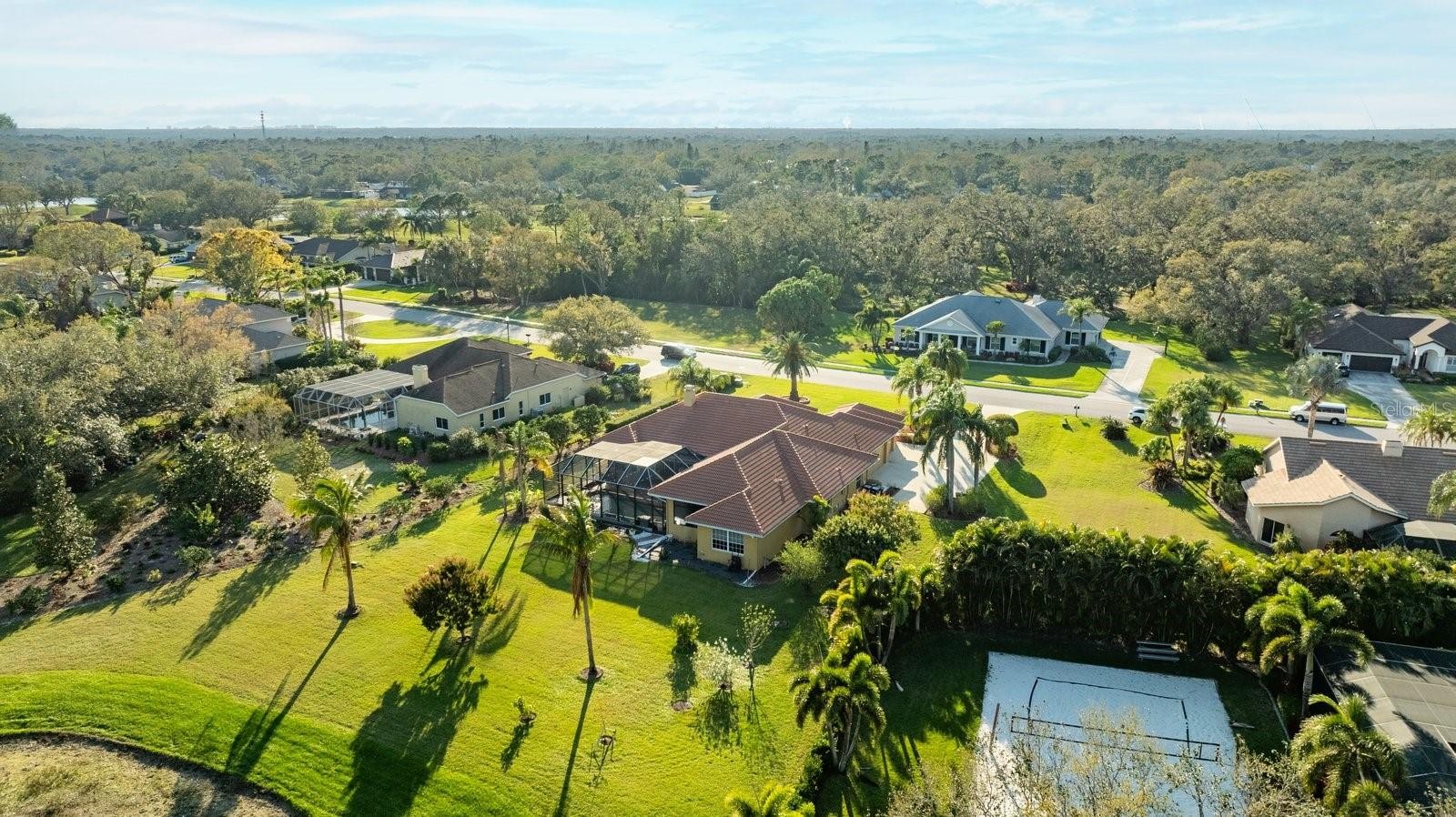 A stunning Peregrine custom built home nestled in the sought-after River Club neighborhood located on the cusp of Lakewood Ranch. Imagine arriving at a residence set back from the road on nearly an acre of land, where your extra-long driveway ushers you into a world of elegance and comfort overlooking the picturesque River Club Golf Course. Step through the impressive double glass front doors into an open floor concept adorned with 12ft and 15ft high ceilings and gleaming marble floors that flow effortlessly into a gourmet kitchen and living space designed for entertaining and comfort. With four spacious bedrooms, three baths, a dedicated den/office, and a huge laundry room complete with a walk-in pantry, every detail has been meticulously maintained. Recent updates include a new barrel tile ROOF (2021) and A/C in 2021, two WATER HEATERS in 2024, POOL HEATER 2023 and modern amenities such as SOLAR landscape lighting and state-of-the-art CCTV monitoring. The home offers a luxurious primary suite with a generous walk-in closet and en suite, while the true 4 CAR GARAGE provides ample space for all your motor toys. Enjoy seamless indoor-outdoor living as sliding doors fully open to reveal a large pool terrace with retractable shades, two covered entertainment areas, and a gas (propane) fireplace perfect for those cozy evenings. Fresh paint inside, no CDD, and a low HOA, this residence combines a refined style with practical functionality, inviting you to experience the very best of Florida living. Minutes away from Lakewood Ranch amenities, SRQ Airport, I75 commuting and Sarasota/Manatee County beaches.