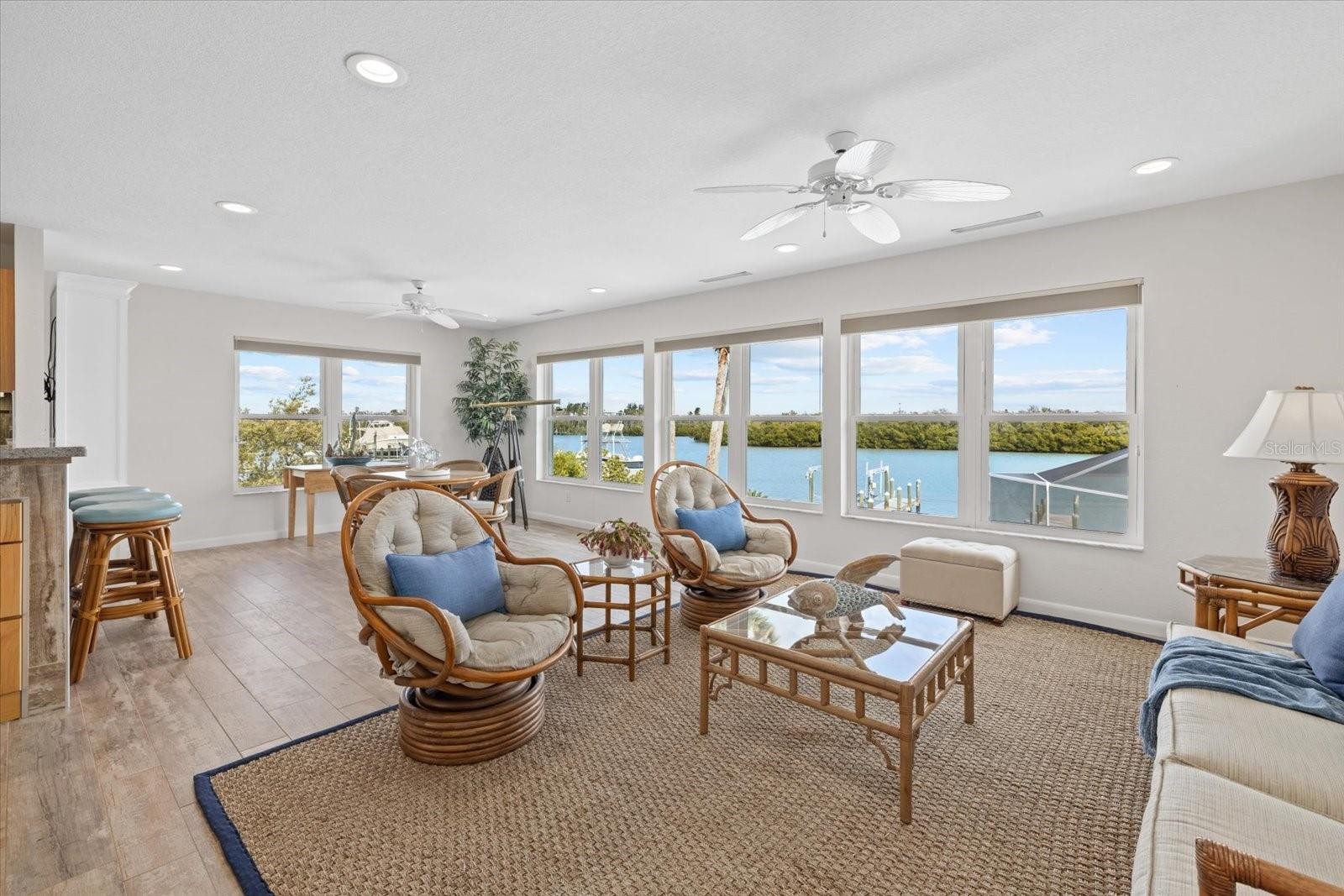HURRICANE PROTECTION! PRIVATE BOAT RAMP! HEATED POOL! 611 S Casey Key Road is a true waterfront sanctuary where every detail is designed to celebrate life on the Intracoastal, with effortless and immediate access to the Gulf. Recent updates provide both luxury and peace of mind, including two HVAC systems (2021 and 2025), new heated saltwater pool and pool cage (2022), garage doors (2019) as well as IMPACT GLASS windows. Set on approximately 1/3 of an acre on iconic Casey Key, this elevated coastal residence offers a front-row seat to sparkling water views from every bedroom, complemented by gentle sea breezes and unforgettable sunsets. The main living area is thoughtfully positioned on the second floor, where a wall of windows frames the ever-changing blues of the Intracoastal Waterway. An open and airy great room invites you to linger, whether hosting gatherings or enjoying quiet mornings as dolphins play. The same continuous tile flooring throughout enhances the clean, coastal aesthetic while keeping the focus on the views beyond. The kitchen is both functional and inspiring, perfectly open to the great room and oriented toward the water, featuring quartz countertops that extend into all bathrooms for a cohesive, elevated finish, making entertaining and everyday living equally refined. The primary suite is spacious and tranquil, offering water views that greet you at sunrise, a walk-in closet, and an en-suite bath with a tiled shower and glass doors. A second en-suite bedroom also features a walk-in closet, a beautifully appointed bath, and equally stunning water views, ideal for guests who appreciate both comfort and privacy. A third bedroom, also enjoying water views, is served by a full bathroom with a tub/shower combination. A versatile bonus room with barn doors and a closet easily functions as a fourth bedroom, home office, or sitting room to catch a glimpse of the Gulf. A second-floor laundry adds everyday convenience. On the ground level, a generous two-car garage is paired with a dedicated workshop; perfect for boating gear, paddleboards, kayaks, or creative projects. This unfinished non-conforming space offers endless possibilities. Outdoors, the property transforms into a private waterfront resort. Relax beside the HEATED saltwater pool (2022) surrounded by a travertine tile pool deck, step onto your dock to cast a line, or launch directly from your PRIVATE BOAT RAMP and cruise to the Gulf with NO BRIDGES, a rare and invaluable luxury for avid boaters. Waterfront dining, sandbars, and open-water adventures are just moments away. When the mood shifts to beach time, enjoy the privilege of deeded Gulf beach access, only steps from the sand, turquoise waters and gorgeous sunsets. With HURRICANE IMPACT GLASS throughout and a coveted location near the public beaches and charm of Nokomis and a short drive to downtown Venice and the arts and culture of Sarasota, this home delivers an unparalleled blend of privacy, elegance, and coastal freedom. This is not simply a residence—it is a lifestyle defined by water, light, and the rare joy of living near to where the Intracoastal meets the Gulf.