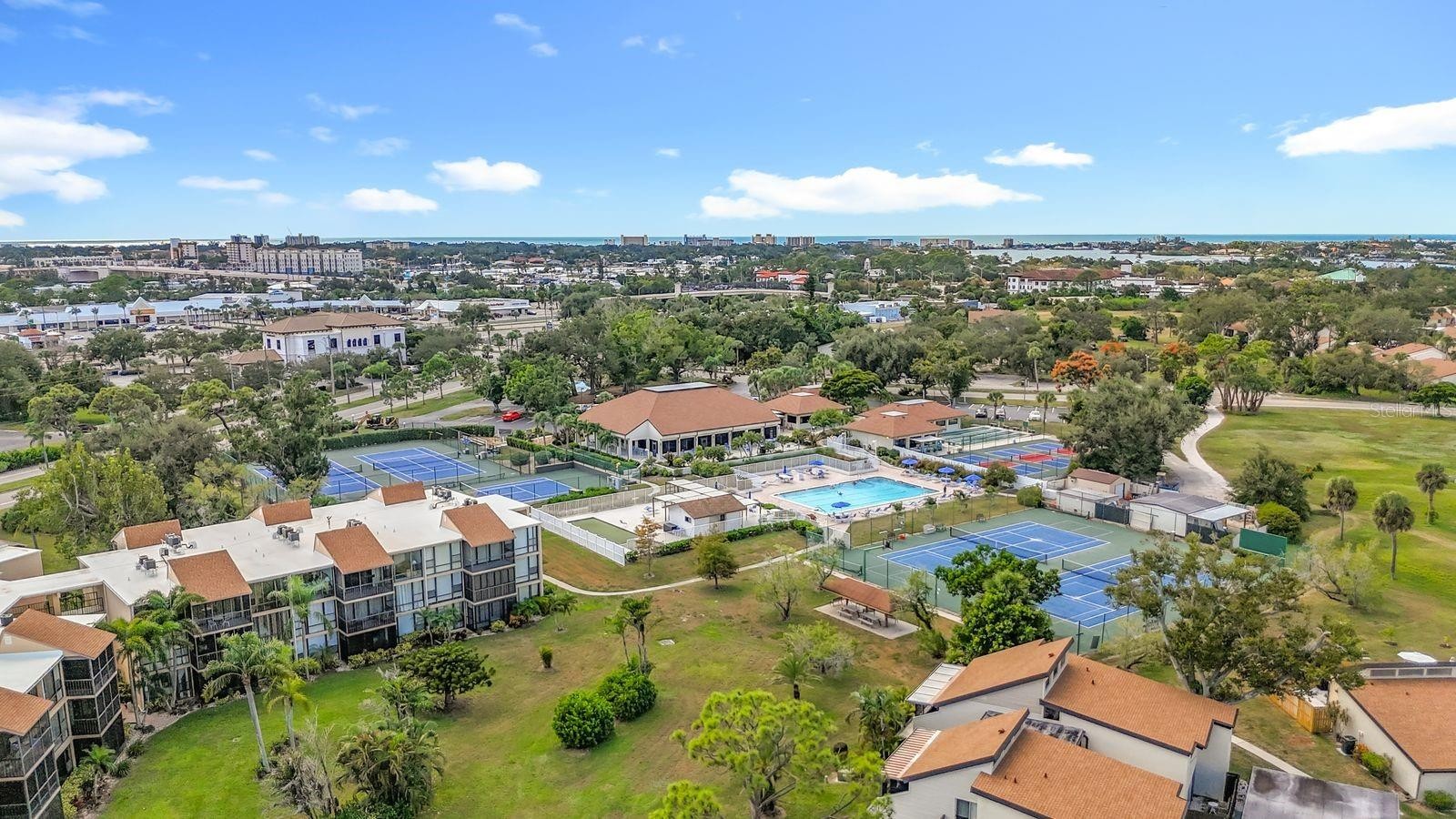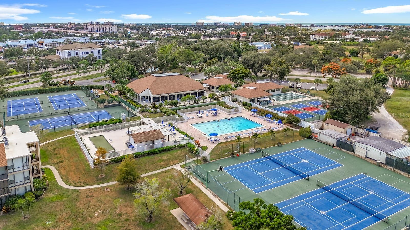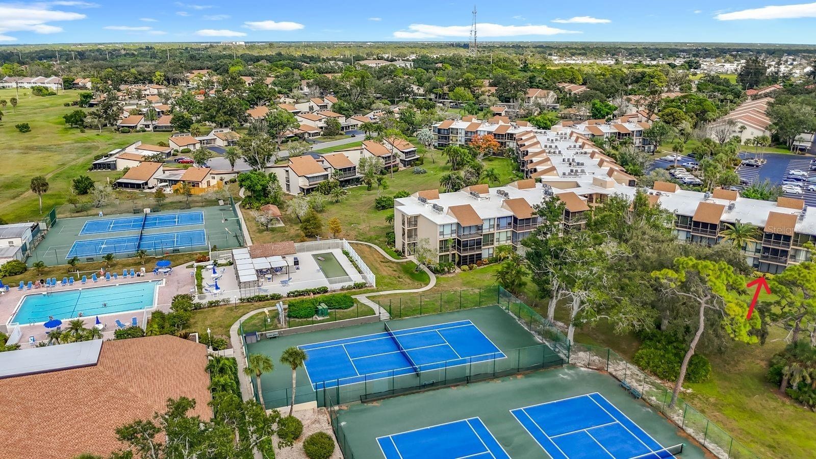 LOCATION MATTERS! Who wants their lania to look out to the parking lot? Or be located in a building with expensive upcoming assessments? This ground-floor unit in the Cardinal Building has a beautiful wooded view of the tennis courts and clubhouse, and a short stroll to the pool and fitness center. Immaculate turn-key 2-bedroom, 2-bath condo featuring top-rated upgrades, premium fixtures and modern finishes, floor-to-ceiling windows, and tile throughout. The flexible floor plan allows for two en-suite bedrooms, or an office/den area with its own bath. The gourmet kitchen boasts premium granite countertops, custom soft-close cabinetry, a built-in oven, and a countertop cooktop. Both bathrooms have been beautifully remodeled with raised vanities, elegant cabinetry, and top-tier tile surrounds. Open-concept living area with an abundance of natural light. Spacious bedrooms with ample closet space, including a walk-in closet in the primary bedroom. Other storage spaces include a linen closet, a broom closet, and an indoor utility closet. The screened lanai with added plastic surround windows affords the luxury of extending your living space, even on rainy days. Move-in ready and designed for comfort and style—this condo comes turn-key and includes everything you need to live in it full-time, as a snowbird, or a seasonal rental. The location can't be beat, and the view is amazing! Just steps away from the Bird Bay Clubhouse and community center, tennis and pickleball courts, and fitness center. Conveniently located near shopping, dining, and major commuter routes. All assessments have been paid, and no upcoming assessments are proposed for the Cardinal Building. See it today!