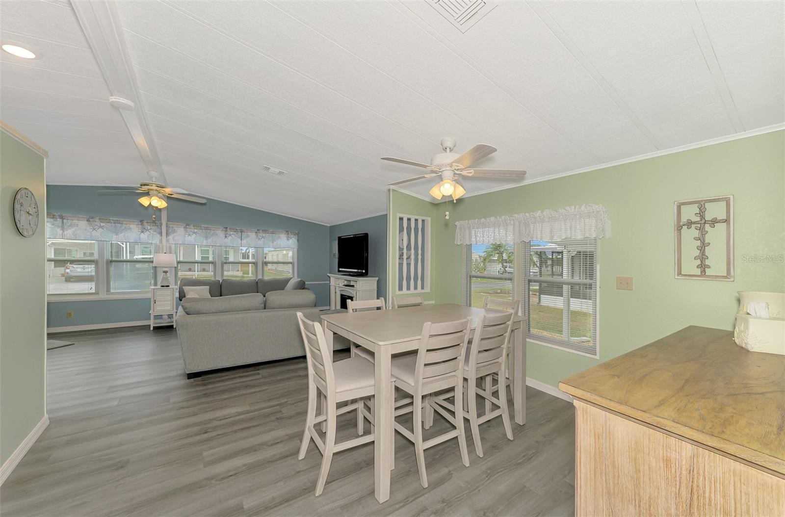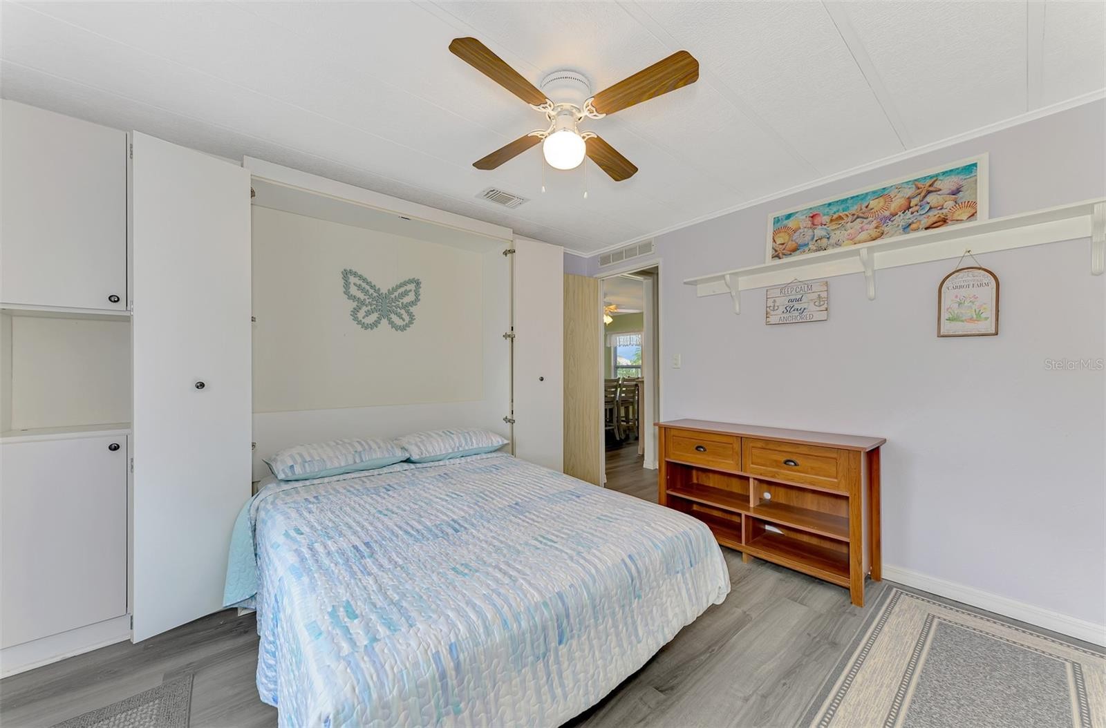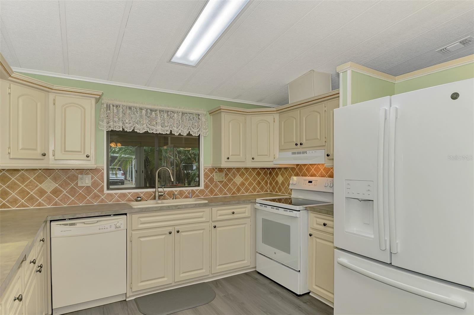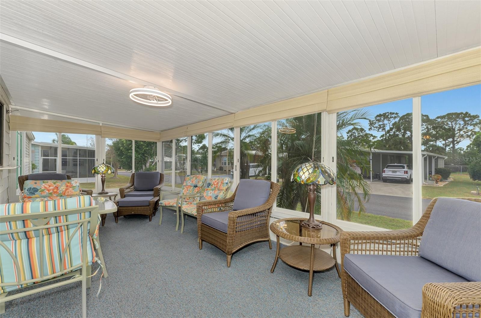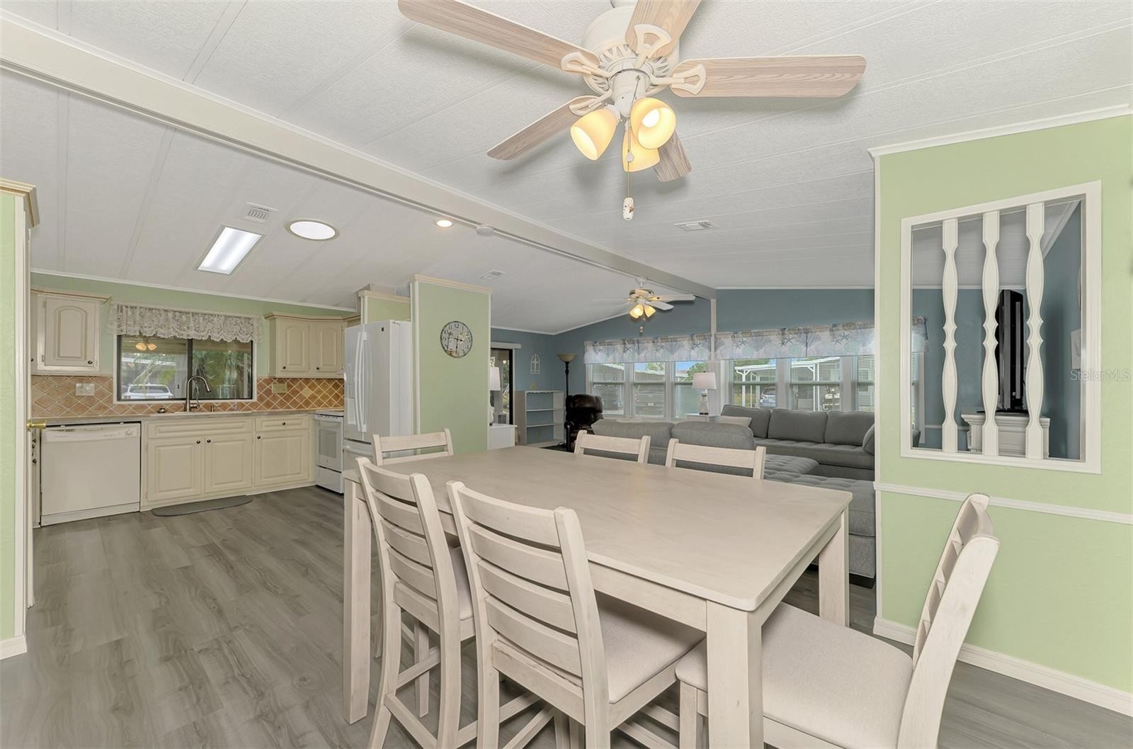 You’ll love this beautifully maintained Turn Key 2-bedroom, 2-bath home, where thoughtful design and modern updates come together in perfect harmony. Located in the friendly 55+ Mobile Home Community of “La Casa”, this home features a new AC unit (2023) with a humidistat and ceiling fans that ensures year-round comfort, newer windows, acrylic Florida room panels (2022), a brand-new shingle roof (2022), and a fresh carport and vinyl siding (2023)—all adding peace of mind and lasting value. From the moment you step inside, you’ll notice how much care and detail have gone into creating a space that feels both inviting and practical. The entryway sets the tone with a built-in desk and cabinets—ideal for organization or creative projects—along with easy access to the guest bath. Move into the heart of the home, where the kitchen shines with its smart layout and upgraded features. A solar tube skylight fills the space with natural light, while the new sink, disposal, faucet, and modern glass cooktop add a sleek, contemporary feel. The living room offers a seamless flow to the enclosed Florida room, a carpeted and vinyl-wrapped space filled with sunshine—perfect for enjoying a quiet morning or relaxing in the evening. A sliding door opens to the front walkway, blending indoor comfort with outdoor charm. The guest bedroom features a convenient Murphy bed and two double closets, maximizing space and functionality. The guest bath includes a tub/shower combo, linen closet, and modern vanity for a polished look. The primary bedroom is spacious and comfortable, featuring two double closets and an adjoining bath with a walk-in shower, linen storage, and updated cabinetry for a fresh touch. Throughout the home, new Pergo flooring enhances the open feel, while vaulted ceilings in the kitchen, dining, and living areas add to the airy atmosphere. The utility room includes a large washer and dryer, new plywood walls, and plenty of space for storage. Outside, the landscaped yard shines with custom curbing, pebble stones, and a vibrant foxtail palm, offering a relaxing outdoor setting. Perfectly situated on a corner lot, this home blends comfort, quality, and charm—ready for you to move in and enjoy every thoughtful detail. Centrally located, close to shopping plazas and restaurants! Call to schedule your private tour!