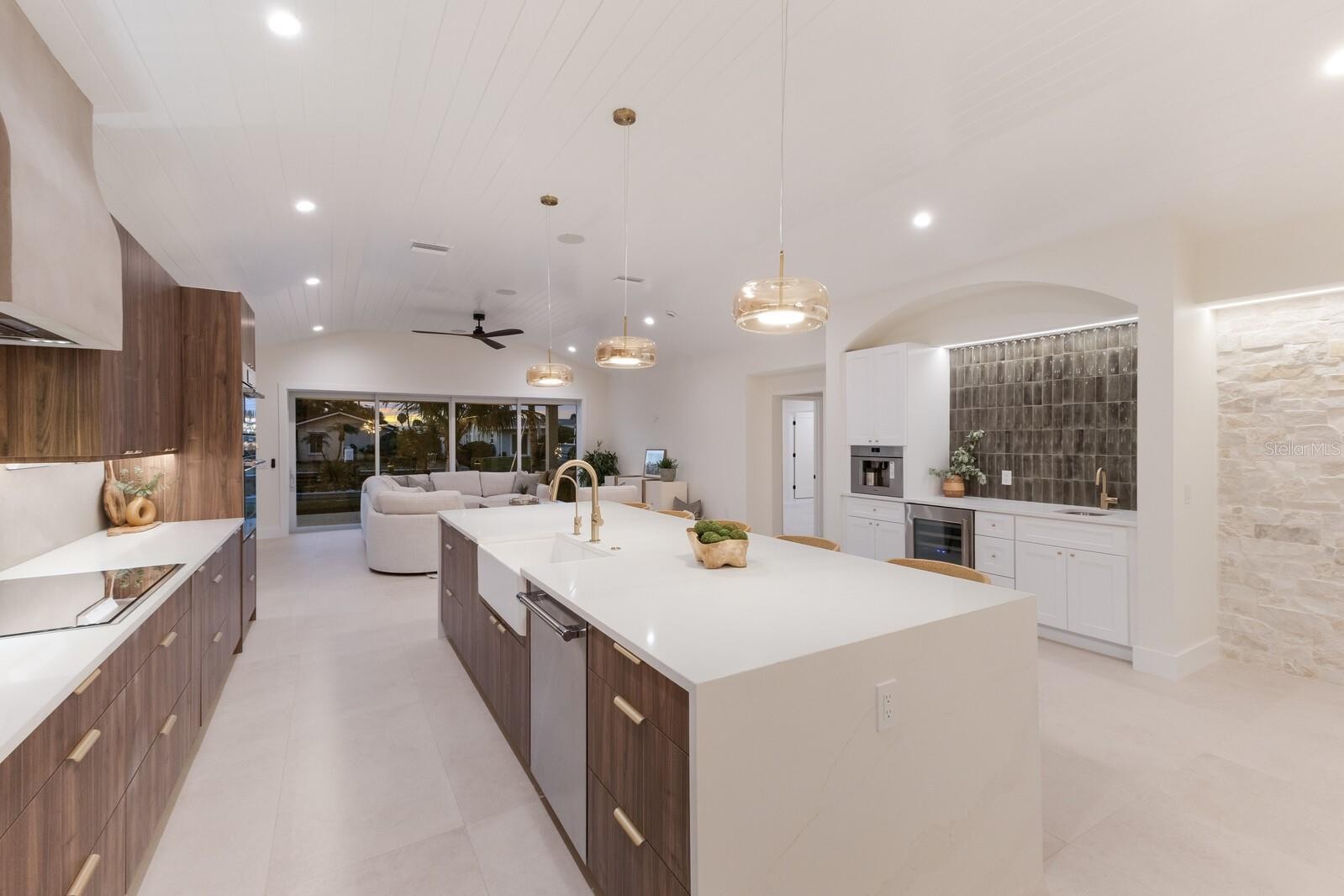 A coastal masterpiece tucked within the prestigious Key Royale community on Anna Maria Island, this spectacularly reimagined 4BD/4.5BA waterfront residence offers over 90 feet of tranquil canal frontage with a newly constructed dock and seawall, and a rare blend of intentional design and elevated island living. Every inch of this home has been thoughtfully crafted with extraordinary attention to detail, where warm textures, natural materials, and curated finishes work in harmony to create a space that feels as refined as it is welcoming. The striking kitchen is anchored by richly toned cabinetry, Thermador appliances, wet bar/coffee station and an expansive quartz waterfall island, while designer lighting throughout the home brings atmosphere and cohesion to each room. Vaulted tongue-and-groove ceilings, arched stone accented transitions, and sculptural elements add a layer of architectural interest. Each bathroom is a statement in itself, with moody tile work, brass fixtures, and spa inspired features like a freestanding soaking tub set within the shower enclosure. Additional amenities include smart home technology seamlessly integrated through a Control4 system, outdoor speakers, PGT impact-rated windows and doors, all new MEPs including sewer, and the Easy Damn Flood Barrier System offering peace of mind. Step outside into your private oasis, where lush landscaping surrounds a stunning resort-style pool and spa, coral stone outdoor shower, covered lounge space, an oversized dock with seating area and direct access to Tampa Bay. Residents of Key Royale enjoy the option of joining the private Key Royale Club offering golf, dining, and social events. With monthly rental zoning in place, you’ll have added flexibility whether this is your full-time sanctuary or part-time escape. Don’t let this coastal slice of island life slip away and make it your dream escape today!