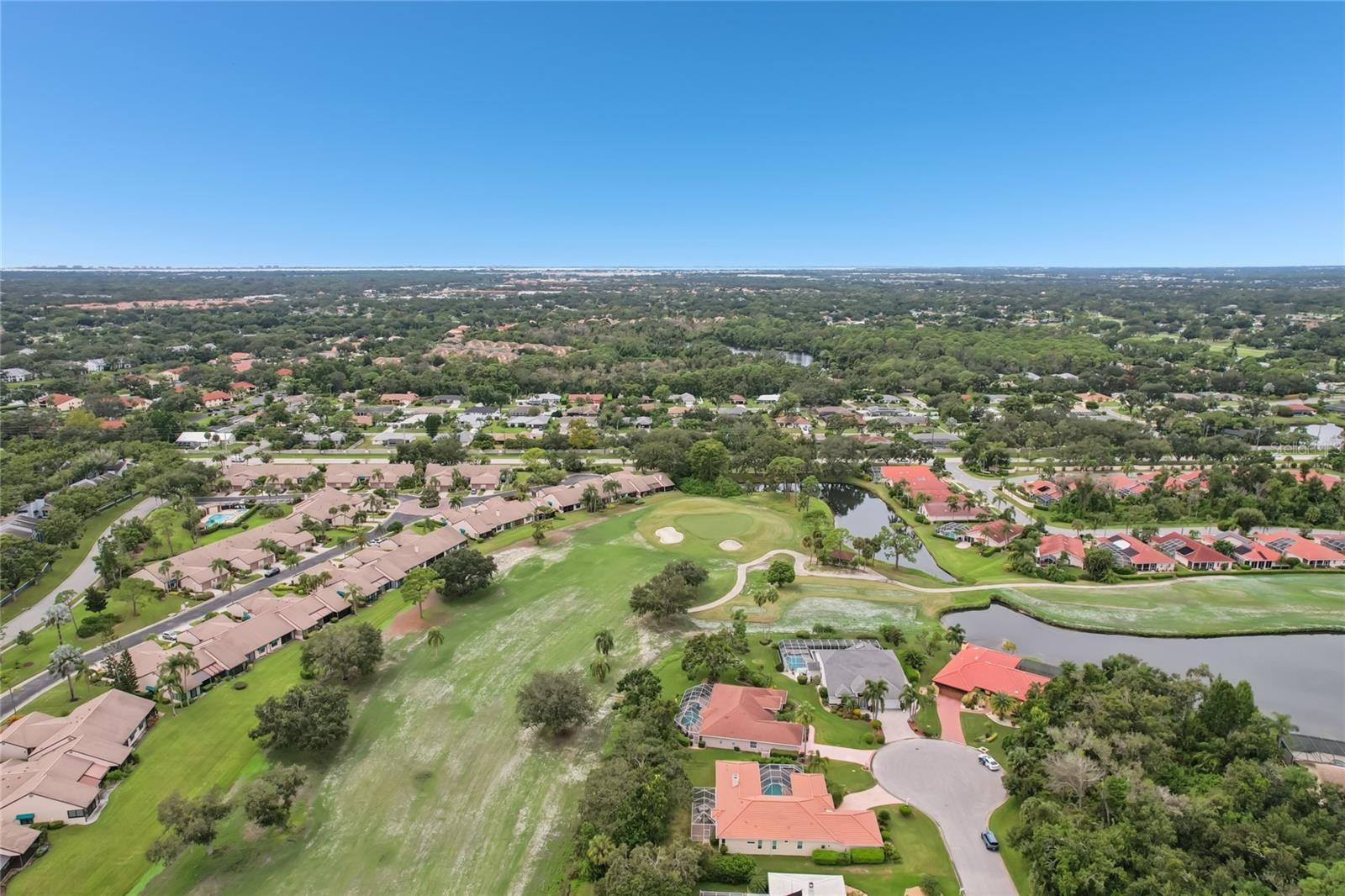 Situated at the end of a quiet cul-de-sac, this beautiful 3 bedroom, 2 bath home offers the grand lifestyle of luxury Florida living. Featuring pocket sliding glass doors, the central living room completely opens onto the screened-in lanai that includes a heated pool/spa, and golf course view! The brightly lit kitchen has an abundance of cabinet space, modern appliances, quartz countertops, built-in desk for organizing family business and a beautiful breakfast nook overlooking the pool. An adjacent formal dining room lies just outside the kitchen two guest bedrooms; full bath and separate laundry room are at one end of the house. At the other end, the main bedroom is spacious and features his/her walk-in closets, double sinks, a large tub and walk-in shower. A sliding glass door opens onto the lanai as well. Tasteful plank vinyl wood grained flooring is found throughout the home. Beautifully landscaped, the property has a long concrete driveway and large two-car garage. The Ron Garl 27 hole University Park Country Club is a short distance away and several membership categories (social, racquet and full golf) are available. additional club information is available from the listing agents. Abundant shopping and restaurants are within minutes.