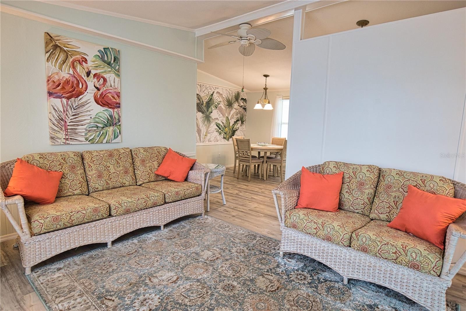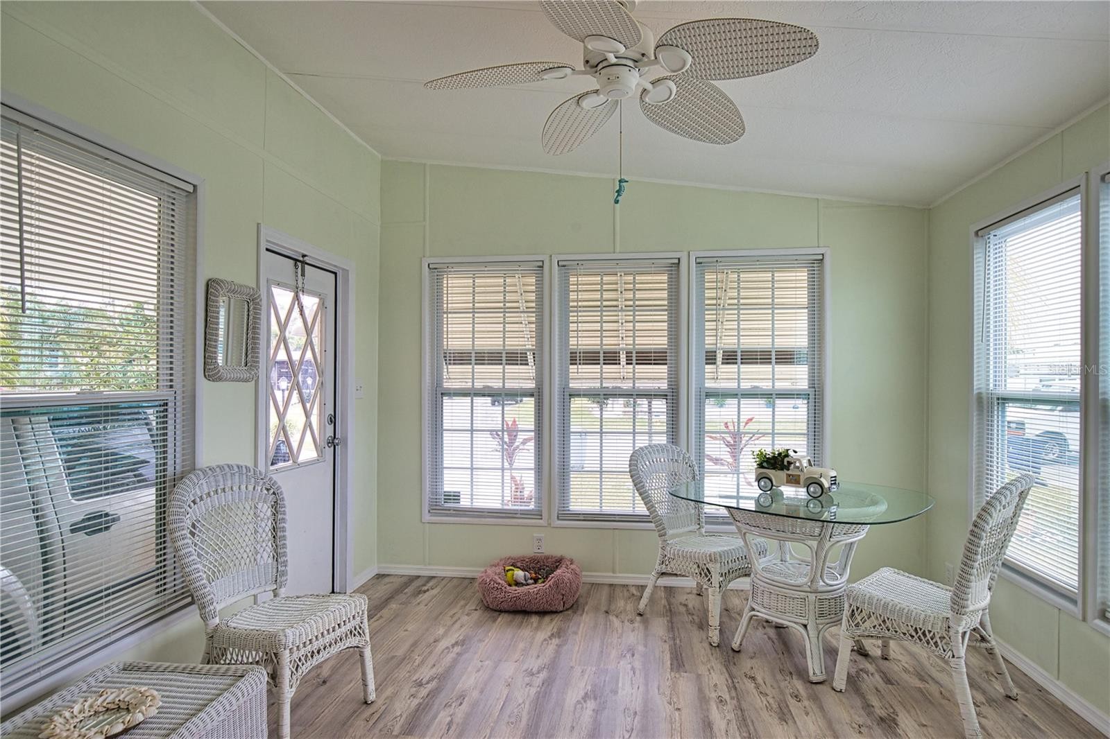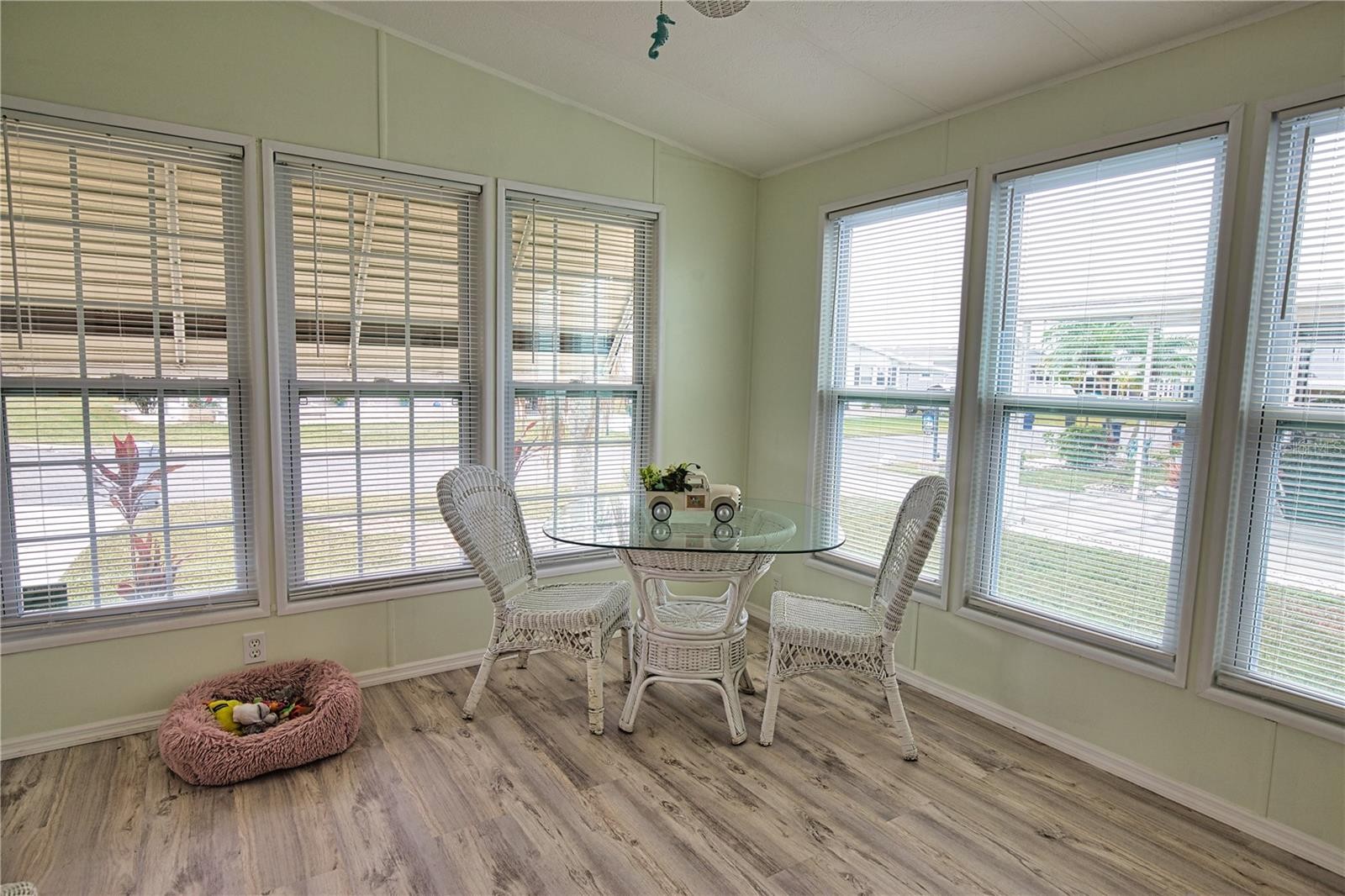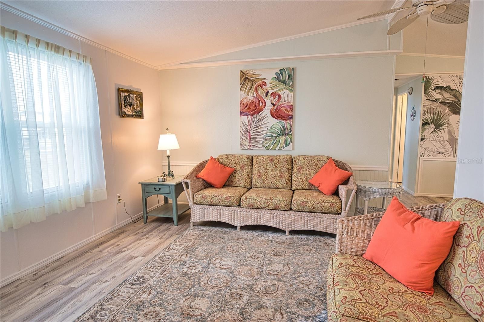 Discover the allure of this charming home nestled on a tranquil street in a vibrant 55+ community ~ your gateway to a slice of paradise! The inviting kitchen and dining room combination makes entertaining a joy, effortlessly transitioning to a cozy living room that opens to the delightful Florida room, perfect for basking in the sunshine or hosting gatherings. The guest bedroom exudes comfort, complete with a spacious closet and a conveniently located remodeled bathroom just steps away. The primary bedroom is a serene retreat featuring a generous walk-in closet and exquisite updated ensuite bathroom. This home boasts essential upgrades, including sturdy plywood subflooring, elegant luxury vinyl flooring throughout, new windows to let in the Florida sunshine and fresh vinyl siding that enhances its curb appeal. With newly installed vapor barrier and insulation, your comfort is assured year-round. Offered turnkey, this home invites you to personalize it and savor La Casa's incredible lifestyle. Don't miss out on making this dream home your reality! Welcome to La Casa, an enchanting community where 974 home sites are beautifully set among native trees, surrounded by spacious common areas and eight serene lakes. La Casa is perfectly located between Sarasota and Fort Myers. Enjoy easy access to shopping, sightseeing, golfing, and fishing, all while immersing yourself in the rich culture of Southwest Florida. Experience the warmth of Southwest Florida’s winters in a relaxed environment, far from the east coast hustle. Our lush, mature landscaping reflects the dedicated care of residents and management. Stay connected with our complimentary Wi-Fi at the Clubhouse, Activity Building, and Recreation Hall while you soak up the sun. La Casa is a family-friendly haven where you can enjoy tranquility while remaining close to vibrant attractions. Come visit our charming oasis and discover why La Casa is the ultimate destination for snowbirds and year-round residents!