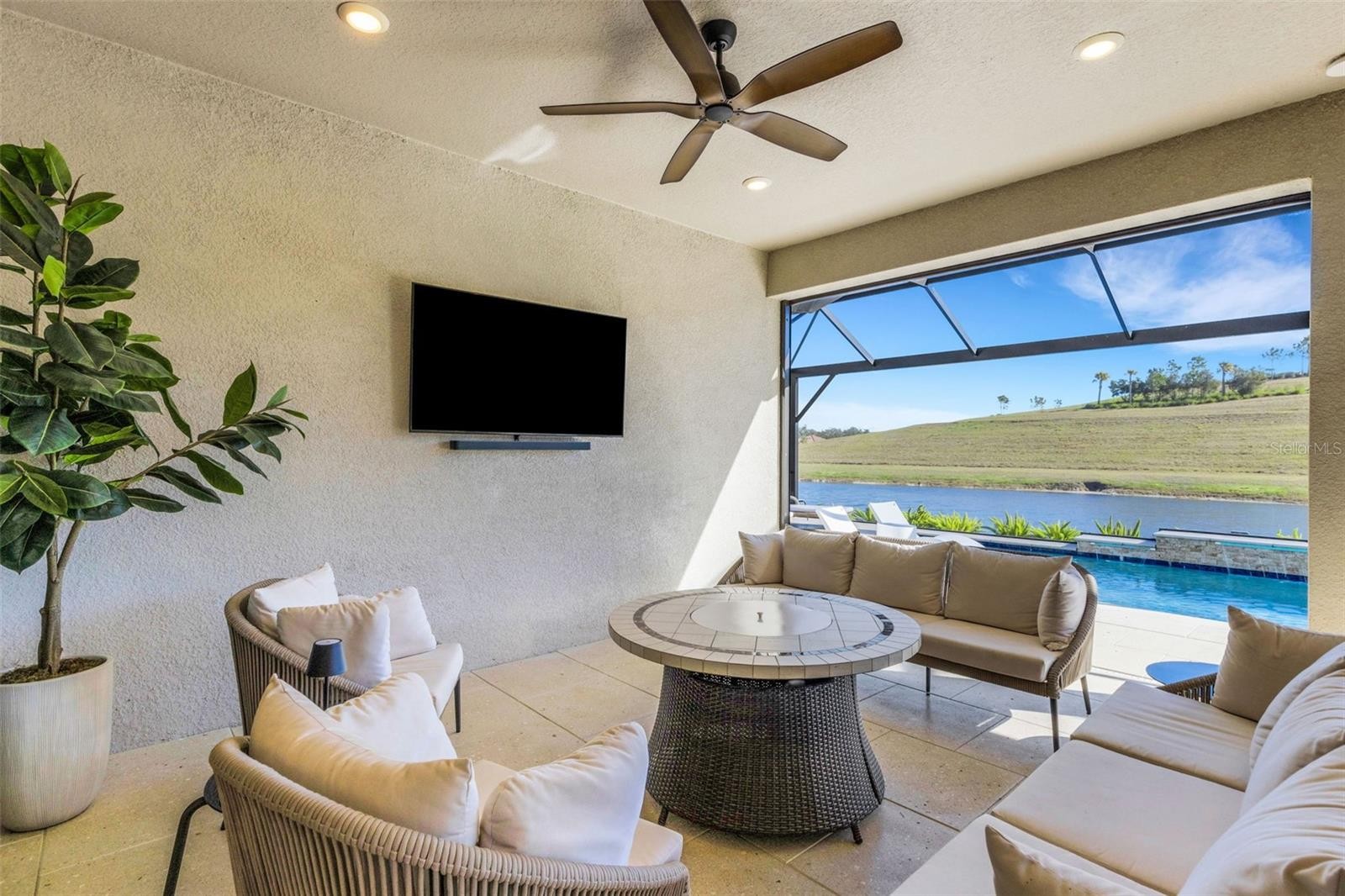 WHAT A GRAND VIEW IT IS!!! Welcome to 6186 Grandview Hill Ct. Stop scrolling...this is the ONE! Life is too short so it's time you "go for it" and indulge in that upscale, resort style, maintenance free living that you have always dreamed of and deserve. This show stopper offers you just that. Perfectly situated on one of the best lots in Esplanade with breathtaking views of Mt. Tumalo and coupled with peaceful, private, sparkling lake views. This quality built, highly sought after Lazio floor plan by Taylor Morrison Homes has 3Br, 3Ba, a Den and a 3 car tandem garage. The outdoor living space is truly spectacular featuring an oversized lanai with fully equipped outdoor kitchen and a gorgeous heated saltwater pool--ideal for entertaining or relaxing while soaking up those Florida rays. The original owners spared no expense with all the dreamy finishes and upgrades. It is absolutely pristine and will not dissapoint the most discriminating buyer. This fabulously light, bright and open floorplan showcases ceramic tile throughout the entire home. Beautiful crown molding, tray ceilings, wainscoting and decorative mirrors and wood trim wall accents add class and character. The owners replaced all the builder grade quartz counters in the kitchen and all baths with absolutely stunning, all natural quartzite. The heart of this home is the glorious kitchen with its oversized extended quartzite center island, 42" wood cabintes with crown molding, stainless steel appliances, gourmet natural gas range with hood, double oven, decorator glass backsplash and wine fridge. The spacious Primary suite enjoys fabulous views from your bay window, a heavenly sized walk-in closet, double vanities with lighted mirrors and additional cabinetry. Other upgraded features that grace the home include: plantation shutters, custom wood shelving in all the closets, additional cabinets in laundry room, designer light fixtures and ceiling fans, remote control shades on the lanai, gutters, spray foam insulation and upgraded landscaping. Esplanade offers top of the line amenities and vibrant social activities which include an on-site Lifestyle Manager, an elegant clubhouse, resort-style heated pool with cabanas, fitness center, tennis, pickelball, fire pits, bocce ball, a Bark Park, full service spa and concierge service! Residents enjoy picturesque views and access to Mt. Tumalo with its walking trails and workout stations. This gated, maintenance-free community is ideally located just minutes from UTC Mall, dining, Sarasota-Bradenton International Airport, I-75, Benderson Park, Lakewood Ranch, Waterside Place, downtown Sarasota, and St. Armands Circle and more— and only a short drive to the world-famous white sand beaches of Florida’s Gulf Coast. You simply can’t beat this location — or this relaxed luxury lifestyle.