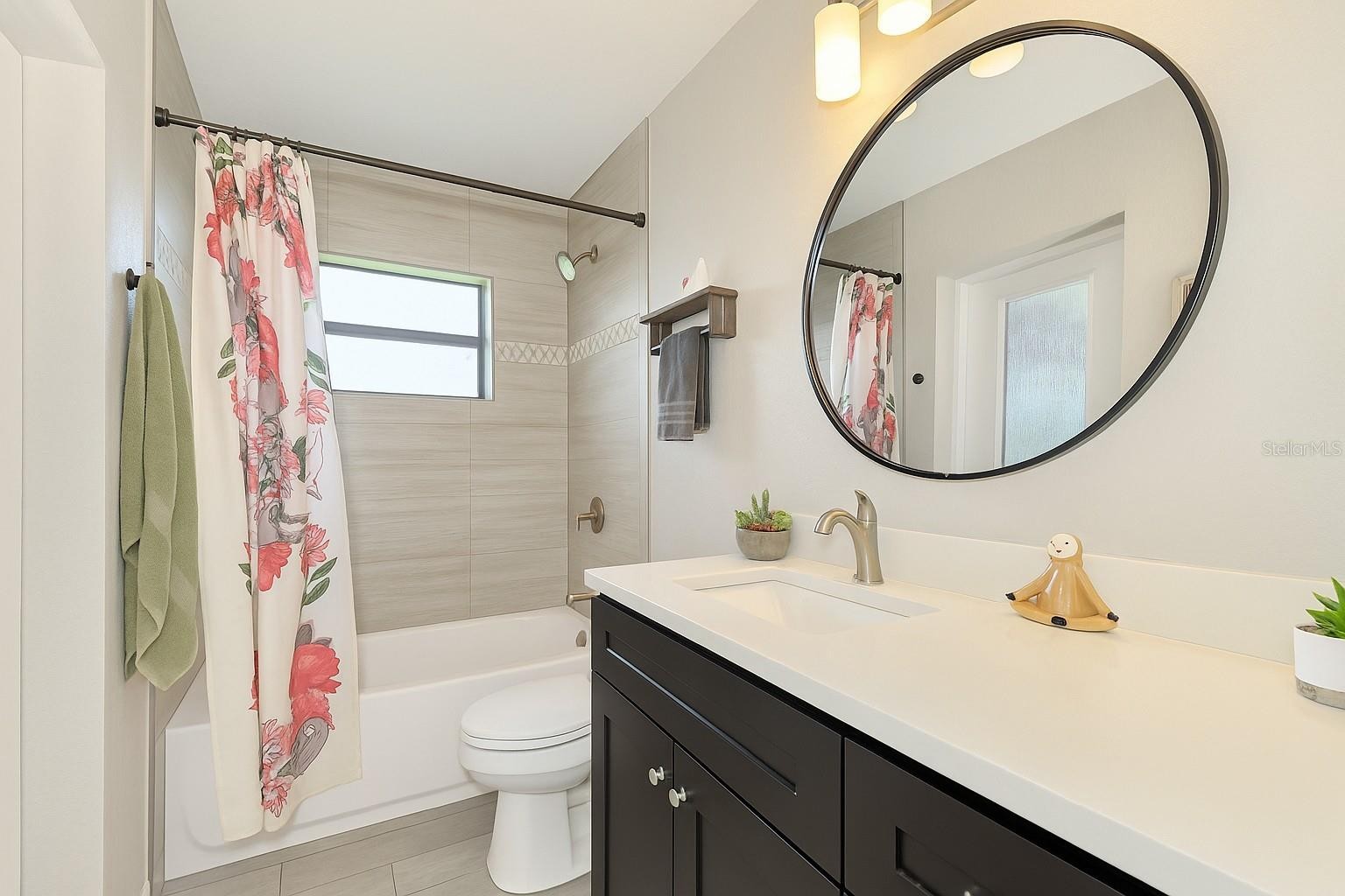 NORTH PORT ESTATES BEAUTY! Built in 2019 and offering nearly 1,700 square feet of UPGRADED living space, this 3-bedroom, 2-bathroom home—with an ADDITIONAL DEN OR OFFICE featuring a decorative BARN DOOR that can easily serve as a 4th bedroom—delivers the perfect blend of style, comfort, and practicality. With a NEW ROOF (2023), no HOA fees, and NO FLOOD ZONE, this property is ready for worry-free living. Step inside and feel the open flow of cathedral ceilings and elegant plank tile flooring throughout. The great room seamlessly connects to a gorgeous modern kitchen, complete with a CENTER ISLAND QUARTZ OPEN BREAKFAST BAR, SLOW-CLOSE WOOD CABINETRY WITH CROWN MOLDING, SUBWAY TILE BACKSPLASH & BLACK STAINLESS -STEEL APPLIANCES and UPGRADED PENDANT LIGHTING. Whether preparing a meal or entertaining, this kitchen makes it easy and enjoyable. The dining area’s FRENCH DOORS open to an HUGE OVERSIZED 12x37-FT. COVERED LANAI, overlooking a FENCED BACKYARD with room to relax, play, or garden. (Yes, the trampoline can stay!) Enjoy outdoor living all year long in privacy and peace. The primary suite is a showpiece with a tray ceiling, a large walk-in closet, and a luxurious ensuite featuring DUAL QUARTZ SINKS, a GARDEN TUB, and a MULTI HEAD SHOWER. Both guest bedrooms are generously sized—13x11—with walk-in closets and ceiling fans. The guest bath includes a tub/shower combo and stylish finishes. Additional highlights include: indoor laundry with washer and dryer, BRICK PAVER DRIVEWAY & WALKWAY, FULL HURRICANE PROTECTION, newer well, UPDATED A/C, WATER SOFTNOR, and SECURITY CAMERAS. Located in sought-after North Port Estates, you’ll enjoy the quiet country feel while being just minutes from city conveniences. Nearby Myakkahatchee Creek Environmental Park offers scenic walking and biking trails, horseback riding, fishing, and picnic areas. You’re also close to I-75, the new Sarasota Memorial Hospital, shopping, restaurants, and top local attractions. Move-in ready, beautifully maintained, and priced right—this home checks every box. FURNITURE IS NEGOTIALE! Schedule your private showing today!