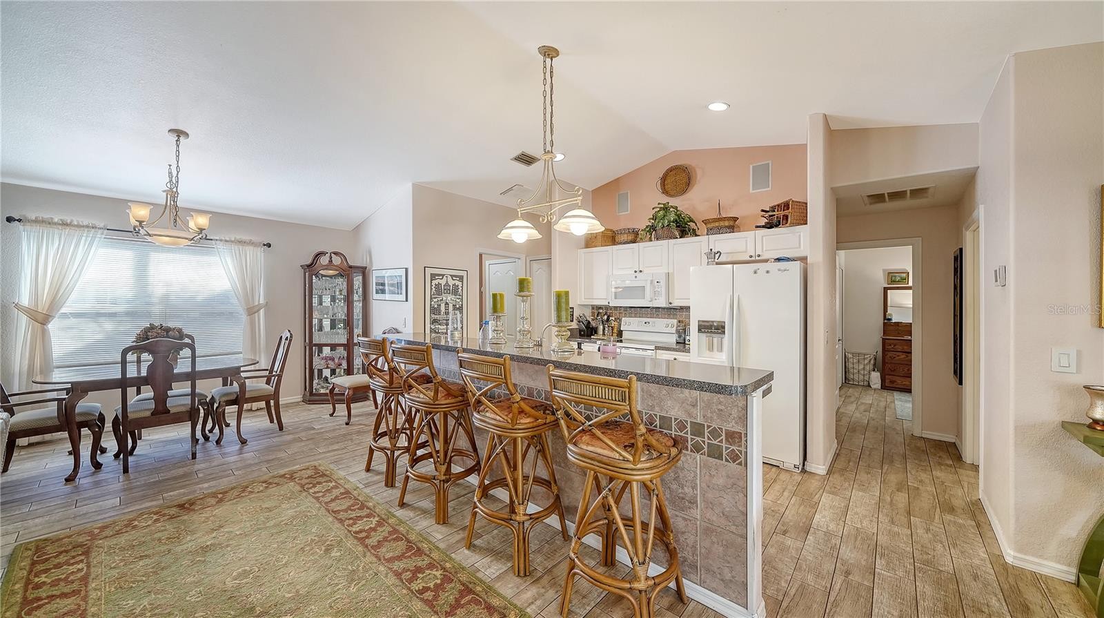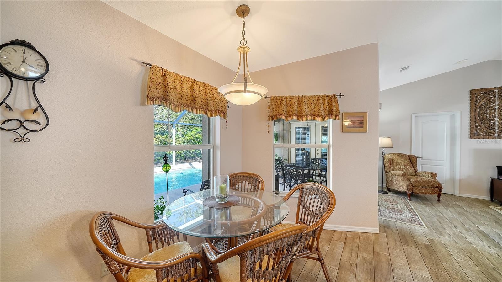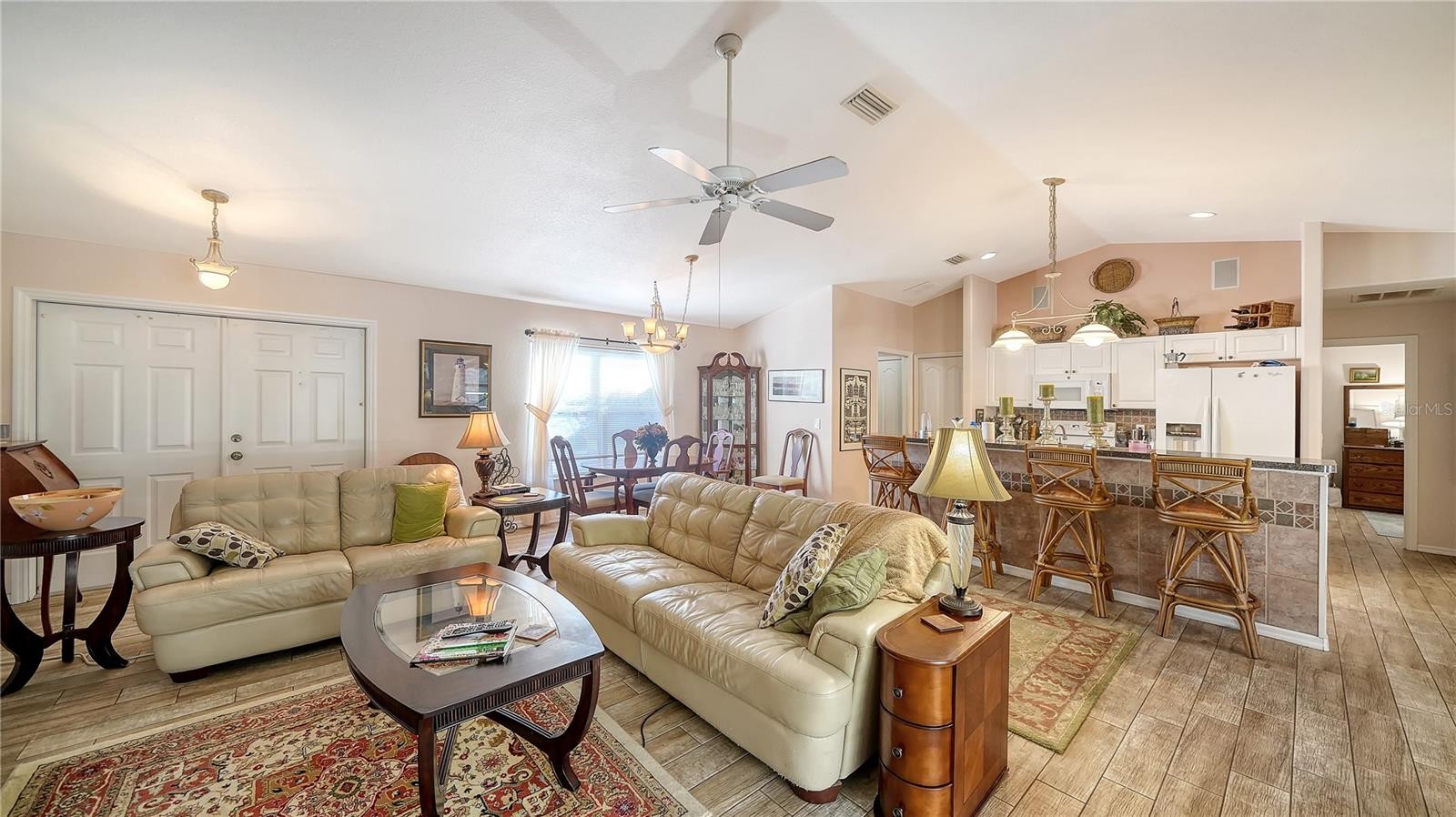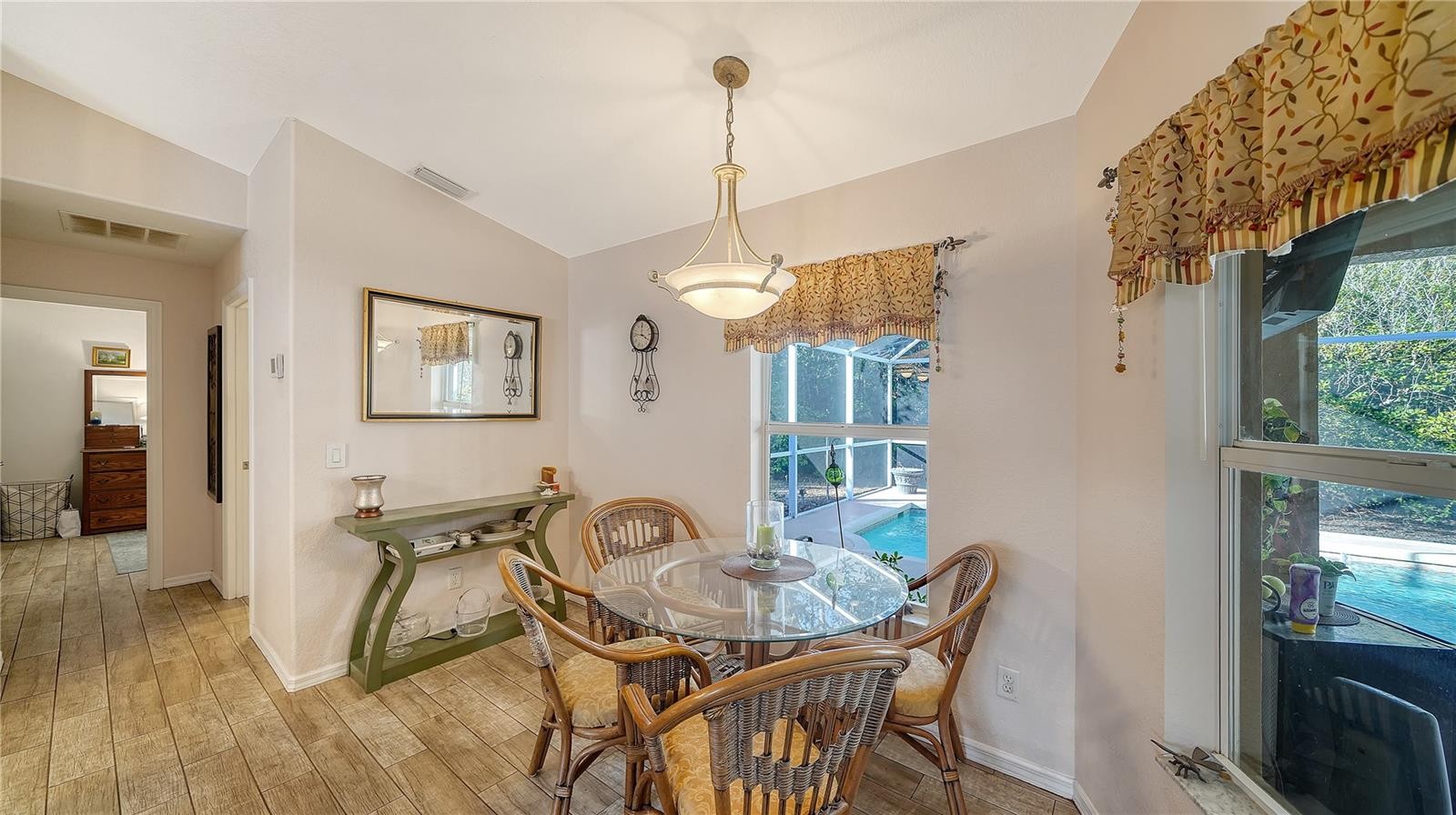 Located in the quiet and tranquil estates section of North Port, this Florida ranch style pool home checks all the boxes and is the only 3/2 pool home under $400k in the estates section of North Port. Starting with the exterior, the large lot is surrounded by lush vegetation on three sides for ultimate privacy and the large 6 car driveway provides plenty of parking for all your guests. The 2-car garage also features new garage door screen sliders to keep the cool breeze in and mosquitos out when working in the garage. Enjoy peace of mind with a newer roof (2022) and storm shutters for all the windows. Walk through the double front door entry and be amazed by the vaulted ceilings and true open concept. The large great room combines the living room, kitchen, and dining area to perfection with views of the pool from every angle making it the perfect space for entertaining and relaxing, simply put, the heart of the home. This 3 bedroom, 2 bathroom home features beautiful wood-look ceramic tile throughout (1 flooring) and ceiling fans in every room. The large master bedroom features his/her walk-in closets, French door access to the pool, and en-suite with dual vanity. Bedrooms 2 and 3 are also of ample size with large built-in closets and are located next to the guest bathroom, which has access to the pool. Enjoy true Florida living as you soak in the beautiful, heated pool year-round. The pool area gives off lagoon vibes with nothing but views of lush vegetation. NO HOA and NO CDD fees! Location, location, location...just minutes away from I-75, shopping, dining, and some of the best beaches Florida has to offer. Schedule your private showing today!