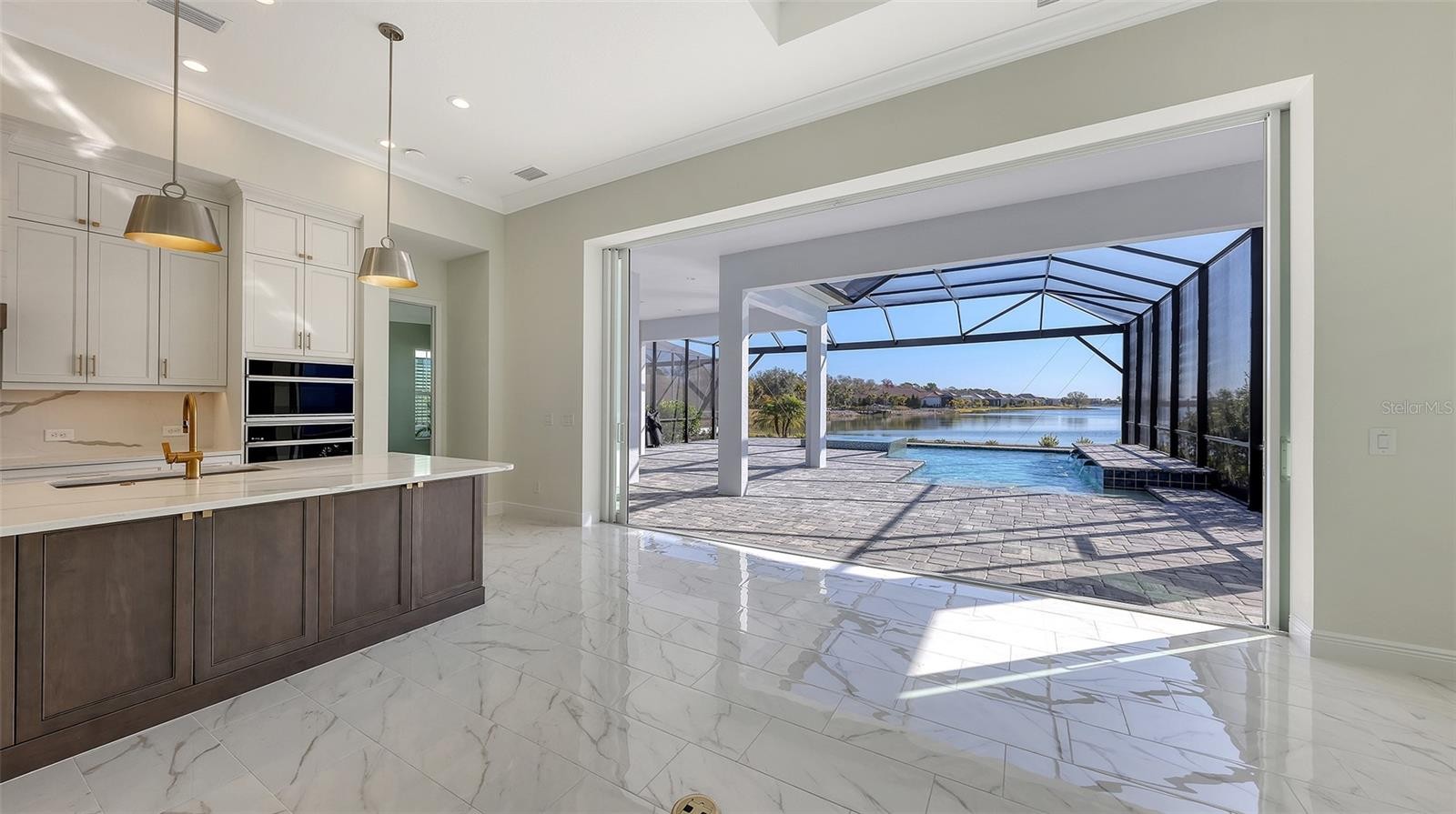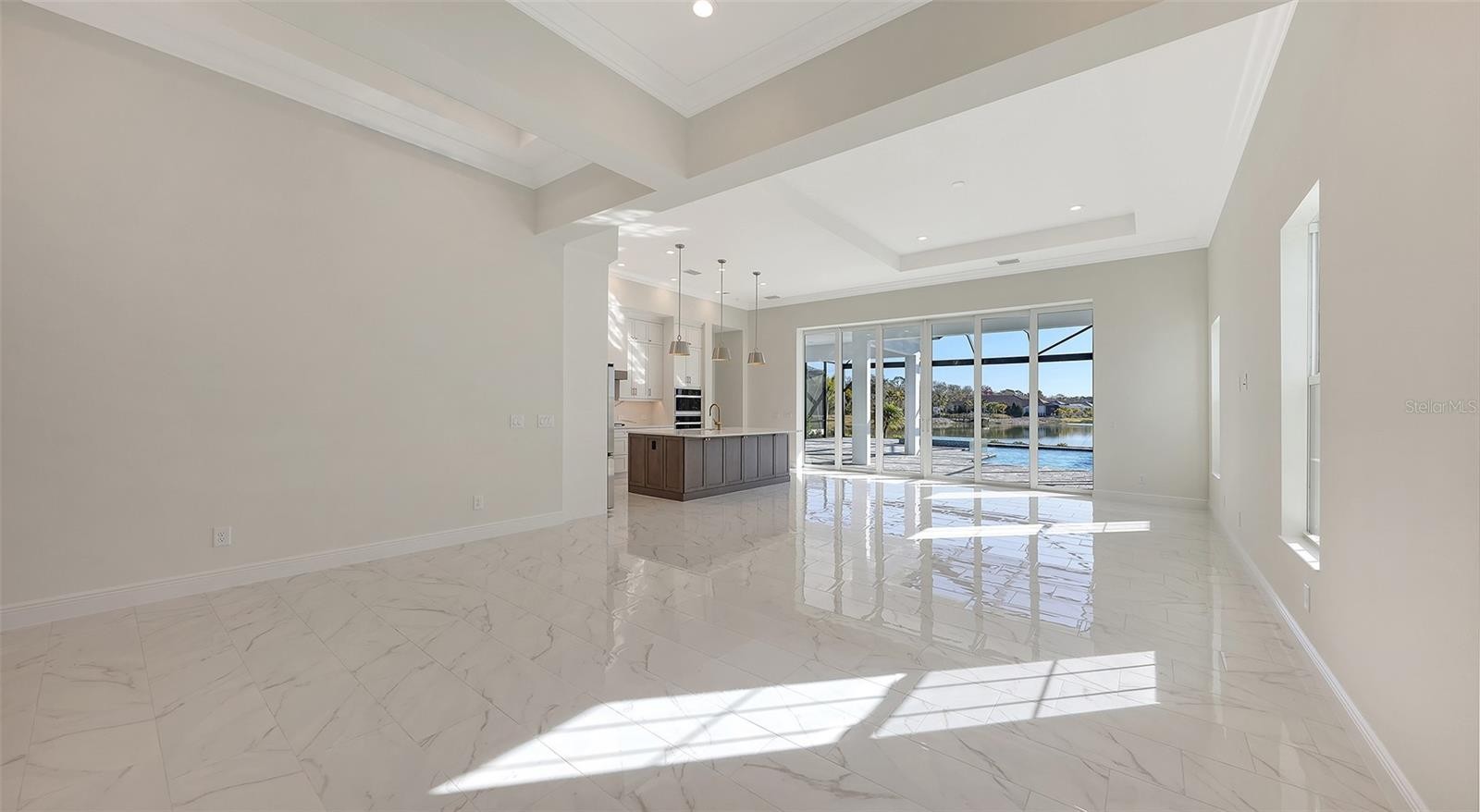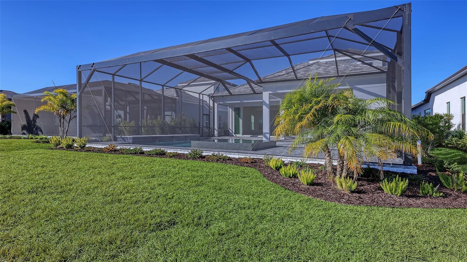Indulge in the epitome of lakeside luxury at The Alcove at Waterside by Neal Signature Homes, an exclusive enclave in the vibrant Waterside District of Lakewood Ranch, Sarasota, Florida. This stunning four-bedroom, three-bath residence features a dedicated den and an expansive bonus room within approximately 3,173 square feet of refined living space. An upstairs living area includes a private fourth bedroom, full bath, and a versatile bonus room—ideal for guests, multigenerational living, or flexible entertaining space. Inspired by timeless British West Indies and Coastal architecture, the home showcases elegant stucco exteriors, tile roofing, and thoughtful details including a covered entryway and lush tropical landscaping. Enjoy picturesque views overlooking Blue Heron Lake, creating a beautiful and tranquil setting.