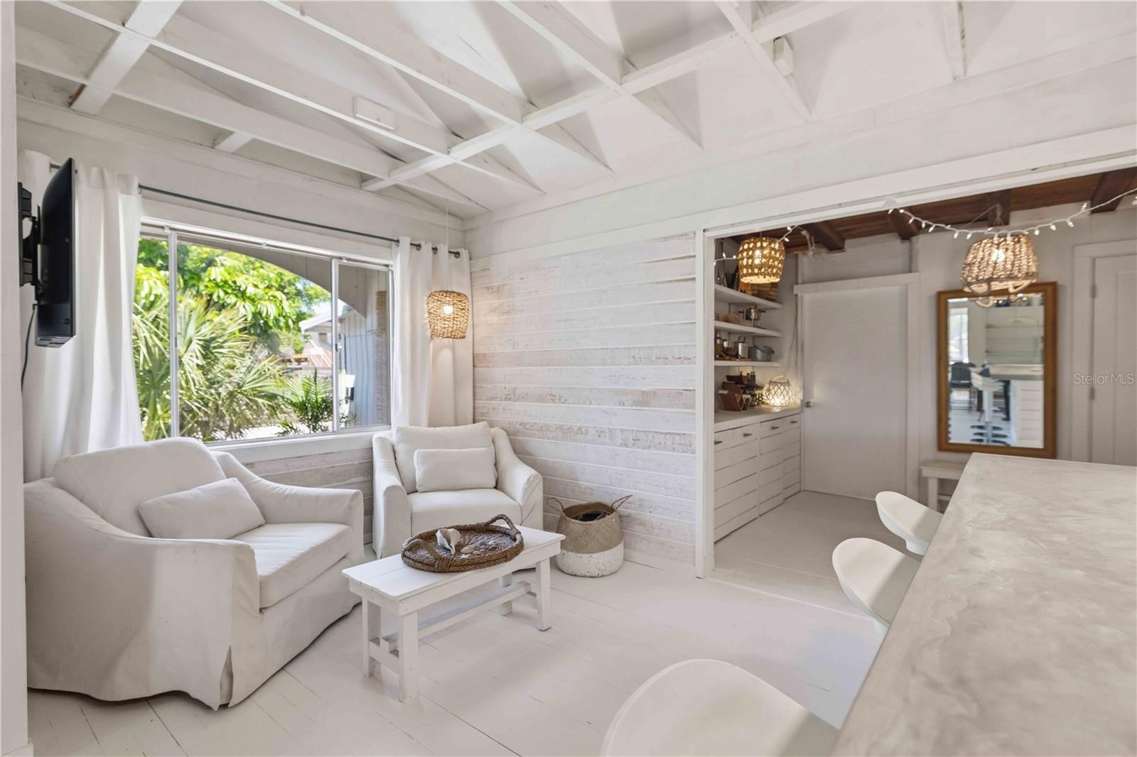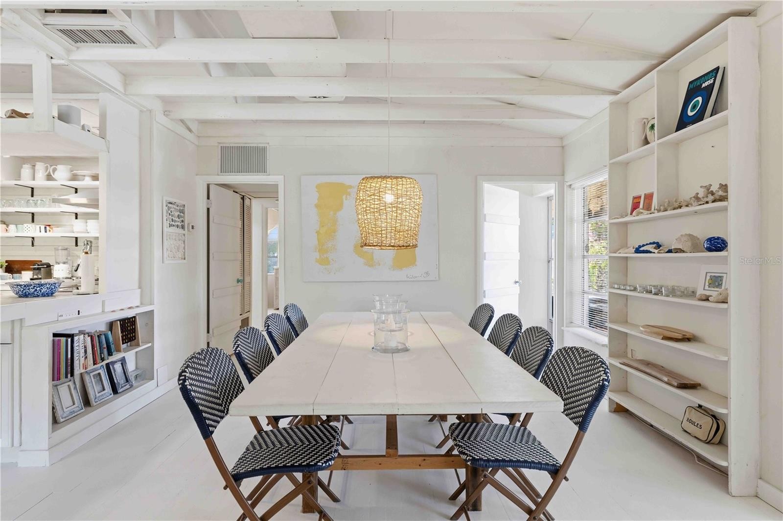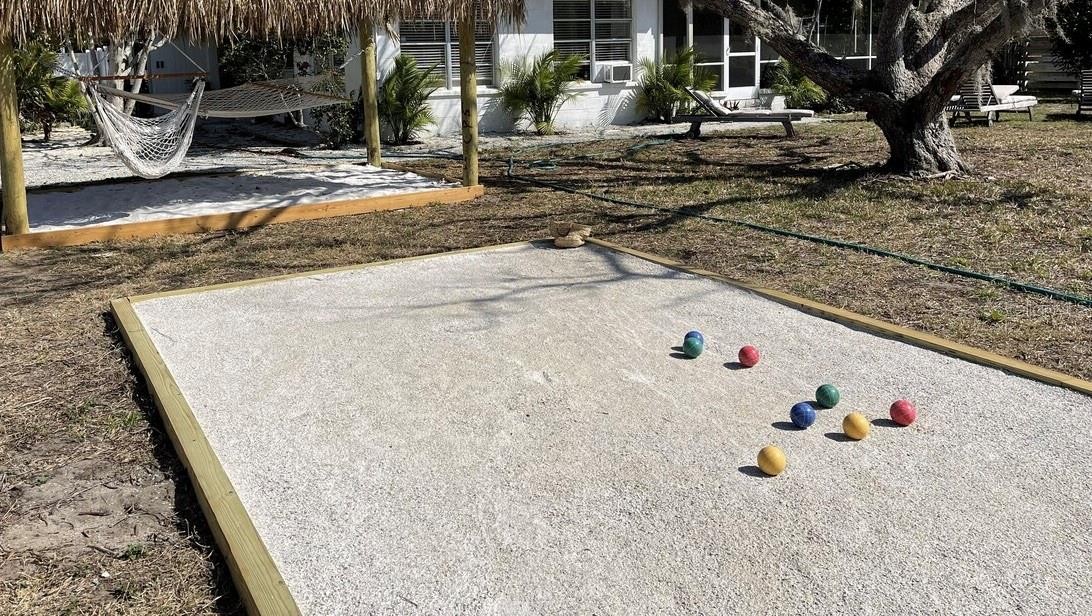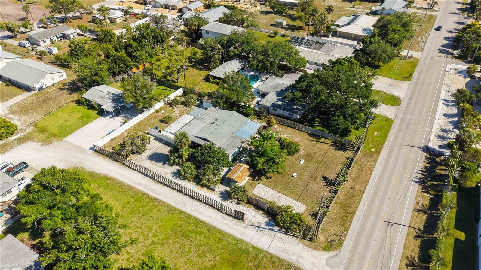 Less than a mile stroll from Nokomis Beach! This inviting coastal retreat embodies the essence of RELAXED Florida living, featuring a warm, beach-inspired design and thoughtfully curated indoor and outdoor spaces on just shy of 1/2 acre. Offering exceptional versatility, the property is well-suited as an iINVESTMENT RENTAL, a seasonal or full-time PRIVATE RESIDENCE, or a prime opportunity to BUILD YOUR OWN CUSTOM COASTAL DREAM HOME in a highly desirable location. A cozy home with laid-back charm, featuring exposed rafters, whitewashed hardwood flooring, and a sunny west-facing sunroom with classic terrazzo floors—perfect for enjoying golden sunsets. The open kitchen is both stylish and functional, showcasing modern open shelving, cement countertops, and abundant natural light streaming in from a skylight above. A cozy sitting area just off the kitchen allows the chef to stay connected with their guests. Entertain with ease in the tucked-away dry bar, offering a subtle speakeasy feel that adds character and conversation to gatherings. The home offers three bedrooms and two baths, along with a spacious dining area that can comfortably accommodate up to twelve or more! Outdoor living is where this property truly shines. Set on just under half an acre and fully fenced for privacy, the grounds offer multiple spaces to relax and entertain—from expansive shaded and sun-drenched decking to a tiki hut with a hammock lounge, a bocce ball court, and a front yard that could easily accommodate a custom pool. Take in breathtaking sunsets from the deck, where you can also enjoy a charming peek-a-boo view of the Intracoastal Waterway. An additional covered porch at the main entrance adds yet another inviting space to enjoy the coastal breezes. Bonus features include an oversized two-car garage, complete with a separate laundry and storage area, as well as an attached workroom—ideal for hobbies or additional utility space. A double-gate fence provides convenient access to the backyard, offering ample room for a boat, watercraft, or RV along with a storage shed. With its generous lot size and prime location near the Gulf, the property also presents an ideal setting to BUILD YOUR CUSTOM DREAM HOME. A rare blend of charm, lifestyle, and future potential—this IS coastal living at its finest!