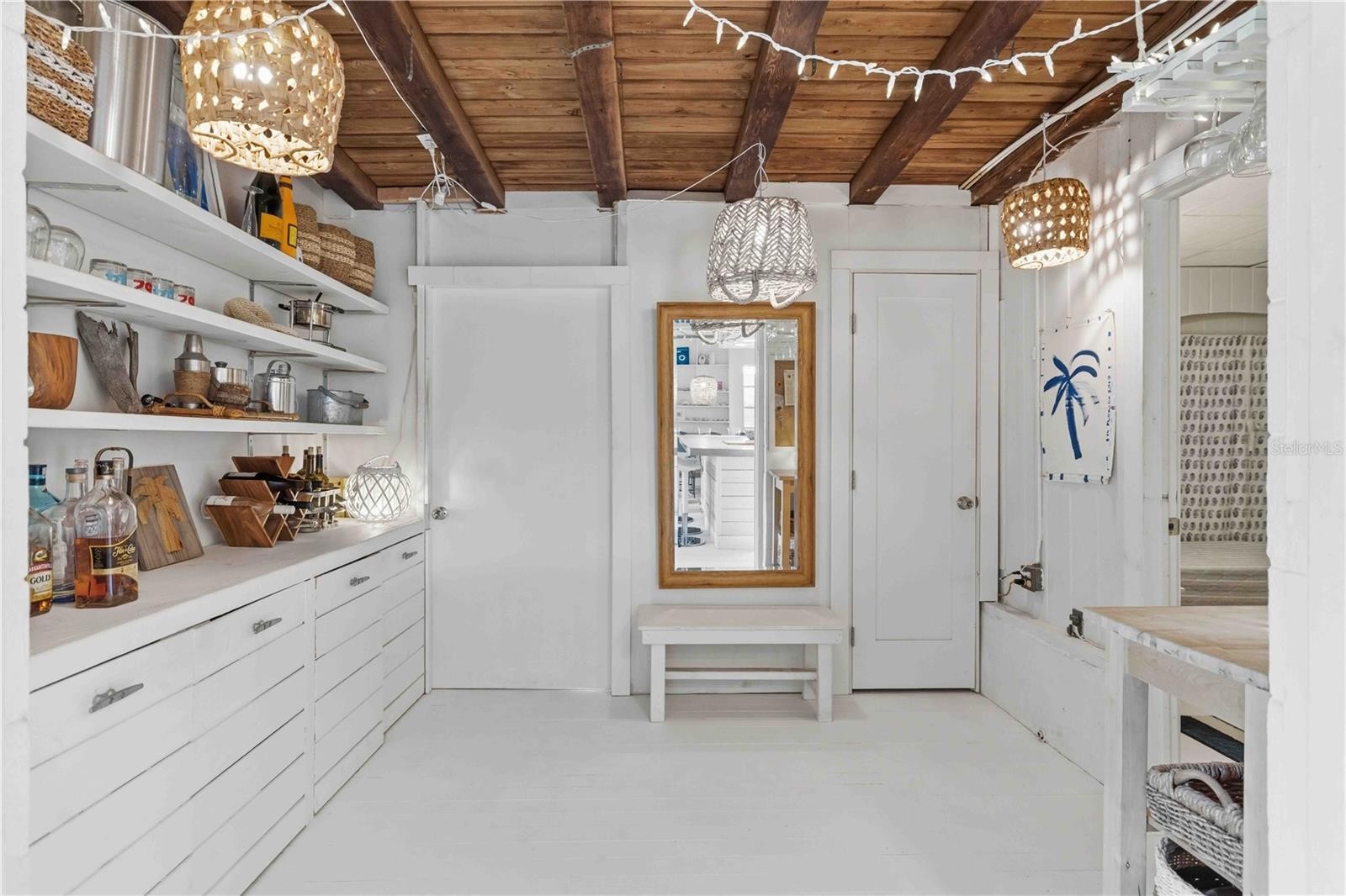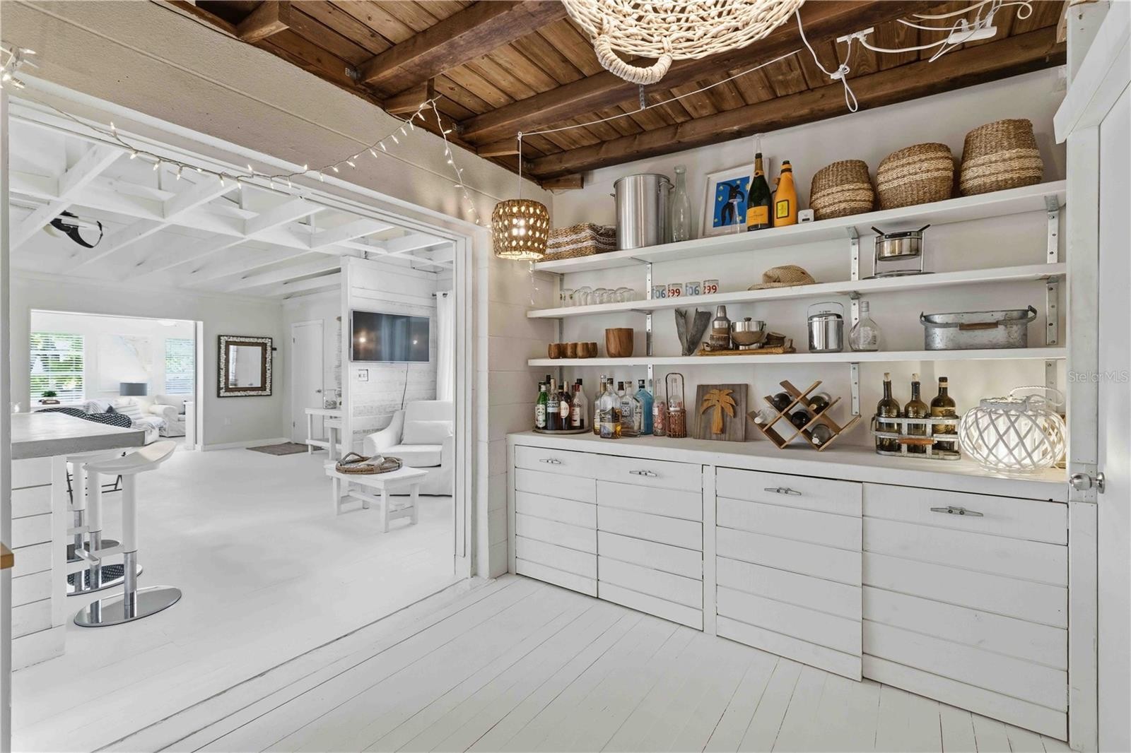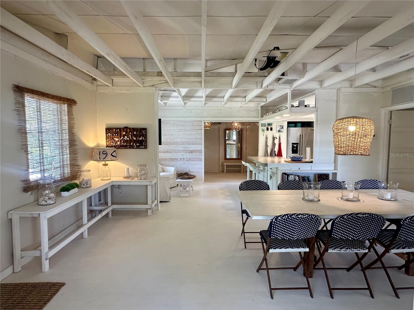 Less than a mile stroll from Nokomis Beach! This inviting coastal retreat embodies the essence of RELAXED Florida living, featuring a warm, beach-inspired design and thoughtfully curated indoor and outdoor spaces on just shy of 1/2 acre. Offering exceptional versatility, the property is well-suited as an iINVESTMENT RENTAL, a seasonal or full-time PRIVATE RESIDENCE, or a prime opportunity to BUILD YOUR OWN CUSTOM COASTAL DREAM HOME in a highly desirable location. A cozy home with laid-back charm, featuring exposed rafters, whitewashed hardwood flooring, and a sunny west-facing sunroom with classic terrazzo floors—perfect for enjoying golden sunsets. The open kitchen is both stylish and functional, showcasing modern open shelving, cement countertops, and abundant natural light streaming in from a skylight above. A cozy sitting area just off the kitchen allows the chef to stay connected with their guests. Entertain with ease in the tucked-away dry bar, offering a subtle speakeasy feel that adds character and conversation to gatherings. The home offers three bedrooms and two baths, along with a spacious dining area that can comfortably accommodate up to twelve or more! Outdoor living is where this property truly shines. Set on just under half an acre and fully fenced for privacy, the grounds offer multiple spaces to relax and entertain—from expansive shaded and sun-drenched decking to a tiki hut with a hammock lounge, a bocce ball court, and a front yard that could easily accommodate a custom pool. Take in breathtaking sunsets from the deck, where you can also enjoy a charming peek-a-boo view of the Intracoastal Waterway. An additional covered porch at the main entrance adds yet another inviting space to enjoy the coastal breezes. Bonus features include an oversized two-car garage, complete with a separate laundry and storage area, as well as an attached workroom—ideal for hobbies or additional utility space. A double-gate fence provides convenient access to the backyard, offering ample room for a boat, watercraft, or RV along with a storage shed. With its generous lot size and prime location near the Gulf, the property also presents an ideal setting to BUILD YOUR CUSTOM DREAM HOME. A rare blend of charm, lifestyle, and future potential—this IS coastal living at its finest!
