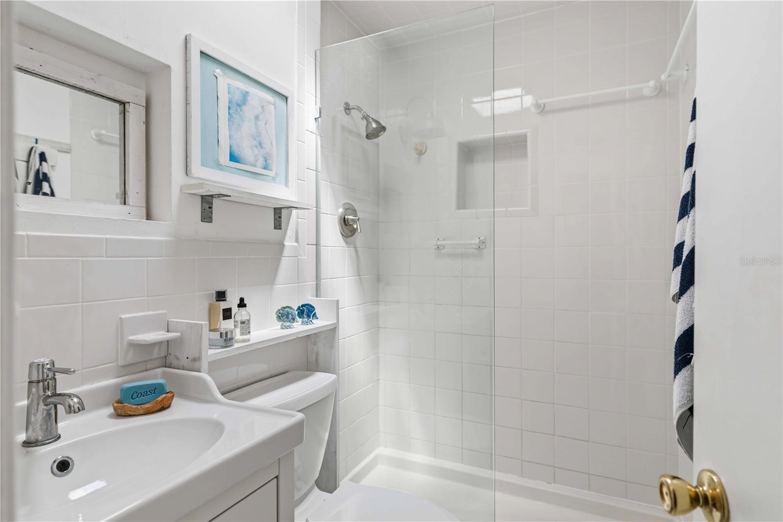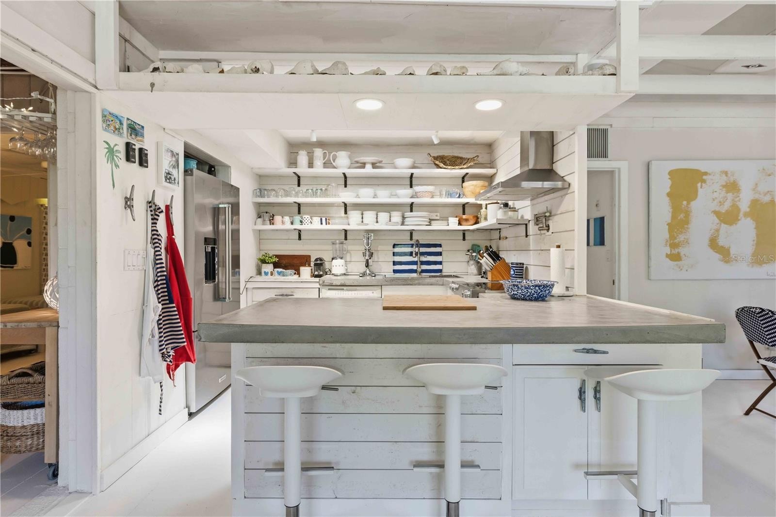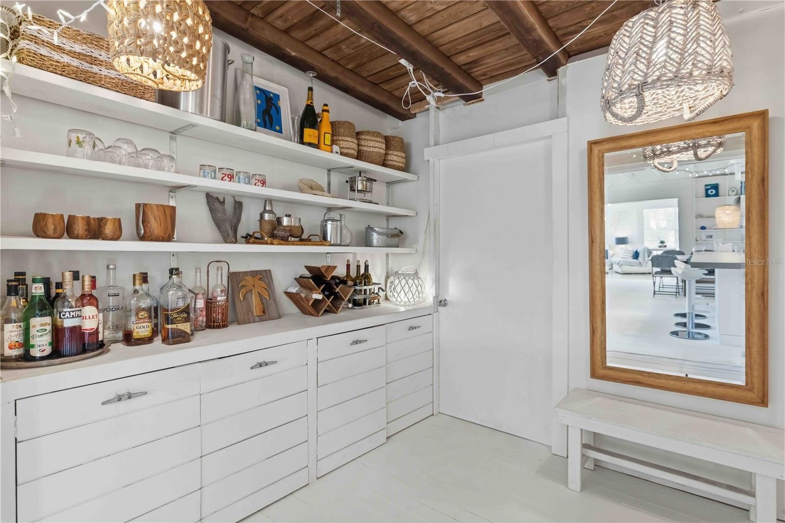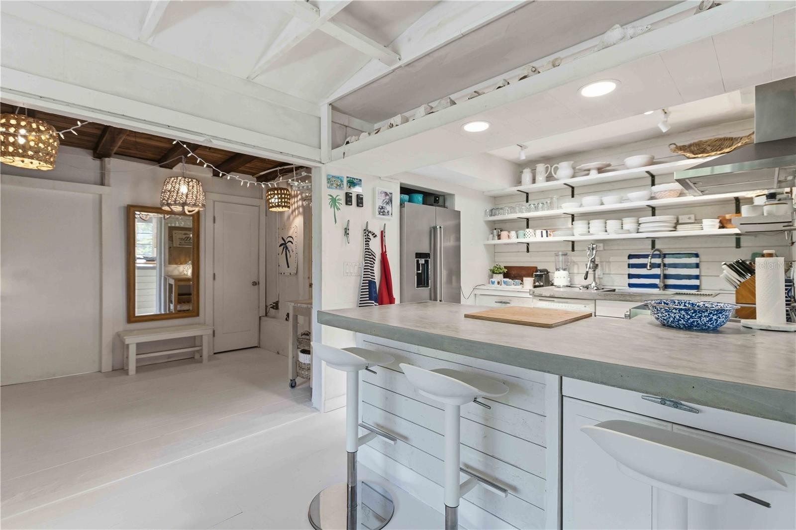 Less than a mile stroll from Nokomis Beach! This inviting coastal retreat embodies the essence of RELAXED Florida living, featuring a warm, beach-inspired design and thoughtfully curated indoor and outdoor spaces on just shy of 1/2 acre. Offering exceptional versatility, the property is well-suited as an iINVESTMENT RENTAL, a seasonal or full-time PRIVATE RESIDENCE, or a prime opportunity to BUILD YOUR OWN CUSTOM COASTAL DREAM HOME in a highly desirable location. A cozy home with laid-back charm, featuring exposed rafters, whitewashed hardwood flooring, and a sunny west-facing sunroom with classic terrazzo floors—perfect for enjoying golden sunsets. The open kitchen is both stylish and functional, showcasing modern open shelving, cement countertops, and abundant natural light streaming in from a skylight above. A cozy sitting area just off the kitchen allows the chef to stay connected with their guests. Entertain with ease in the tucked-away dry bar, offering a subtle speakeasy feel that adds character and conversation to gatherings. The home offers three bedrooms and two baths, along with a spacious dining area that can comfortably accommodate up to twelve or more! Outdoor living is where this property truly shines. Set on just under half an acre and fully fenced for privacy, the grounds offer multiple spaces to relax and entertain—from expansive shaded and sun-drenched decking to a tiki hut with a hammock lounge, a bocce ball court, and a front yard that could easily accommodate a custom pool. Take in breathtaking sunsets from the deck, where you can also enjoy a charming peek-a-boo view of the Intracoastal Waterway. An additional covered porch at the main entrance adds yet another inviting space to enjoy the coastal breezes. Bonus features include an oversized two-car garage, complete with a separate laundry and storage area, as well as an attached workroom—ideal for hobbies or additional utility space. A double-gate fence provides convenient access to the backyard, offering ample room for a boat, watercraft, or RV along with a storage shed. With its generous lot size and prime location near the Gulf, the property also presents an ideal setting to BUILD YOUR CUSTOM DREAM HOME. A rare blend of charm, lifestyle, and future potential—this IS coastal living at its finest!