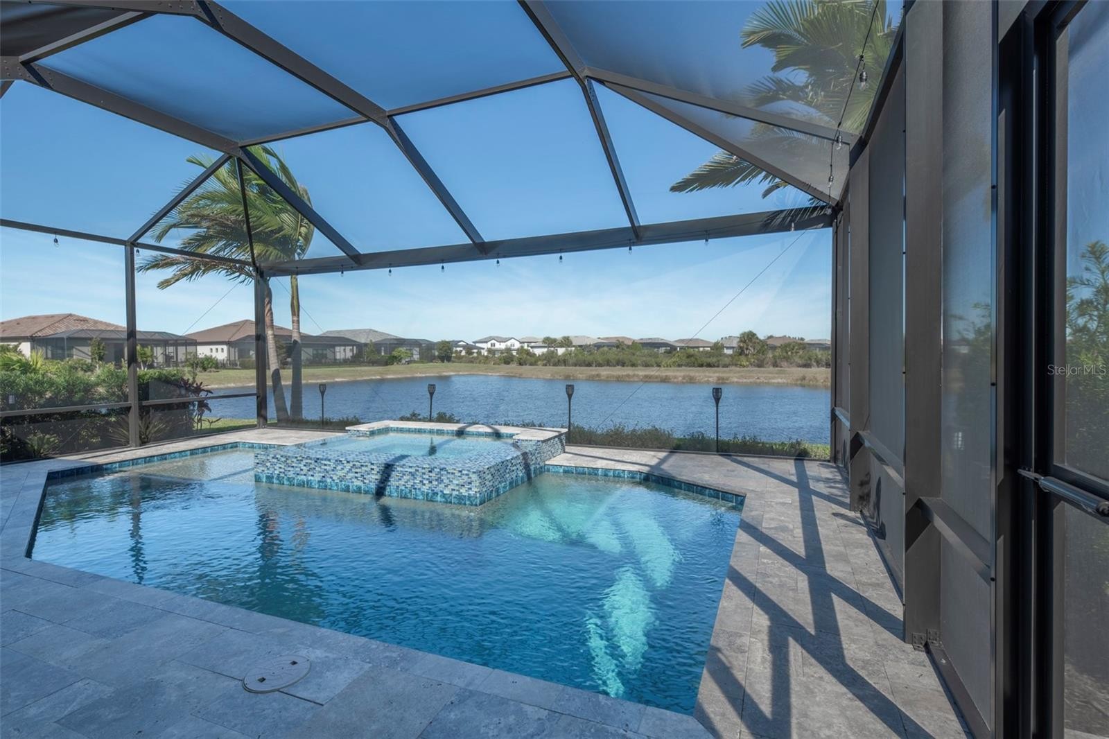 This lovey pool home comes with an incredible ***2.875%*** Assumable Interest Rate and ***NO CDD fees***. Welcome to this beautifully upgraded Contour floor plan home, located in the sought-after community of Talon Preserve on Palmer Ranch. This home includes 2 bedrooms, 2 bathrooms, a dedicated office (or den), and a private saltwater pool with spa. Tile flooring runs throughout the open-concept layout. At the front of the home, you'll find a guest bedroom and office space. The kitchen stands out with a full-height custom backsplash, granite countertops, and views of the dining and living areas. The owner's suite includes an upgraded shower floor and walk in closet. This outdoor living space is one of kind on a home of this size. Featuring a custom saltwater pool with spa and sun shelf, a vent-hood-equipped outdoor kitchen, travertine tile, and an open-view screen on the back of the pool cage, for taking in the stunning lake views. Thoughtful upgrades enhance this home—from the expanded front porch and widened driveway to the custom landscaping with nine palm trees. The fully insulated garage includes a 4-foot extension, a mini-split air conditioner, and epoxy flooring. Additional highlights include a UV light system on the home’s A/C, and an oversized lot that offers added privacy. The Amenity Center is just 0.2 miles away and offers something for everyone — a resort-style pool and spa, poolside restaurant, clubhouse, fitness center, arcade, pickleball, tennis, playground, dog park, and direct access to the Legacy Bike Trail. No CDD fees. Talon Preserve is approximately 5 miles to Nokomis Beach, 7 miles to Downtown Venice, 7.5 miles to Venice Beach, 13 miles to Siesta Key, and 15 miles to Downtown Sarasota. Come and see this unbelievable rare find!