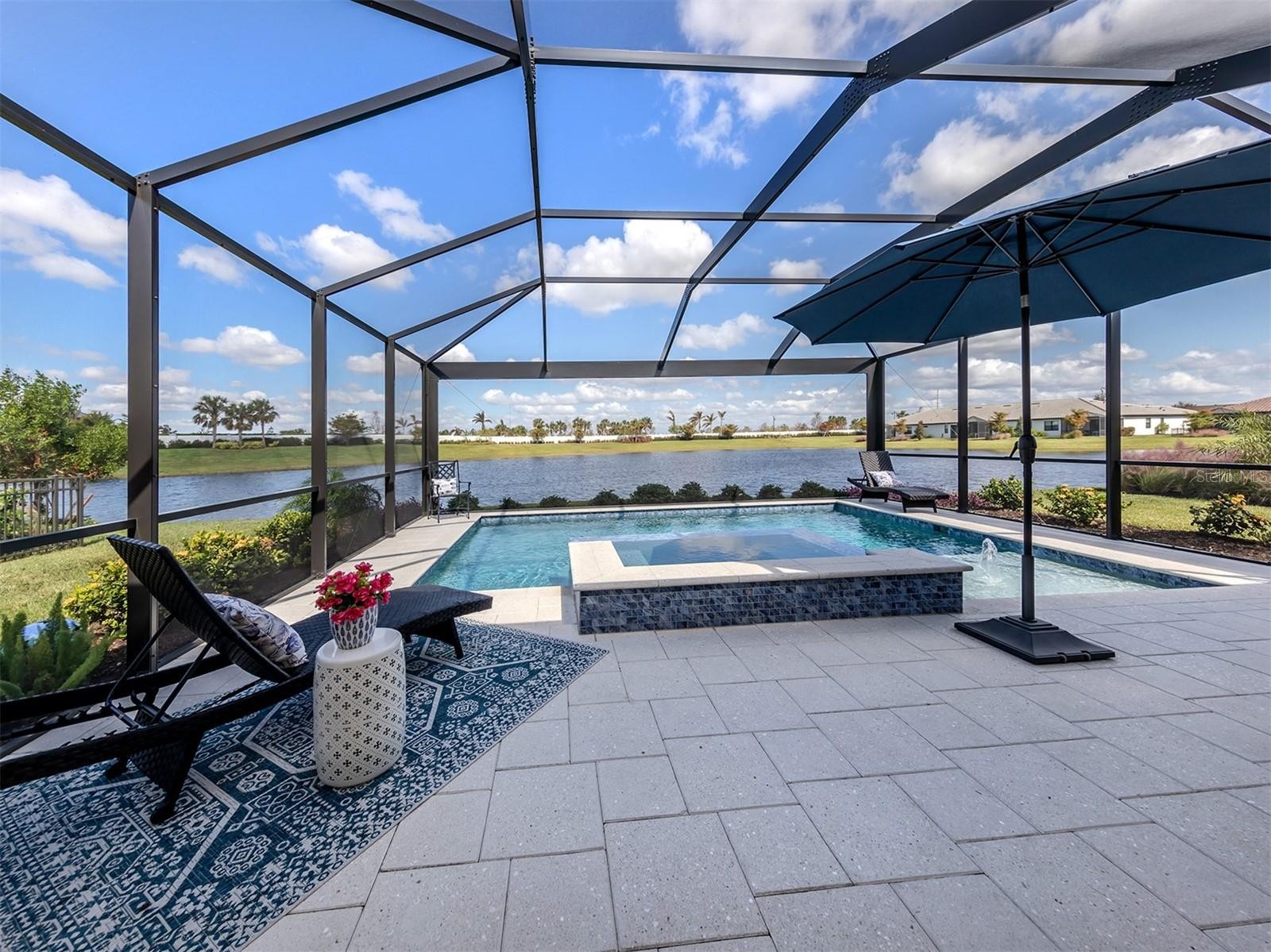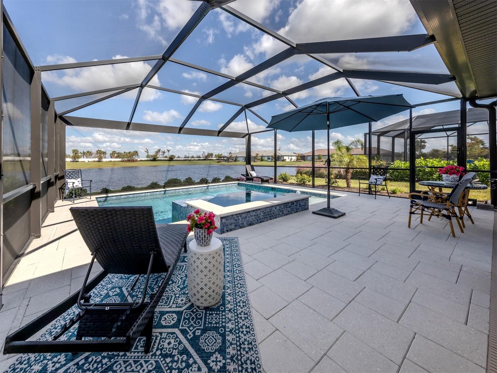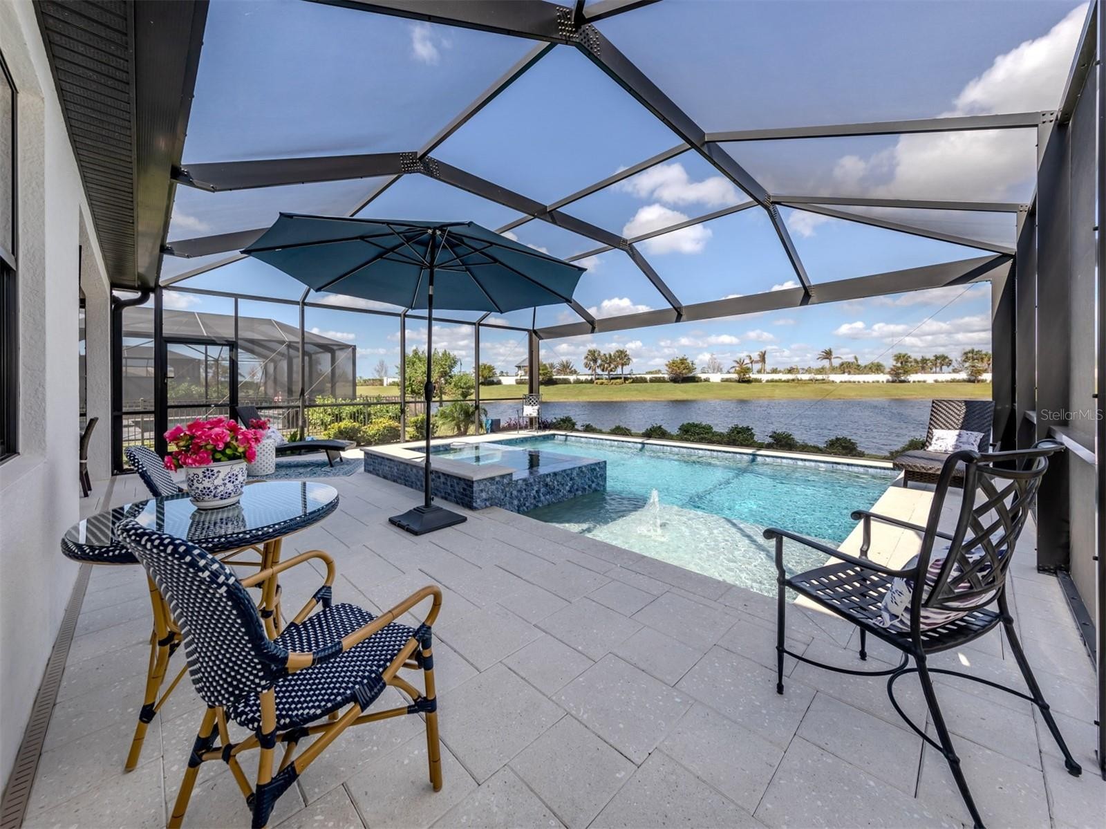 Experience luxury living in this beautiful home! 3 bedroom/2 bathroom home with a custom outdoor pool/spa. Lovely water views out the back. This home is located inside the gated community of Talon Preserve on Palmer Ranch. It is a close walk, super convenient to all the resort style amenities. NO CDD FEES for this highly sought after community. This home features IMPACT GLASS in all windows and doors. Walking up to the front door you will see a custom cypress tongue and groove ceiling at the entryway. Upon entering the full view glass front door, you are welcomed with the warmth of the sunlight throughout the home. Features like 9 ft ceilings and 8 ft doors add a spacious feel to the home. Upgraded cabinetry, tile, lighting and quartz counters. Stainless steel appliances with a NATURAL GAS oven to boot. Hinkley lighting pendants and dinette fixtures add customization to the kitchen island and dining table. The primary bedroom is generous size and boasts a beautiful view of the lanai, pool and lake. A large, frameless glass shower with built in bench and a double vanity makes the primary bath a spa like experience. The triple 8 ft pocket slider door in the back of the home leads to a custom heated saltwater pool and spa designed and built by SUPERIOR POOLS. The lanai enclosure feature a panoramic view of the large lake and was designed and built by ABSOLUTE ALUMINUM. A tongue and groove cypress ceiling in the lanai was added in 2025 matching the front entryway ceiling. From the moment you enter though the Talon Preserve gates, you will be impressed with the beautiful, lush landscaping and design of the homes and amenities that make living here feel like a dream come true. You will experience resort style living in Talon! The 18,000 sf clubhouse features a large indoor bar. The highlight of the amenity center is the HIDEAWAY outdoor TIKI Restaurant and Bar next to a large resort style heated pool with rock waterfall, beach entry and swimming lap lane. In addition, the amenity center offers pickle ball, bocce ball, tennis, playground, workout facilities and an arcade. WOW! What also brings many buyers to our community is the easy access to I-75 and Nokomis Beach! Talon also features private direct access to the Legacy bike trail. Super convenient to shopping and downtown Venice. Sarasota Memorial Hospital is approximately 4 miles down the road with additional medical sites being built. It's all here! Come see why Talon Preserve on Palmer Ranch is almost SOLD OUT! OWNER is also the Listing Agent!