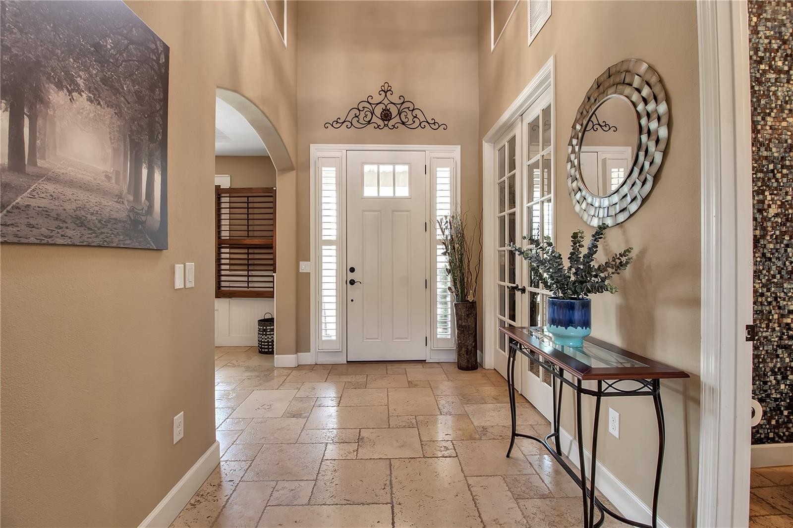 Nestled in the serene and highly sought-after community of Arbor Lakes on Palmer Ranch, this Hemingway model with 3 car garage offers a combination of modern elegance, thoughtful design, and incredible updates. The neighborhood is districted for the brand-new Skye Ranch School, and a bus conveniently picks up and drops off within the community for Pine View School—the #1 high school in Florida and #12 school in the U.S. The spacious interior, with over 4,000 square feet comprised of 5 bedrooms, 3.5 baths, 2 offices, a theater room and formal dining room, is made for everyday living and fabulous entertaining. This home ensures there’s space for every activity and every member of the household. The living room features a spectacular new stacked stone wall, fireplace with built in cabinetry and grand ceilings that span two stories. The master suite is a relaxing sanctuary, with a tray ceiling, a walk-in closet, and a luxurious bathroom featuring dual sinks, a soaking tub and separate shower, and dual closets—providing both elegance and functionality. The open kitchen is a chef’s dream. This large, bright space has a gas range with stainless steel hood, double ovens, a walk-in pantry, breakfast nook, and two granite islands, one with a breakfast bar. The formal dining room is complemented by a butler’s pantry. A formal office and large laundry room complete the downstairs floor plan. Walk up the oak-tread staircase with elegant new banister and you will find more to love. There you will find four more bedrooms, the second office, a full Jack-and-Jill bathroom, a theater room, and large loft area. Of all the new features, one that will really knock your socks off is the new saltwater pool and spa, with an expansive new deck overlooking a private preserve and complete privacy on either side of the deck. Enjoy the sunshine, dine, or just rest in the shade of the large, covered area. Add to all this a whole house water filtration system, a tankless hot water heater, well-manicured grounds with beautiful landscaping and exterior lighting, and you know this is the home for you! Arbor Lakes is located in the heart of Palmer Ranch, one of the most sought-after locations in Sarasota, due to its proximity to numerous dining and shopping venues, top rated schools, 15-20 minute drive to the area’s world-renowned beaches, and with easy access to the interstate and a short commute to vibrant downtown Sarasota and all its recreational and cultural offerings. The community is perfect for multigenerational living, with basketball and volleyball courts, a community pool and splash park, a playground, a dog park, a fire pit, and a pavilion with grills, all for a nominal HOA fee.