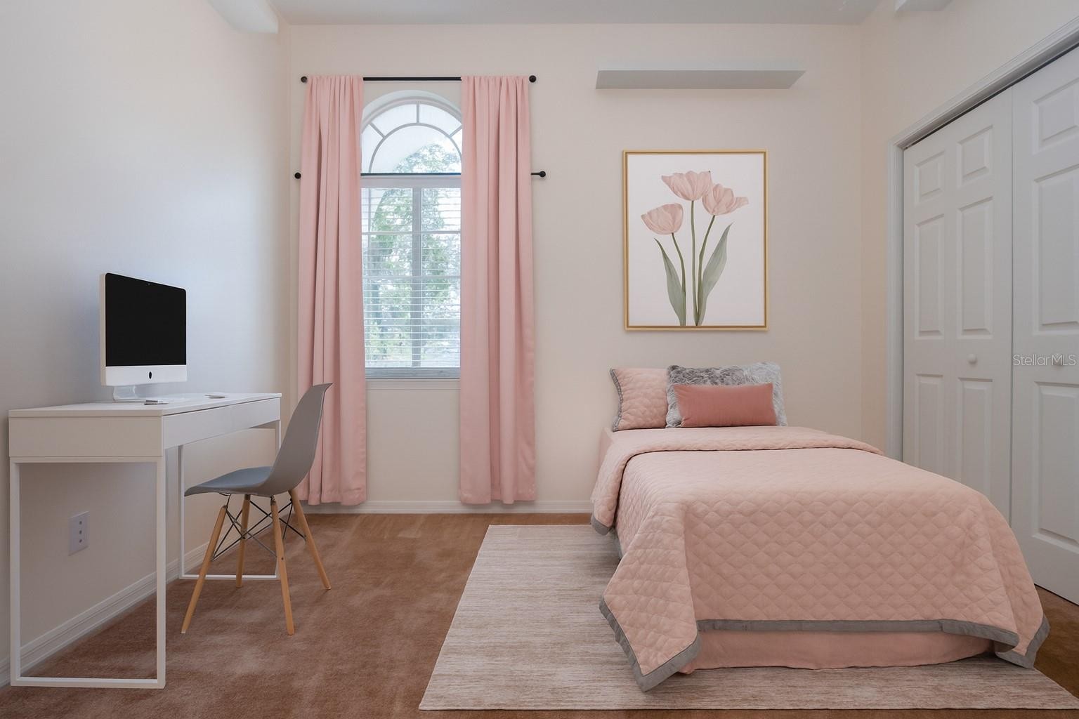 One or more photo(s) has been virtually staged. Huge price improvement of $46,000. This spacious all block home (1st and 2nd story) is offered at the amazing price of $147/sq. ft., 3576 total sq. footage. Decorating Allowance of $7500. It is an all block home, something not commonly found. Exterior recently painted and roof is NEW 2024. Concrete pad for grill was recently added off the back porch. First floor has wood floors, an open 19x15 living room that can be used in many ways...a casual sports room for pool table, ping pong, or formal living area. There is a separate formal dining room. The open plan kitchen has an island, pantry, room for table, and an abundance of cabinets, all overlooks backyard and screened porch. The adjacent 3rd bath is handy for guests. Gleaming wood floors highlight the first floor and staircase. There is a separate media room that includes 6 leather reclining chairs as well as a surround sound system. Perfect for watching your favorite sports team or a movie. Also on the first floor is a laundry room with washer and dryer and storage under the stairs. The second floor has 4 bedrooms and an office. The enormous primary bedroom has a huge walk-in closet, trey ceilings, and primary bath that has a remodeled shower and garden tub...a beautiful retreat. A second full bath completes the 2nd story as well as the office. Both levels boast 9 foot ceilings, crown molding. The Covered Bridge Clubhouse is just around the corner, just a few steps to the heated pool, tennis courts, playground, basketball court, and more. This home is centrally located, just minutes from the Ellenton Outlet Shops and the I-75 interchange with the new, easy access roads. St. Pete, Tampa are also just a short drive away as well as Gulf beaches.