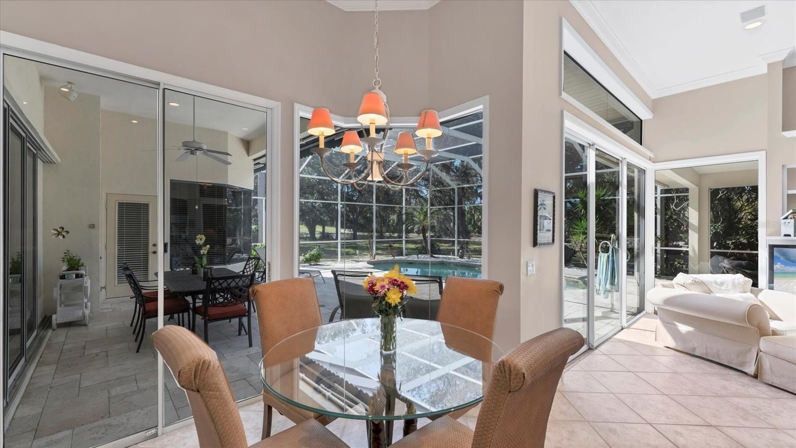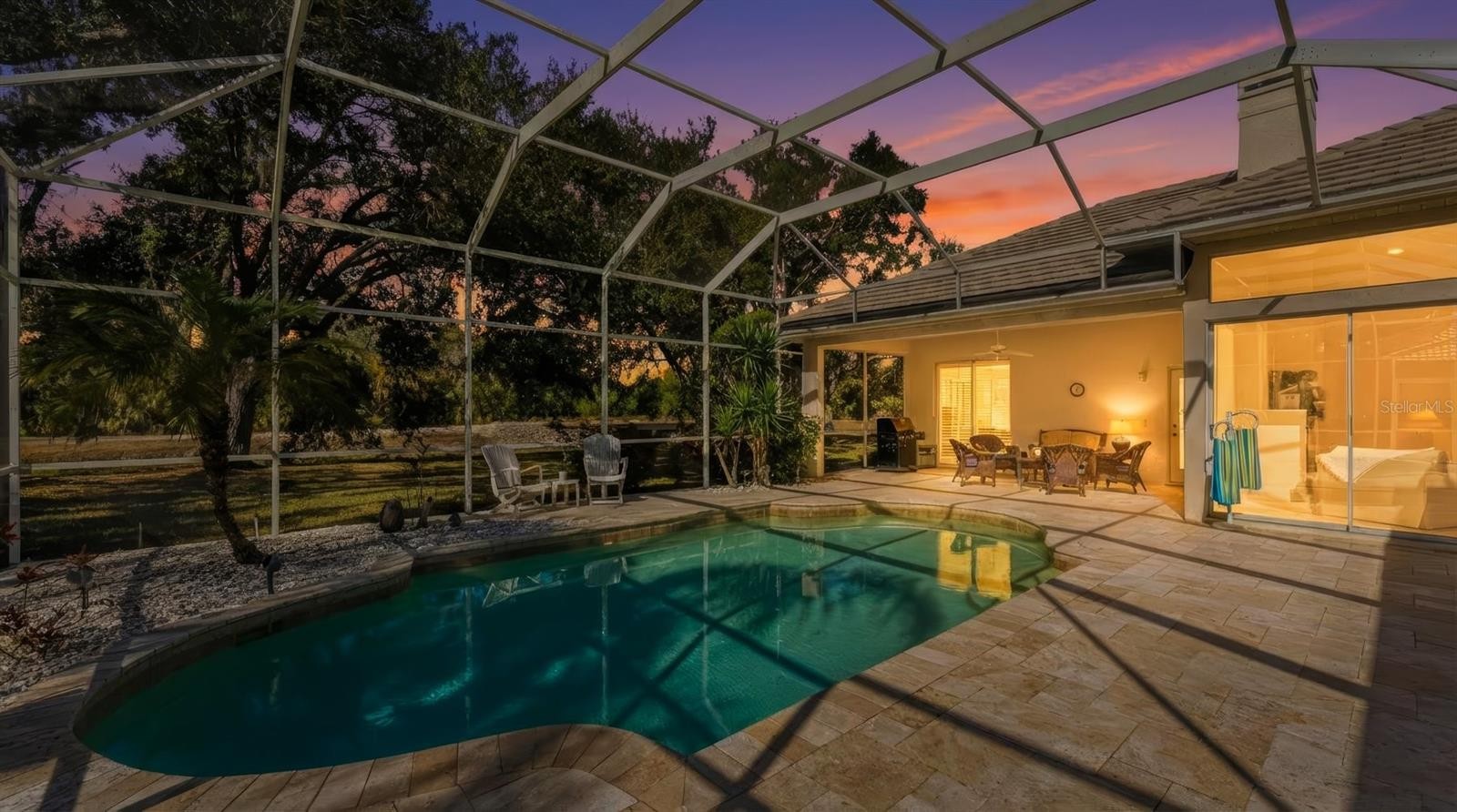 Located in the charming Eaton Place neighborhood at the heart of University Park, this beautifully crafted Todd Johnston Stratford Model offers 4 bedrooms and 3 full baths, set on an oversized lot with a private backyard showcasing serene water and wooded views. Eaton Place is known for its intimate feel and features two neighborhood parks with benches and a unique community Little Library, all just moments from the Country Club and all it has to offer. From the moment you enter, the home impresses with abundant natural light, soaring 10 foot+ ceilings, and elegant crown molding. The living and dining rooms feature pocketing sliding glass doors that open effortlessly to the expansive screened lanai and pool area, creating a seamless indoor-outdoor flow ideal for both entertaining and everyday living. The updated kitchen is both stylish and functional, offering stainless steel appliances, an induction cooktop, solid-surface countertops, and a breakfast area overlooking the family/great room, complete with a gas fireplace and custom built-in features. A thoughtfully designed split-bedroom floor plan provides comfort and privacy for family and guests alike. The expansive primary suite serves as a true retreat with a sitting area, a 3-sided picture window overlooking pool, direct lanai access and a generous walk-in closet. Outdoor living is exceptional. The travertine pool patio surrounds a gas-heated pool and is complemented by two covered seating areas and an electric awning for additional shade. Enjoy peaceful mornings and unforgettable evenings taking in spectacular sunsets and tranquil pond and wooded views. A new tile roof installed in 2018 adds lasting value and peace of mind. University Park Country Club is an award-winning, resident-owned gated community with 24 hour guard featuring 27 holes of four-star rated golf, 11 lighted Har-Tru tennis courts, pickleball, a fitness center, croquet, miles of tree-lined walking and biking paths, first-class dining, and an active calendar of social clubs and events. Enjoy the club amenities with a required minimum of a Social membership at University Park Country Club. Ideally located just four miles from downtown Sarasota, this home offers easy access to vibrant arts and culture, museums, fine dining, shopping, and top-tier healthcare. World-renowned beaches, Nathan Benderson Park, SRQ international airport, The Ringling Museum, St. Armands Circle, boating, and the shops and restaurants of University Town Center are all just minutes away. An exceptional opportunity to enjoy refined Florida living in one of Sarasota’s most desirable communities.