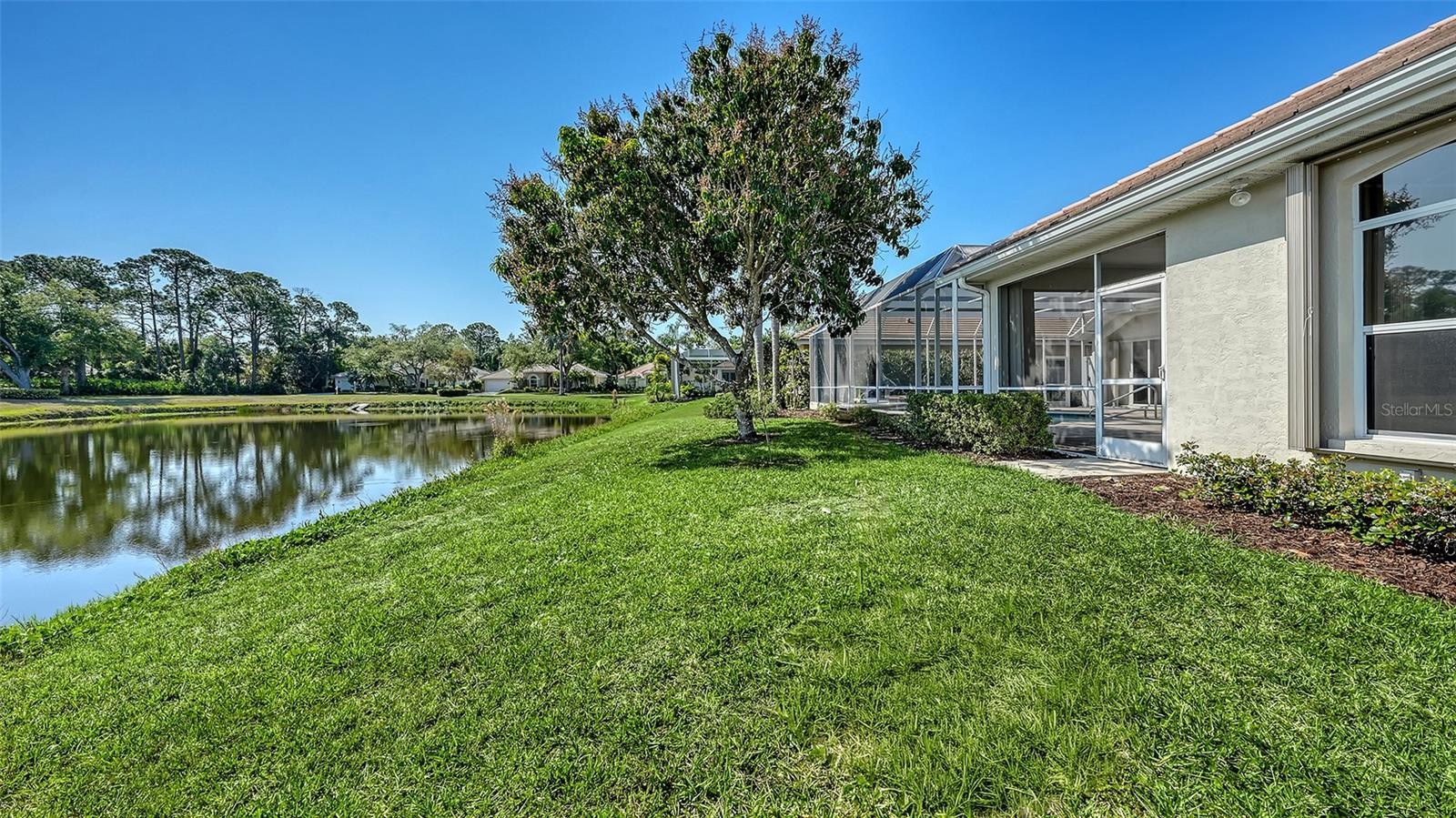 One or more photo(s) has been virtually staged. Eaton Place is ideally located in the heart of University Park Country Club. Very well-maintained LAKE FRONT 4 bedroom residence offers an exceptional blend of timeless elegance and thoughtful updates. NEW ROOF (2023) GENERATOR (2020), A/C system (2019), GARAGE DOOR (2019), accordion STORM shutters, and tinted windows. POOL & SPA RESURFACED & RE-TILED (2026). Brick-paver driveway and walkway, covered entry and refreshed landscaping, along with a two-car garage PLUS GOLF CART GARAGE. Spacious and well-designed split floorplan, the home is filled with natural light, enhanced by tall ceilings, neutral finishes, large format porcelain tile and luxury vinyl plank flooring and expansive living spaces. Formal living and dining rooms provide an inviting setting for entertaining, while the family room centers around a gas fireplace and sliding glass doors-flowing to the outdoor living areas. Chef’s kitchen is beautifully appointed with quartz countertops, modern cabinetry with abundant built-ins, large center island plus breakfast bar seating, and stainless-steel appliances including a Sub-Zero refrigerator and Wolf gas range and convection microwave. Charming breakfast nook with aquarium window frames tranquil views. The private primary suite features a seating area, direct lanai access, and a spacious walk-in closet. The updated primary bath offers dual vanities, granite countertops, walk-in shower, and a soaking tub. Guest accommodations are thoughtfully arranged, including a pocket-door wing with two bedrooms and a full bath, as well as an additional bedroom and bath at the rear of the home for enhanced privacy. Impressive outdoor living with an oversized screened lanai, resort-style pool and spa, and two covered patio areas ideal for dining and relaxation. All overlooking serene lake views. A spacious laundry room with extensive cabinetry, utility sink, LG washer and dryer, and built-in storage adds everyday convenience. Residents of University Park Country Club enjoy access to 27 holes of championship golf, tennis and pickleball courts, fitness center, croquet, and a vibrant social calendar. Ideally located just minutes from downtown Sarasota, world-class beaches, fine dining, shopping, and cultural attractions, as well as the nearby Sarasota-Bradenton International Airport. This is true Florida living in one of Sarasota’s premier gated country club communities, known for its exceptional amenities, optional membership opportunities, and convenient access to everything the area has to offer.