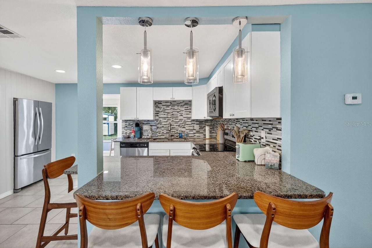 Coastal charm meets classic 1960s character in this beautifully refreshed 3-bedroom, 2-bath home nestled in the heart of Bayshore Gardens—just moments from Sarasota Bay and the Gulf beaches. Built to last, this solid block home blends mid-century craftsmanship with today’s modern comforts. Thoughtfully designed in a soft coastal palette, every space feels bright, open, and inviting. The split-bedroom layout offers privacy, while vaulted ceilings, stone counters, and updated lighting create a breezy, contemporary feel. A versatile game room just off the kitchen provides the perfect flex space for entertaining, a home office, or a creative studio. The home also features inside laundry with a stackable washer and dryer, no carpet throughout, and a converted garage that serves as a comfortable primary suite. Recent updates include fresh paint, turnkey furnishings, and a reimagined outdoor living area ideal for morning coffee or sunset gatherings. The spacious backyard offers plenty of room to add a pool, framed by mature landscaping and friendly neighbors in this well-established community. Residents of Bayshore Gardens enjoy optional access to a Jr. Olympic pool, private marina, boat ramp, and community beach—all within minutes of IMG Academy, SRQ Airport, and Anna Maria Island. No HOA, no CDD, and located in Flood Zone X, this home offers freedom, charm, and the easy Florida lifestyle so many dream about. Come see this charmer today!