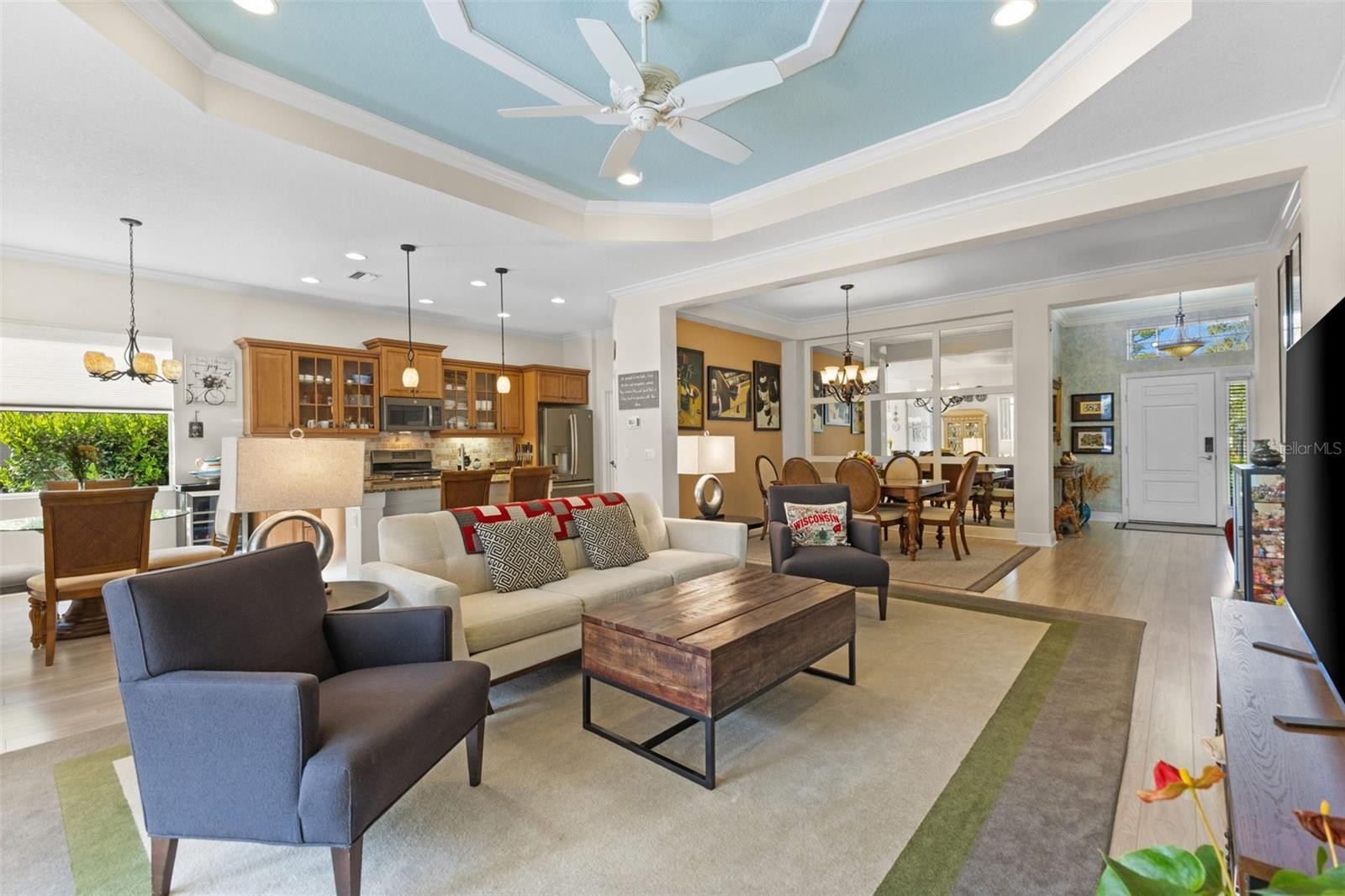This beautiful 3-bedroom plus den home is one of local builder Neal Homes’ most popular floor plans, featuring an open and inviting living space that seamlessly connects the kitchen, breakfast nook, great room, and dining area. Situated on a premium preserve lot, this home offers exceptional privacy and scenic views, along with numerous upgrades throughout. * Highlights include coffered ceilings in the living room and primary bedroom, wood floors, 5” baseboards, crown molding, upgraded kitchen and bath cabinetry and countertops, pocket sliding glass doors, and a convenient pool bath that is accessible directly from the pool area, or inside from the kitchen area. The primary suite is a true retreat with two large walk-in closets, French-door entry to the bath, dual vanities, and a spacious walk-in shower. The garage includes a 4-foot extension, providing ample storage space. * Enjoy Florida living at its best in the heated pool and oversized lanai, perfect for entertaining or relaxing. Lush preserve views offer unmatched privacy from throughout the home and pool area. Woodland Trace is a gated enclave of just 45 homes. Landscape maintenance is included in the low HOA dues, there are no CDD fees, and it's located outside the Special Flood Hazard Area. * Ideally positioned along the University Parkway corridor between Sarasota and Lakewood Ranch, Woodland Trace is minutes from Palm Aire and University Park Country Clubs, top-rated schools, beaches, shopping, dining, and cultural attractions. Homes rarely become available in this sought-after community—schedule your private showing today.