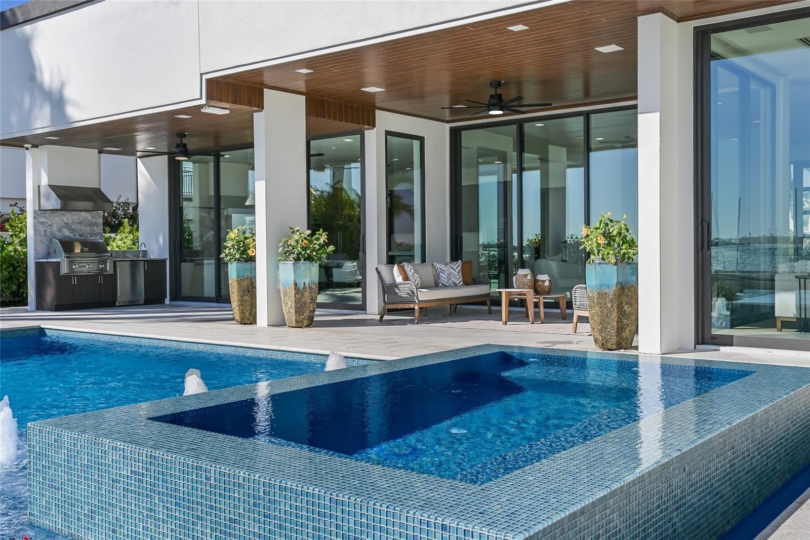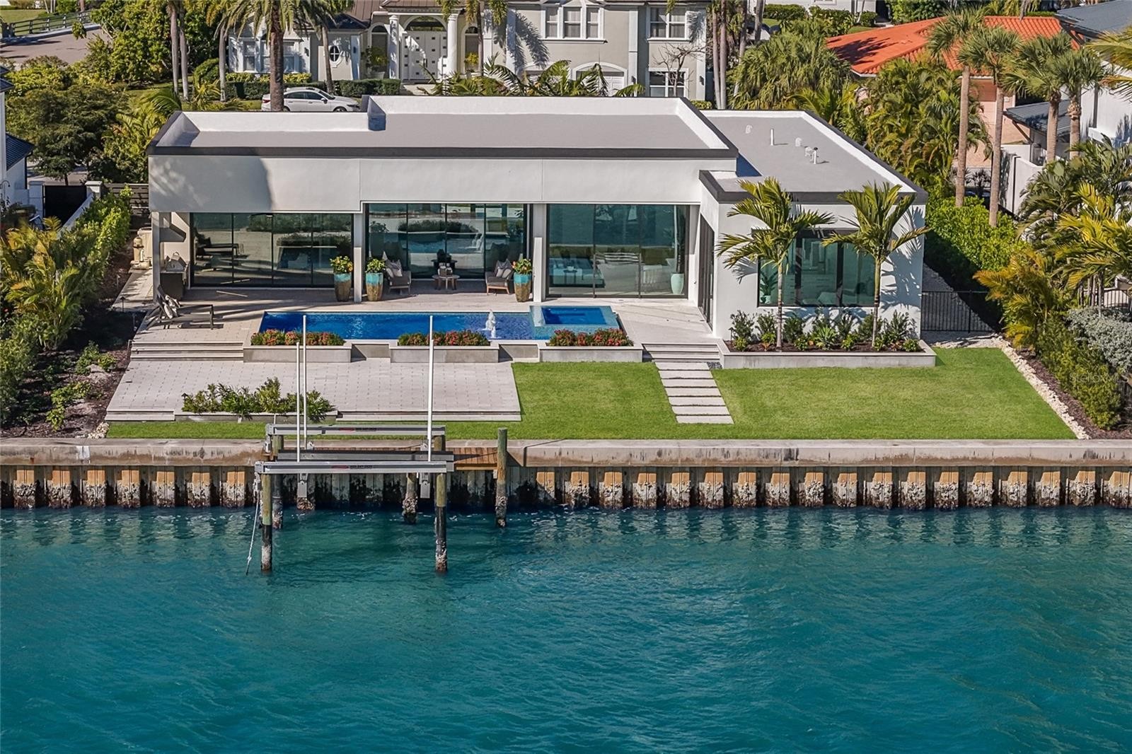 An exceptional Newly renovated 2024 as a New Build contemporary Bayfront residence purposefully constructed within the footprint of the previous home, positioned in one of the most coveted locations on prestigious Bird Key. The home reveals itself as a remarkable and unexpected surprise the moment you step inside. Clean contemporary architecture, elevated finishes, and a confident design aesthetic deliver an unparalleled experience of space, light, and water views. Compelling yet effortless, the home must be experienced to fully appreciate its sense of calm, balance, and understated luxury. The open floor plan and unobstructed Sarasota Bay views are immediately apparent. Tall ceilings and floor-to-ceiling glass allow natural light to flood the interiors, creating a seamless indoor-outdoor connection. The stylish modern kitchen serves as both a visual centerpiece and a highly functional workspace, featuring upscale cabinetry, a waterfall countertop, and counter seating. The open-concept layout offers well-defined living areas that flow naturally from one space to the next, all designed for modern living and effortless entertaining. The primary suite is a private retreat with serene water views, a spacious walk-in closet with a luxurious feel, and a well-appointed primary bath designed for comfort and relaxation. Two additional guest bedrooms, two additional bathrooms, and a separate office or study complete the interior living spaces. Throughout the home, the ever-changing light over Sarasota Bay becomes part of the living experience, with shifting colors and reflections enhancing the atmosphere from morning through sunset. Outside, the striking pool and spa area offer generous space for lounging, entertaining, and relaxation. Covered seating, an outdoor kitchen, and multiple gathering areas create an ideal setting for entertaining. At the water’s edge, the views are magnetic, capturing the beauty of Sarasota Bay with glimpses toward downtown Sarasota while maintaining a sense of privacy and tranquility. Deep sailing water, a new dock, and a 20,000-lb boat lift provide direct and effortless access to Sarasota Bay. Living on Bird Key means enjoying one of Sarasota’s most desirable locations, just minutes from downtown Sarasota’s dining, shopping, and cultural venues, as well as the boutiques and restaurants of St. Armands Circle and the beaches of Lido Key. The Bird Key Yacht Club is currently undergoing a complete rebuild and is anticipated to reopen in 2026 as one of Sarasota’s premier destinations for boating, tennis, dining, and social life.