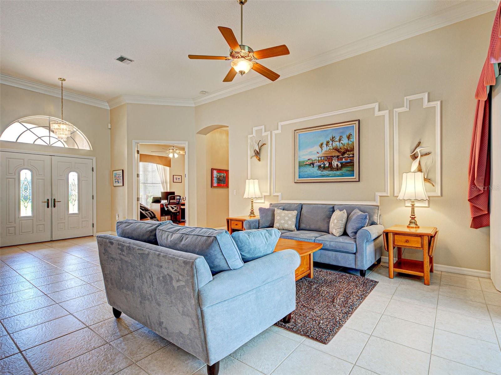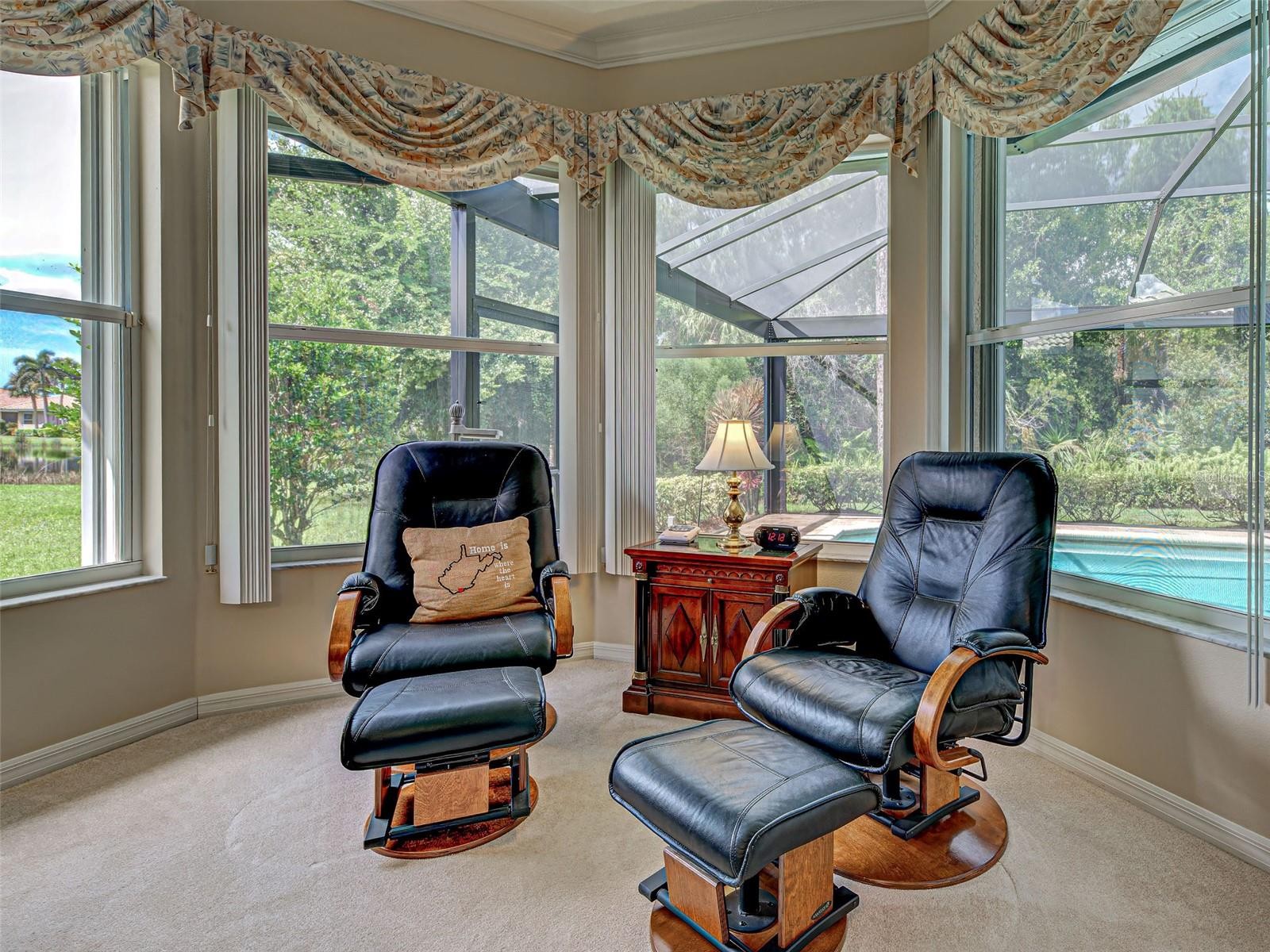 Dreaming of a Sawgrass home with a HEATED POOL, NEWER TILE ROOF (2022), a tranquil setting with peekaboo water views and preserve views and over $125,000 in improvements? If yes, you must come tour this custom-built home which offers 3 spacious bedrooms, a large office/den, 2 1/2 bathrooms (pool bath) and over 3,000 square feet of thoughtfully designed living space. You will love the expansive, private lanai with new clear view screens to enjoy the soothing views and the over-sized 2-car garage will thrill the man of the house. Located in the sought after gated, golfing (optional) Sawgrass community and set on a large lot. The many windows offer an abundance of natural light while the open floor plan dazzles with soaring 12-foot ceilings, crown molding and classy ceramic tiles. The heart of the home is sure to delight with its granite countertops, large island, newer stainless-steel appliances, large breakfast bar and breakfast area with water/preserve views. Adjacent is the roomy family room with built-ins, perfect for relaxing with neighbors or enjoying a favorite movie. Entertaining is a delight, whether in the formal living room, dining room or dining alfresco under the stars on your private lanai. The sumptuous primary suite is a sanctuary with preserve and water views, 2 walk-in closets, lanai sliders and an ensuite bathroom with Roman walk-in shower, garden tub, dual vanities and private commode. Guests will appreciate the split floorplan which offers 2 spacious bedrooms and a guest bathroom. Float in your solar heated pool on the large, peaceful lanai with lush tropical landscaping, peekaboo water views, spectacular sunsets, pavers, pool bathroom and outdoor shower - a true oasis. Enjoy peace of mind with full home hurricane protection (easy to operate accordion shutters), a generator with mobile AC unit and the home is not in a flood zone. More to love: sellers had an inspection and made all necessary repairs, AC is dual zoned (2023 & 2012), home has fresh exterior paint, new gutters, new water heater (2024) and the pool pump (2023) and heater (2019) are newer. You will appreciate the lovely curb appeal thanks to the paver driveway and lush, tropical landscaping. Sawgrass has low HOA fees and no CDD fees and offers a vibrant lifestyle with wonderful amenities, including a resort style community pool, fitness center, active clubhouse and pickleball courts. Ideally located - 4 short miles to Venice Island’s beaches, dining, and cultural offerings, it is also conveniently close to Sarasota Memorial Hospital, I-75, and the expanding Wellen Park community. Avid golfers will appreciate that Sawgrass is surrounded by Capri Isles and Waterford's golf courses with optional golf membership and no mandatory fees. Don’t miss this rare opportunity for luxury, location, and lifestyle - this spectacular home truly has it all! Be sure to watch the video.