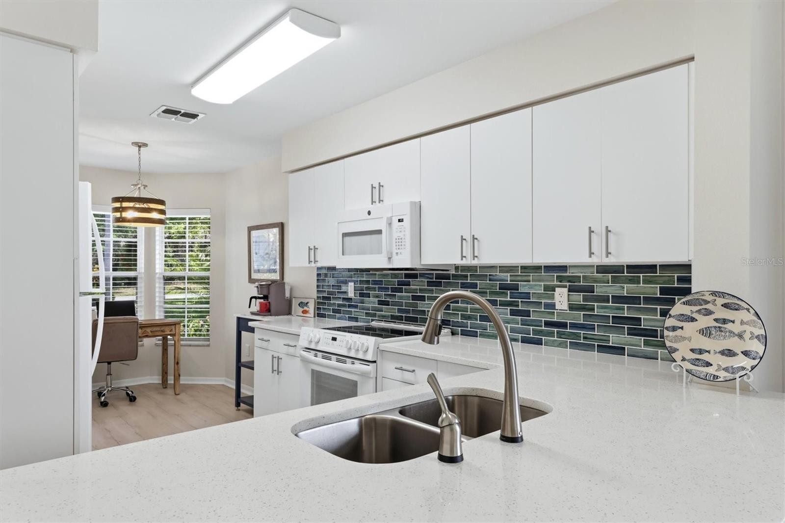 Welcome to 6401 Approach Road, a meticulously maintained villa nestled within the serene, tree-lined enclave of Westwoods at Sunrise. This spacious 1,275-square-foot residence features a thoughtful split-floor plan with two bedrooms and two bathrooms, designed to maximize both privacy and an airy, open-concept feel. Recent professional updates enhance the home’s appeal, including elegant quartz countertops, durable hard-surface flooring throughout, and a brand-new HVAC system installed in March 2026. The versatile, climate-controlled lanai offers the unique ability to function as an extended living area or a traditional outdoor porch. In addition, there is a charming screened breezeway at the front door that is perfect for morning coffee, a meal, or tending to your tropical plants. Storage is a standout feature, from the oversized laundry room and numerous interior closets to the one-car garage with a dedicated storage bump-out. Residents of this active 55+ community enjoy two heated pools, and a pet-friendly atmosphere with no CDD fees. This vibrant 55+ community is a social hub, boasting a year-round calendar of events and four premier pickleball courts that residents and friends actively play. Perfectly positioned near I-75, Detwiler’s Farm Market, and the world-class sands of Siesta Key, this villa represents the ideal Sarasota lifestyle for year-round residents and seasonal guests alike.