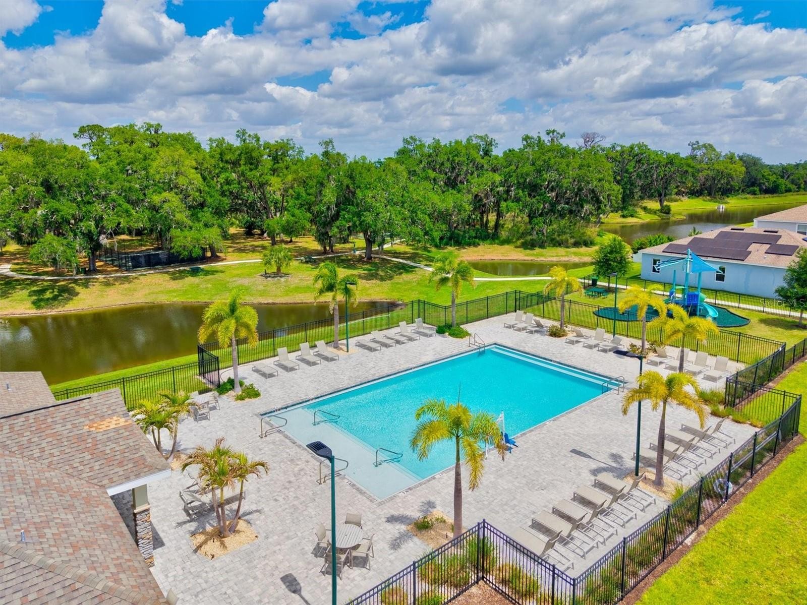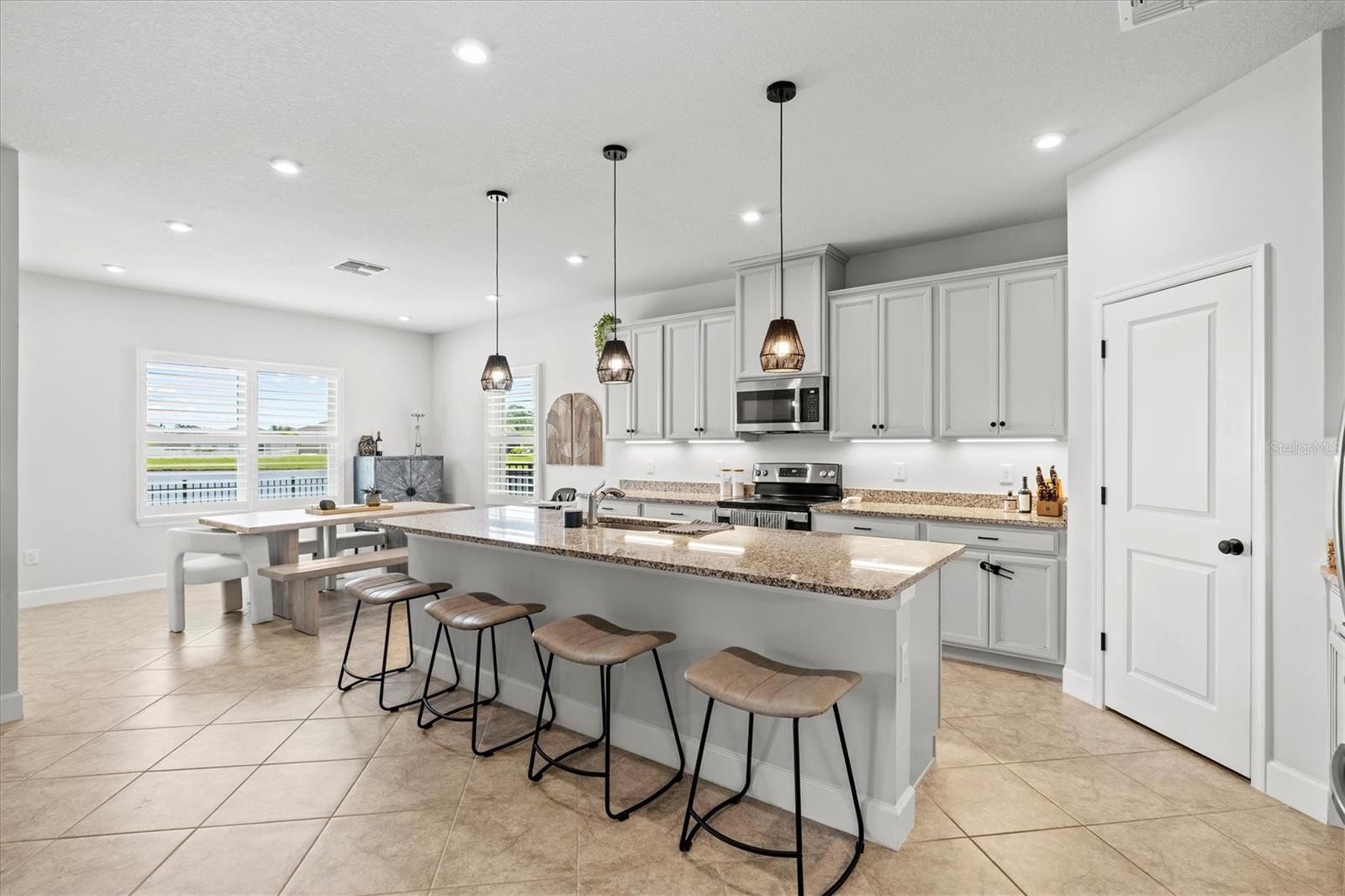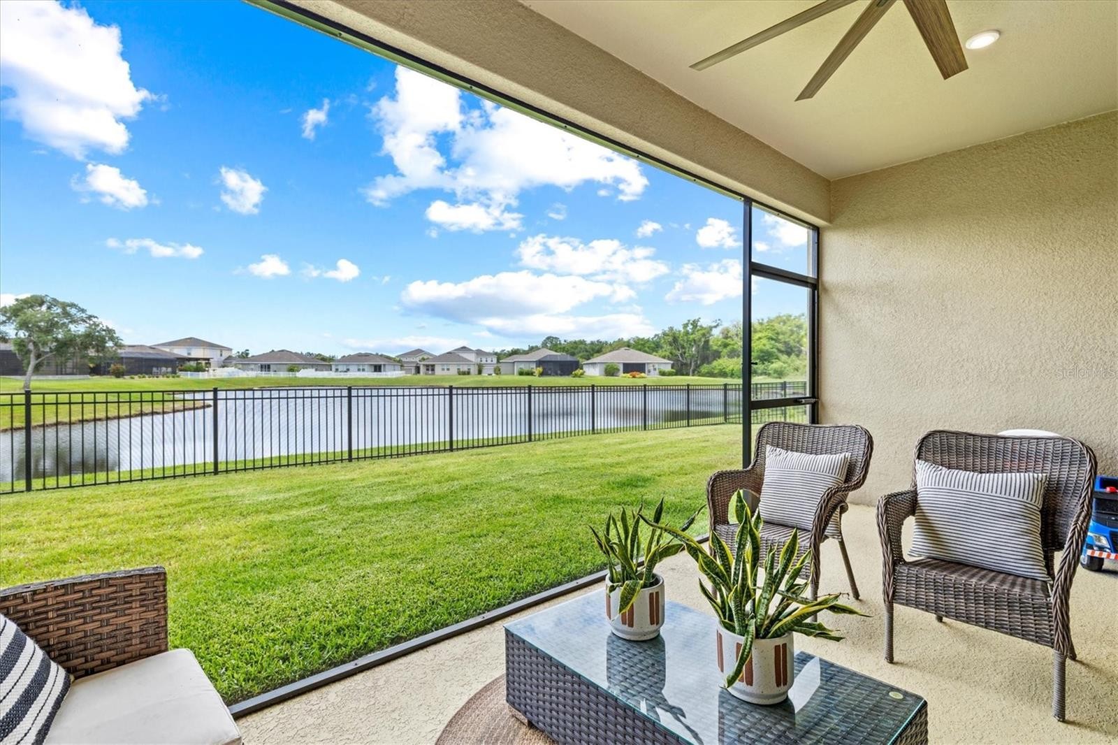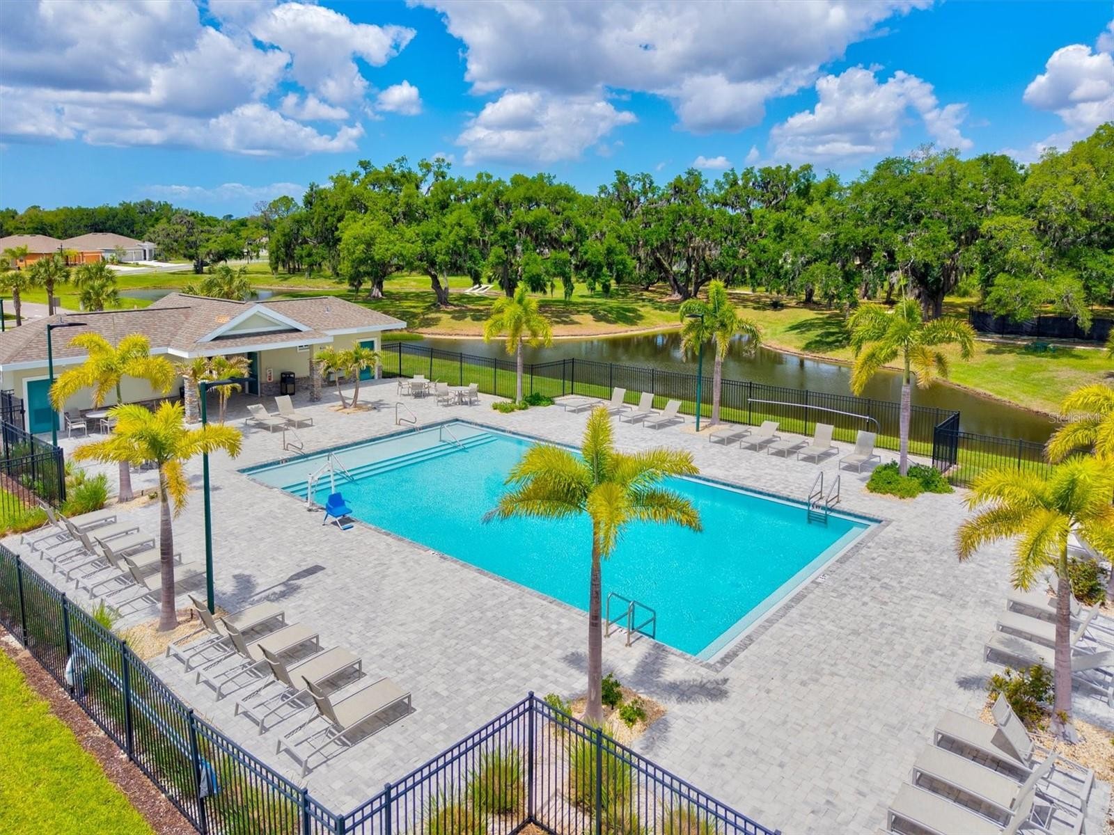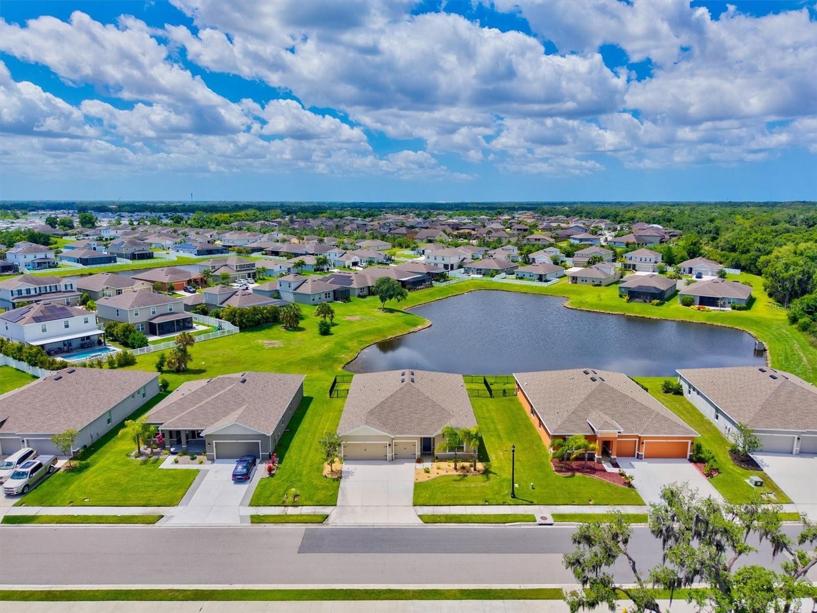 PRICE IMPROVEMENT — Water Views, 3-Car Garage & NO CDD! Now offered at an exceptional value, this move-in-ready home stands out in today’s market. Enjoy tranquil pond views, a 3-car garage, and LOW HOA with NO CDD fees. Inside, the open-concept layout features diagonally laid tile, abundant natural light, and expansive sliders framing the water. The chef’s kitchen offers a large island, granite countertops, stainless steel appliances, and stylish lighting—perfect for entertaining. The owner’s suite is a private retreat with pond views, tray ceiling, walk-in closet, and a spa-style bath with dual sinks and a frameless glass shower. A den with French doors adds flexible space for a home office. Relax on the screened lanai overlooking the fenced backyard and water. Priced to move—schedule your showing today.