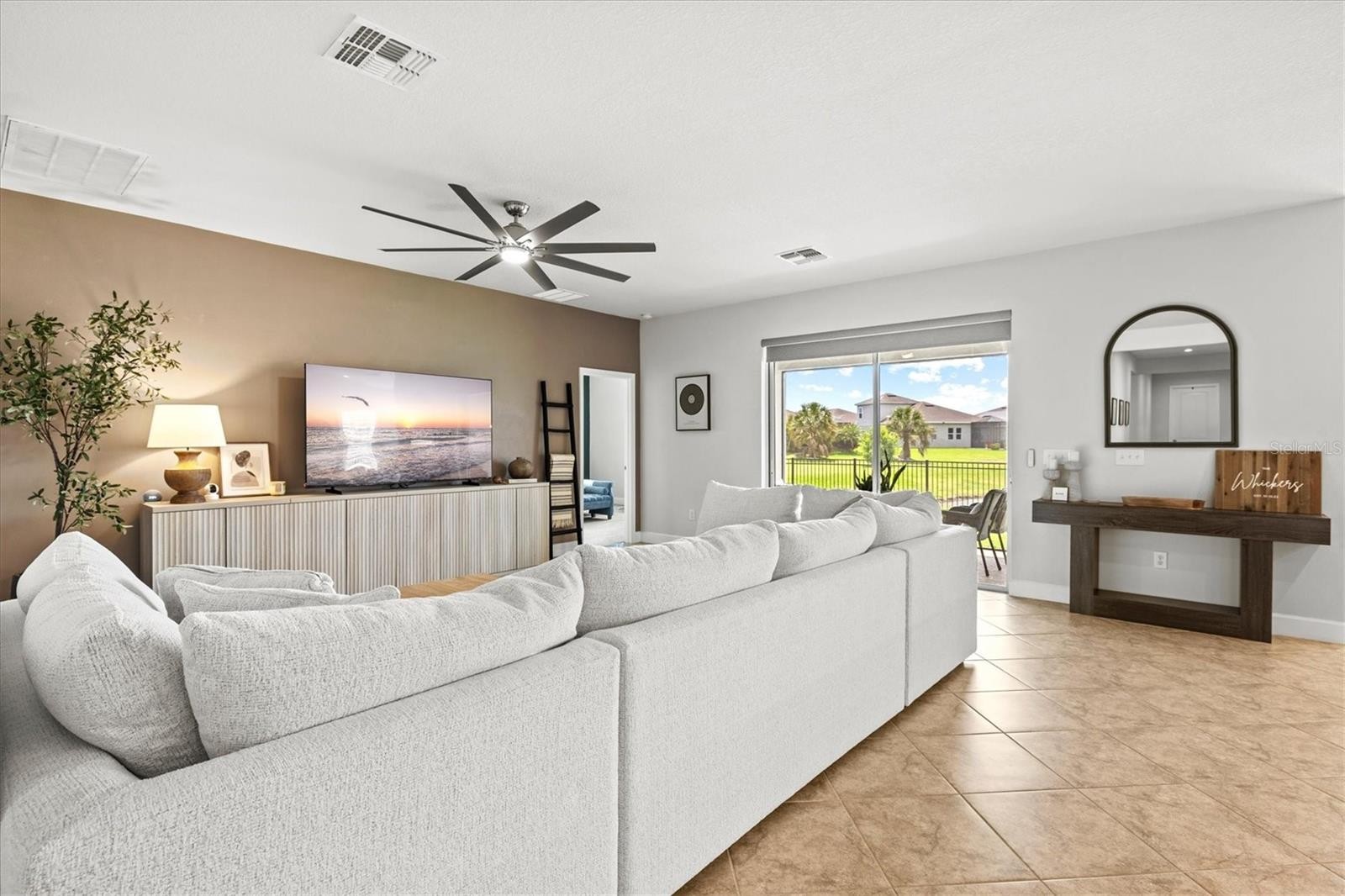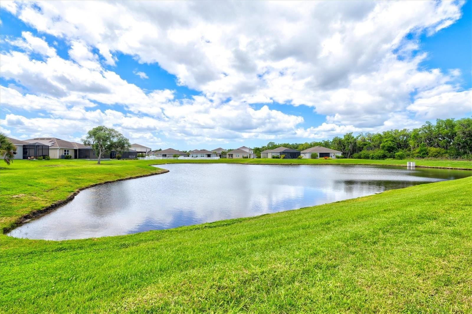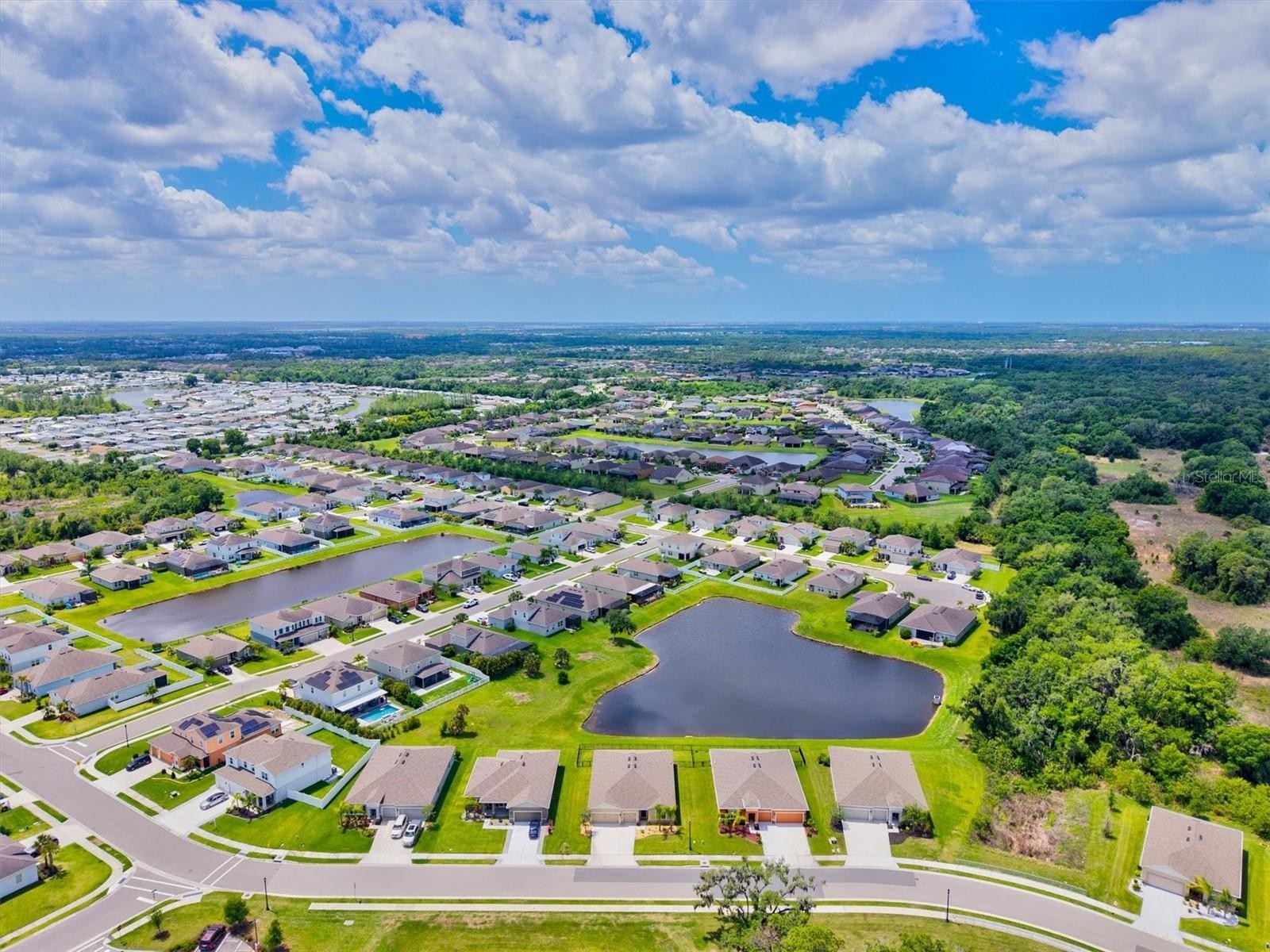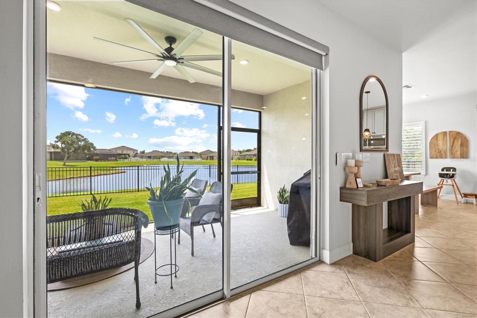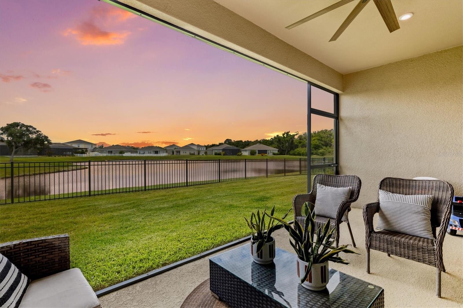 PRICE IMPROVEMENT — Water Views, 3-Car Garage & NO CDD! Now offered at an exceptional value, this move-in-ready home stands out in today’s market. Enjoy tranquil pond views, a 3-car garage, and LOW HOA with NO CDD fees. Inside, the open-concept layout features diagonally laid tile, abundant natural light, and expansive sliders framing the water. The chef’s kitchen offers a large island, granite countertops, stainless steel appliances, and stylish lighting—perfect for entertaining. The owner’s suite is a private retreat with pond views, tray ceiling, walk-in closet, and a spa-style bath with dual sinks and a frameless glass shower. A den with French doors adds flexible space for a home office. Relax on the screened lanai overlooking the fenced backyard and water. Priced to move—schedule your showing today.