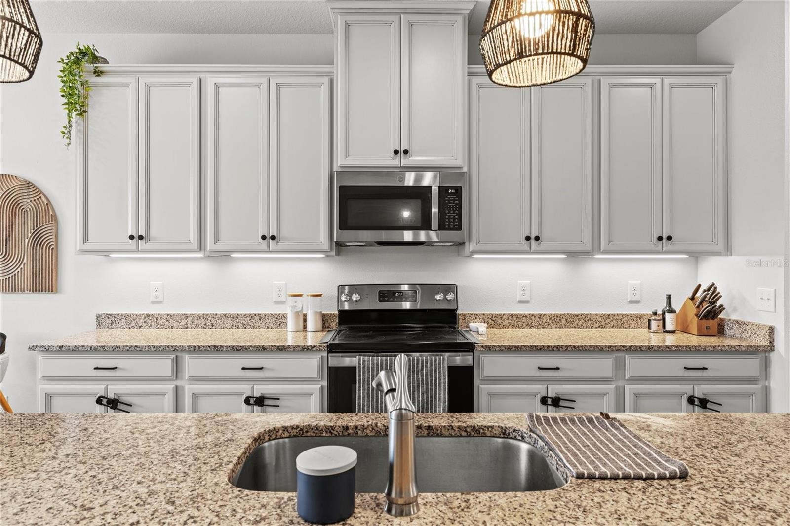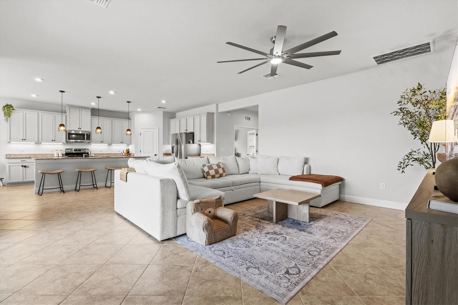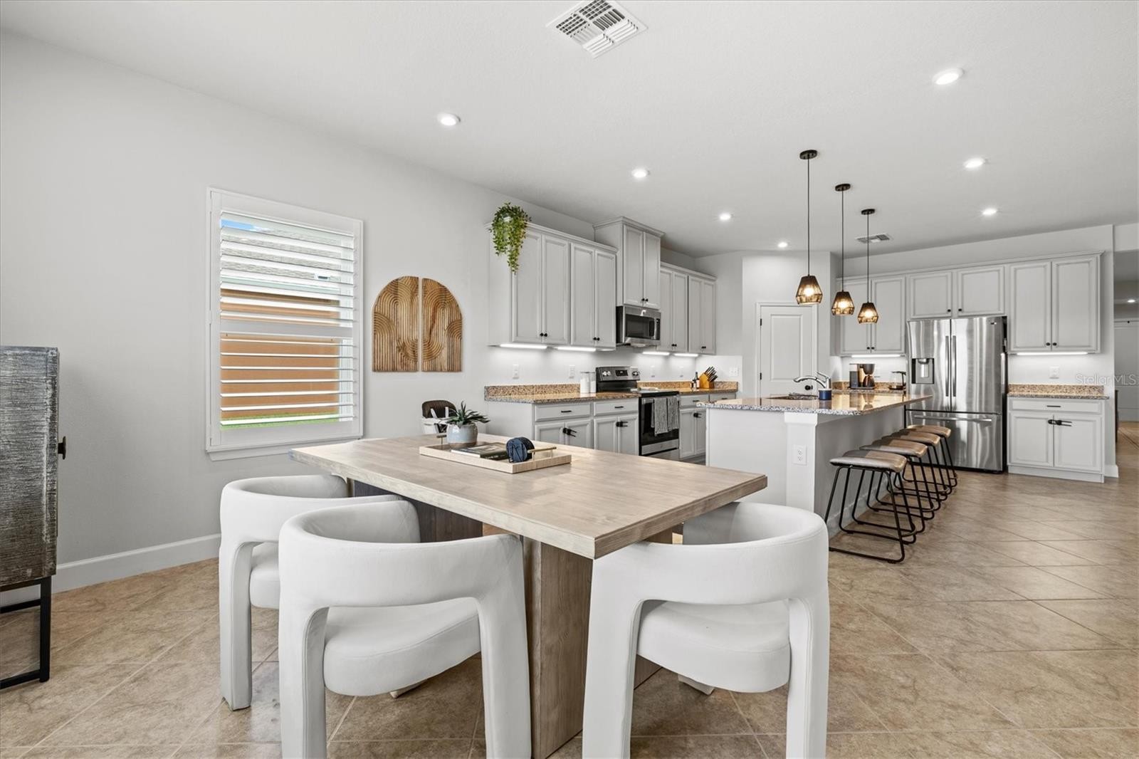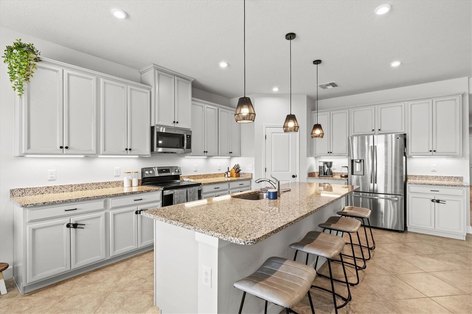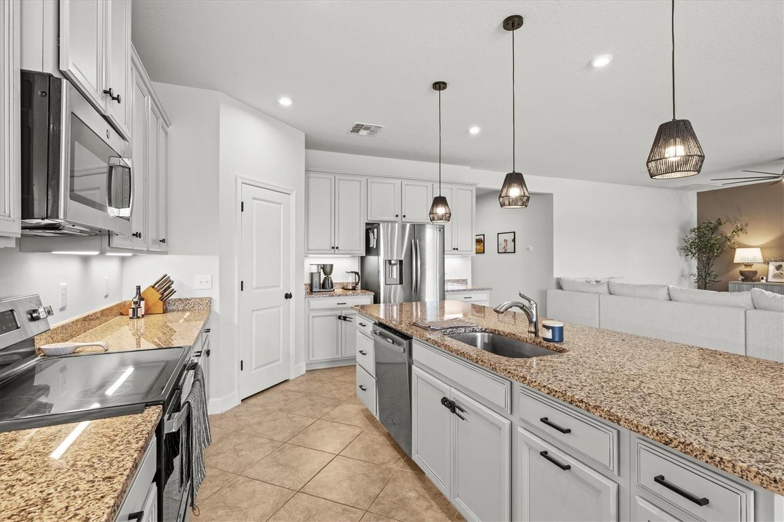 PRICE IMPROVEMENT — Water Views, 3-Car Garage & NO CDD! Now offered at an exceptional value, this move-in-ready home stands out in today’s market. Enjoy tranquil pond views, a 3-car garage, and LOW HOA with NO CDD fees. Inside, the open-concept layout features diagonally laid tile, abundant natural light, and expansive sliders framing the water. The chef’s kitchen offers a large island, granite countertops, stainless steel appliances, and stylish lighting—perfect for entertaining. The owner’s suite is a private retreat with pond views, tray ceiling, walk-in closet, and a spa-style bath with dual sinks and a frameless glass shower. A den with French doors adds flexible space for a home office. Relax on the screened lanai overlooking the fenced backyard and water. Priced to move—schedule your showing today.