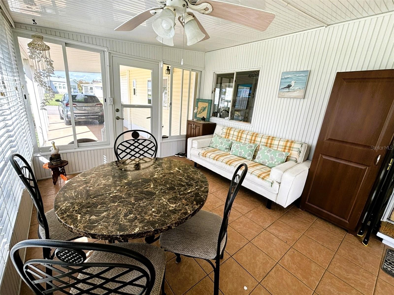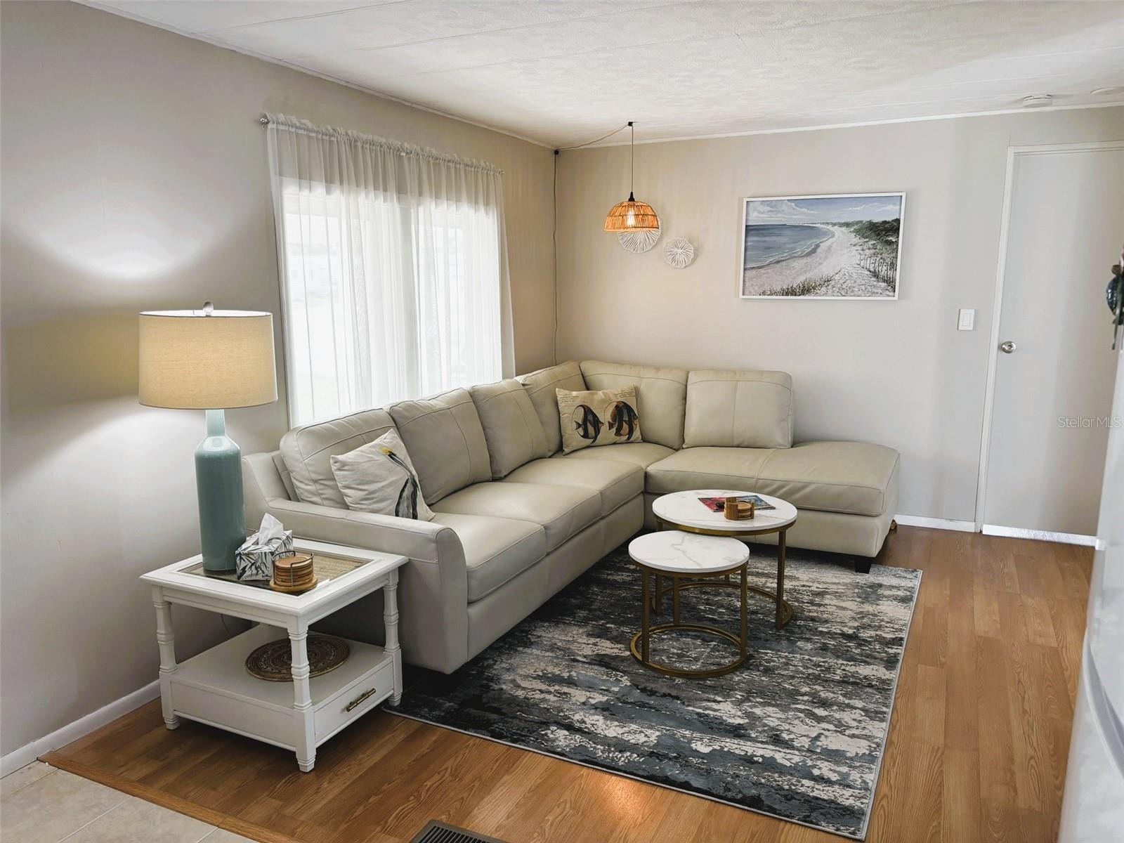 Holiday Park Gem. This 2 bedroom turnkey coach is fully furnished and being sold with major appliances, smaller appliances to include: air fryer, keurig coffee maker, toaster, electric kettle and the kitchen sundries include: dishes, cutlery, knives, pots, pans, cooking utensils, etc. There is no washer or dryer but Holiday Park has a laurdry center. This home offers a raised "den" off the kitchen with ceramic tile, all weather windows and a slider to the sunporch, the lanai offers ceramic tile as well with a ceiling fan and slider windows. Holiday Park is a premier land-owned, DEEDED community offering an exceptional lifestyle with a low monthly maintenance fee of $195 ($2,340.00/year), conveniently included in your tax bill. Residents enjoy access to two well-appointed clubhouses, two inviting swimming pools, and a comprehensive fitness center, ensuring ample opportunities for relaxation and recreation. The community is designed for active living, featuring tennis, pickleball, and bocce ball courts, along with a variety of indoor and outdoor games such as billiards, shuffleboard, and horseshoes. With ping pong tables, a card room, and dart boards, residents can engage in numerous social activities, all set within a beautifully landscaped park-like environment.