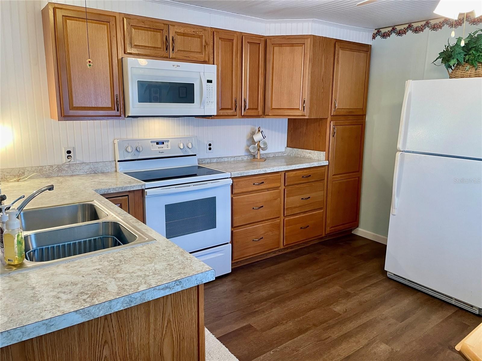 Located in a Wonderful gated community, Holiday Park is a mobile home community in North Port. Close to shopping, restaurants and parks, its' a great area to live in. Beaches, boating, bike/walking paths and neighboring small towns are a short ride away. This 1971, single wide, 2 bedroom, 2 bathroom, 1 car carport home with a screened lanai and storage/flex room is situated on a cul De sac in the center of the west section of the park with a green space for the backyard. Not far from the amenities Center, you can join friends to play shuffle board, patriciate in scheduled activities or chill in the community pool. There is something for everyone! Glance through the "What's Up Holiday Park" magazine when you tour this lovely home. There is 732sf of living space with a split floorplan, new LVP flooring along with ceiling fans in most of the rooms. You enter from the Lanai into the Living Room and Kitchen space. The Living room has windows on 2 walls, the Kitchen has been updated with newly replaced flooring, counters, cabinets, and microwave. The Primary bedroom is off of the Living room with a private bathroom that has a walk in shower. The 2nd bedroom and guest bathroom are off of the Kitchen. There is a tub/shower, additional cabinet storage and tile flooring. The 12.6x108 Lanai is screened and offers great outdoor living space. The storage/flex space is off of the Lanai. There is also another storage unit on the side of the home. The Special District fee, $2340) is paid with the tax bill. A special District differs from a community that owns shares or rents the land because they own the property their home sits on. That fee covers the amenities, lawn mowing and 1st come use of RV storage. There is no HOA fee in this community. Come see this lovely affordable home,check out this active, friendly community and fall in love!