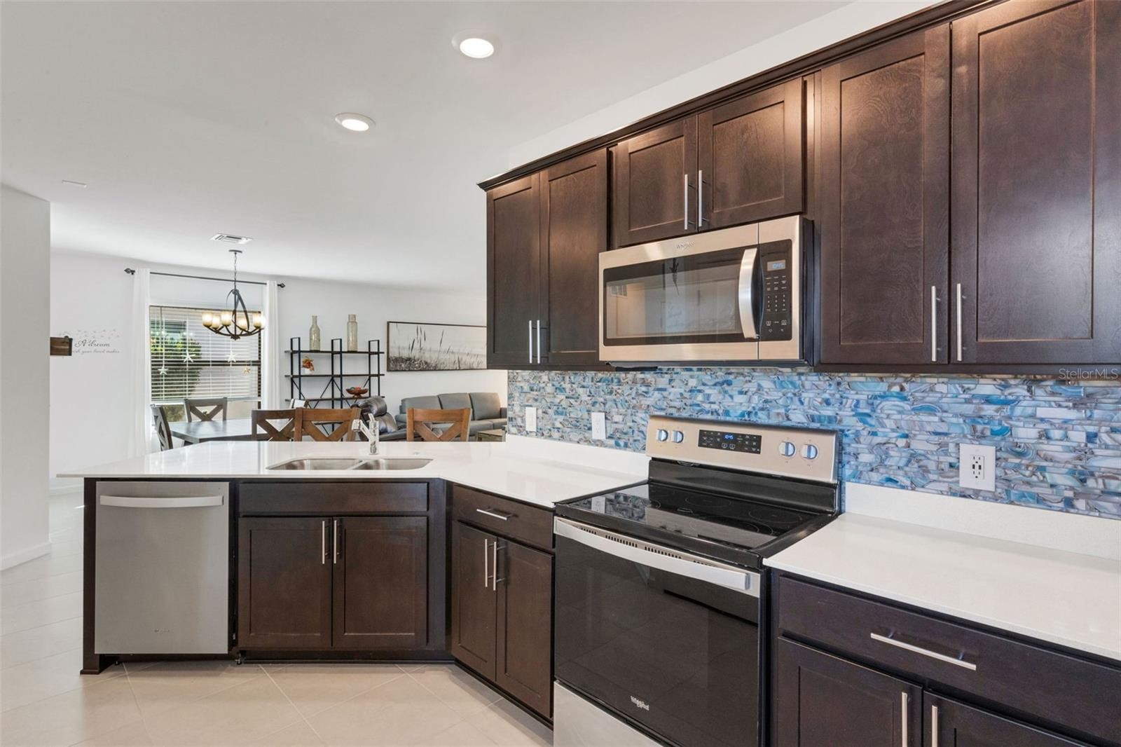 Discover effortless Florida living in this beautifully appointed Coastview model by Pulte Homes, featuring 2 bedrooms, 2 bathrooms, and a den/office. Located in the highly desirable Avanti at Waterside, this villa is just steps from Waterside Place, Lakewood Ranch’s premier hub for dining, shopping, weekly events, and lakeside recreation. Avanti is especially sought after for its modern construction, low HOA fees, and convenient access to Sarasota’s beaches, arts, and everyday amenities. Inside the open split floor plan offers 1,616 square feet of light-filled living space. As a desirable end unit, the home benefits from added privacy, abundant natural light, and a welcoming foyer that flows seamlessly into the main living area. Tile flooring throughout the main spaces and clean, contemporary finishes create a bright and inviting atmosphere. The kitchen is a true focal point, open to the living and dining areas and featuring quartz countertops, a breakfast bar, eat-in space, and stainless steel appliances, making it ideal for both entertaining and everyday living. Hurricane-impact windows and doors, along with Smart Home features, provide added peace of mind. Step outside to the screened lanai and enjoy peaceful Florida evenings overlooking an oversized lot with a spacious grassy area and tree-lined berm beyond - no rear neighbors for enhanced privacy. This villa offers the perfect blend of comfort, lifestyle, and location, making it an excellent choice for full-time living or a low-maintenance seasonal retreat, all with exceptionally low HOA fees that include grounds maintenance.