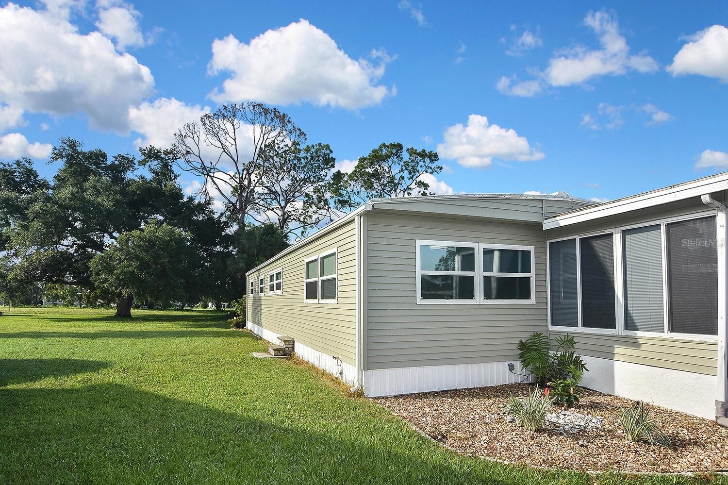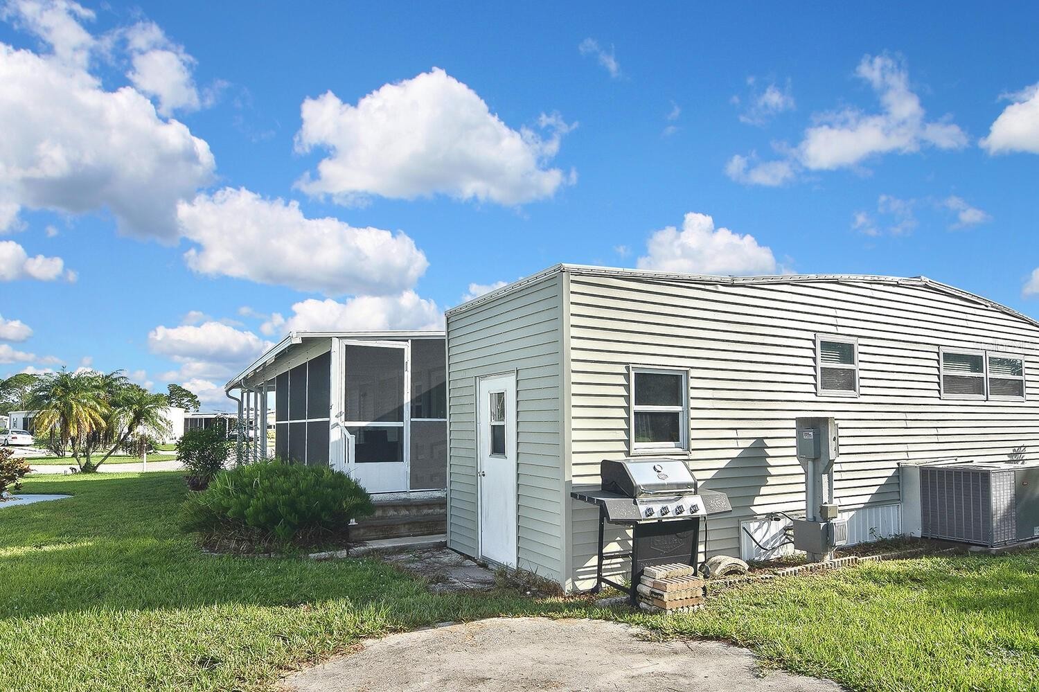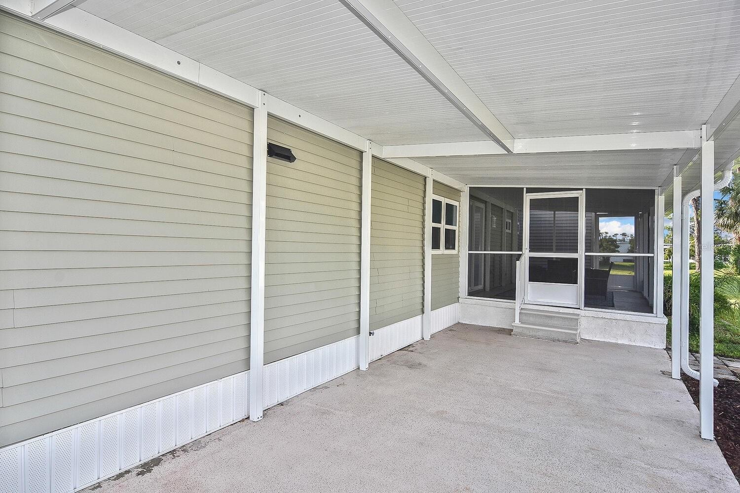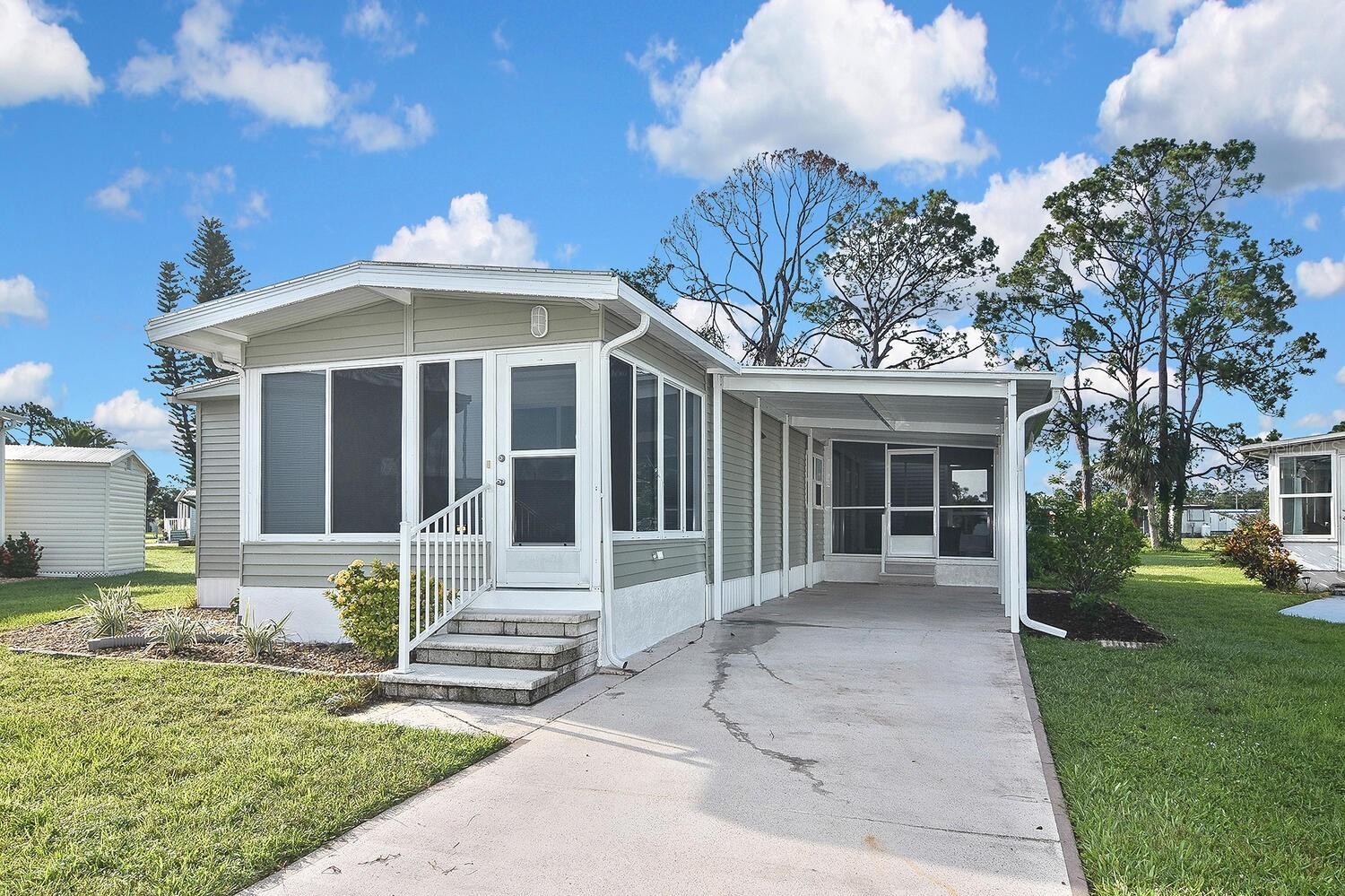 Turn-key double-wide home in Holiday Park! Completely renovated and gutted to the studs with a bonus Florida room, located in the pet section of Holiday Park — a gated 55+ community where you own the land. INTERIOR FEATURES: • Full renovation with new insulation, floors, drywall, plumbing, and electrical • New carport and screened lanai • 1,247 sq ft with 3 bedrooms, 2 bathrooms, plus lanai and Florida room • Bright, open living area • Updated kitchen with granite countertops, soft-close cabinets, and new appliances • Primary suite with en-suite bath • Stackable LG washer and dryer • Bonus Florida room for extra living space • Exterior shed for tools, bikes, or beach gear • Sold turn-key furnished for a seamless move-in ABOUT HOLIDAY PARK: Holiday Park has no monthly HOA — instead, lawn care, community services, and all amenities are included in your annual property taxes as part of the special district. Located in Flood Zone X (no flood insurance required). COMMUNITY AMENITIES: • Two heated swimming pools • Tennis, pickleball, bocce, shuffleboard, and horseshoes • Billiards room, library, line dancing, wood carving, bowling groups, and more LOCATION & LIFESTYLE: Holiday Park offers unbeatable value and a welcoming, active Florida lifestyle. Whether you’re looking for a winter escape or a full-time residence, this home checks all the boxes. Schedule your showing today!