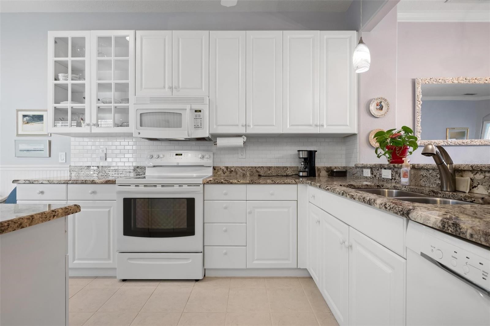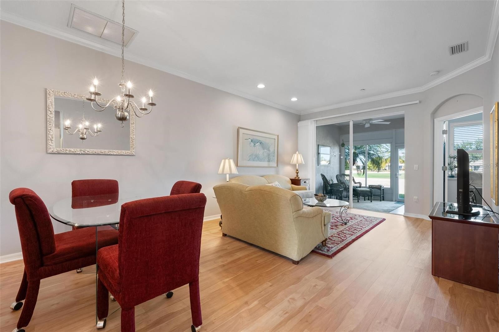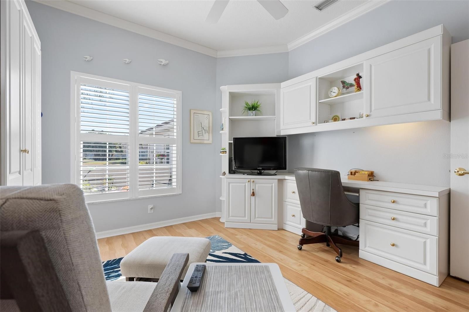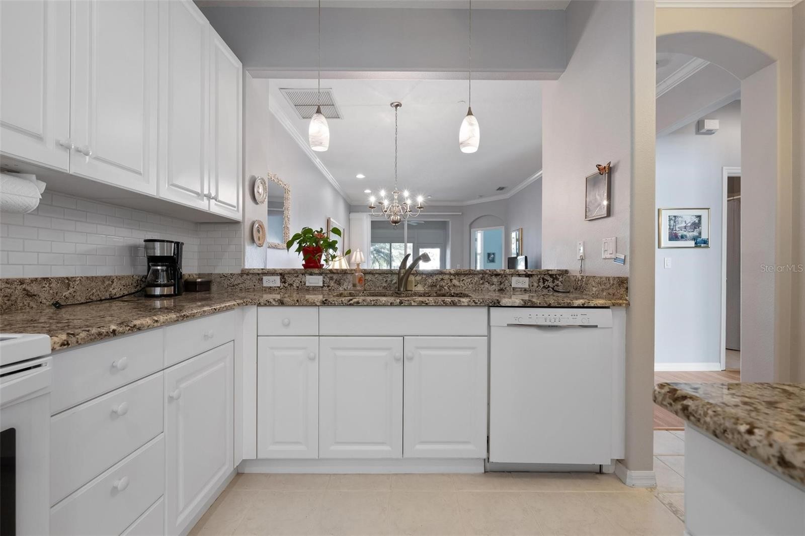 Simply lovely villa in The Links at Pelican Pointe Golf & Country Club, overlooking the par-4 14th hole of the Meadows Course. Conveniently situated approximately 100 feet from the Villas’ heated community pool. Virtually all structural and mechanical components have been replaced within the past few years, including tile roof (2023), all windows – hurricane rated (2022), HVAC (2022), lanai converted to a sunroom with hurricane-rated windows and doors (2022), all appliances (2021-2025), whole house surge protector (2018), and re-piped. Similarly, the interior was recently refashioned with luxury vinyl flooring (2022), crown moldings (2022), whole house interior painted (2002), and epoxy garage floor (2021). Additional features include plantation shutters, granite countertops in the kitchen and baths (each bathroom equipped with Hi-Line toilets), and guest bedroom/office with custom built-in cabinets, draws, desk, and Murphy bed. Enjoy maintenance-exterior free living at The Links, where low HOA fees include 24/7 guard service, high speed internet and expanded cable, and a clubhouse and facilities which include a Ladies Association with over 45 activities/groups, the primary pool, fitness, tennis, new pickleball courts, casual dining, social and event space. Offering 27 holes of semi-private golf, where you can join as a member or pay-as-you-play. Minutes away are the beaches, shopping, dining, walking/biking trails, other recreational activities, and cultural venues of Venice Island.