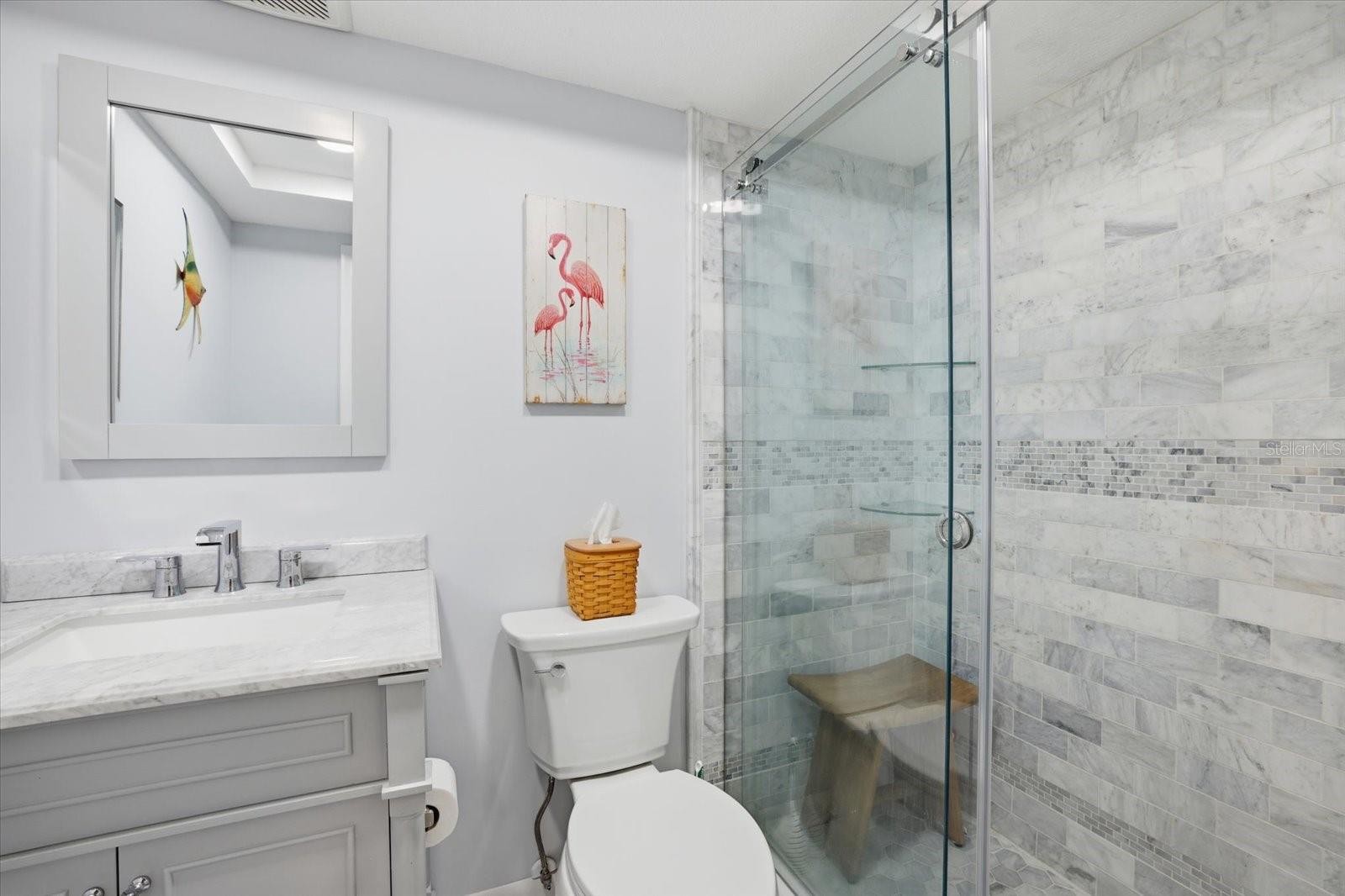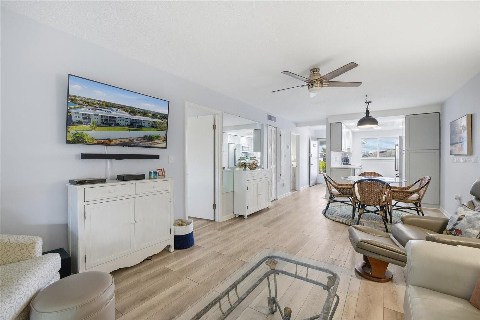 Island of Venice Condo, 2 bedrooms with ensuite baths, turnkey furnished, all new kitchen with updated appliances ceramic tile floor and quartz counter tops, both baths completely updated with glass shower doors and ceramic tile, new A/C, new water heater, luxury plank floors in common areas and bedrooms, impact resistant windows and slider provide security and quiet, situated on the heart of Venice Island just one block from the Venitian Waterway Trail that connects to the Legacy Trail, walking distance from dining and shopping, all of this and a modest HOA, just bring your toothbrush and enjoy the Island Life.