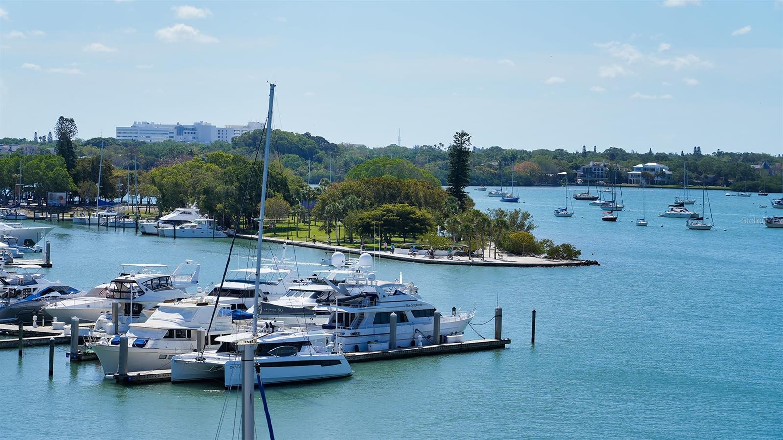 Luxury Waterfront Penthouse in Golden Gate Point. This exceptional penthouse in an exclusive 14-unit boutique building offers breathtaking panoramic views of Sarasota Bay, the city skyline, and Marina Jack. Occupying half of the top floor, this meticulously designed three-bedroom, three-bathroom residence features a spacious split floor plan with an open-concept layout ideal for privacy and entertaining. The chef's kitchen includes top-of-the-line appliances, imported finishes, and a wet bar, while the master suite offers a private wet bar, spa-inspired bath, and stunning views. Turnkey with high-end Italian furnishings and artwork (with few exceptions), the home also features a 52-foot heated balcony for prime waterfront relaxation. A rare assigned 40-foot boat slip provides direct access to Sarasota Bay and the Gulf. Harbor View was redeveloped to Florida's enhanced building codes in 2006-07, with $1.5M in updates in 2018 and a new seawall, docks, and renovated pool/patio in 2022. Gated entry, security cameras, and two covered parking spaces add convenience. Just four blocks from downtown Sarasota and a short bike ride over the Ringling Bridge to Lido Beach and St. Armands Circle, this exclusive penthouse offers luxury waterfront living at its finest. Schedule your private showing today!