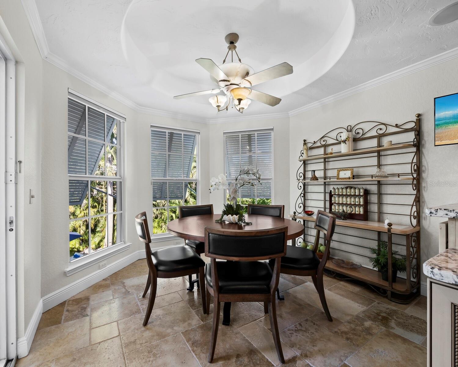 Experience island living at its finest in this exquisite coastal retreat in the historic Village on Longboat Key. This home offers a refined blend of relaxed coastal charm and timeless sophistication throughout more than 3,300 heated square feet. The meticulously designed interior includes elegant crown molding, coffered ceilings, custom doors, impact windows and an elevator from the garage to each level. The great room features dramatic ceiling height and opens to a large covered terrace overlooking an exceptionally private backyard, creating an ideal setting for quiet evenings and effortless entertaining. The gourmet kitchen is a chef’s dream with rich wood cabinetry, granite countertops, natural gas cooktop, a pot filler, center island with sink and second cooktop, and a bright breakfast nook that opens to a covered terrace, ideal for morning coffee. Adjacent dining and living areas flow seamlessly and are enhanced by a coffered ceiling and French doors to the charming terrace. The second-level primary suite serves as a serene retreat with polished wood floors, an intricate coffered ceiling, a comfortable seating area, and a private covered balcony for enjoying peaceful moments under the morning or evening sky. Elevated views and sound of ospreys add to the sense of tranquility. The suite also features a spacious en-suite bath with soaking tub and two walk-in closets. Three additional bedrooms provide comfort and flexibility for guests or work needs. Outdoors, a resort-style saltwater pool and spa with integrated features are surrounded by lush landscaping and generous lounging space. The expansive ground-floor lanai and outdoor kitchen further enrich the indoor-outdoor living experience. A circular brick drive accommodates more than 10 vehicles, and the oversized two-and-a-half-car garage and first-level area offer abundant storage, ideal for bicycles, golf carts, kayaks and more. The home and pool are centered on a 12,000-square-foot lot, and an adjacent 6,000-square-foot parcel is also available from the same owner for those interested in expanding or creating a larger compound. This unique golf cart friendly community is surrounded by waterfront restaurants, quaint shops, cafés, fitness centers, fishing piers, a boat ramp on Sarasota Bay, kayak launch areas and a pristine Gulf beach just moments away with no mandatory HOA. We invite you to experience this remarkable home in person to fully appreciate its beauty and lifestyle.