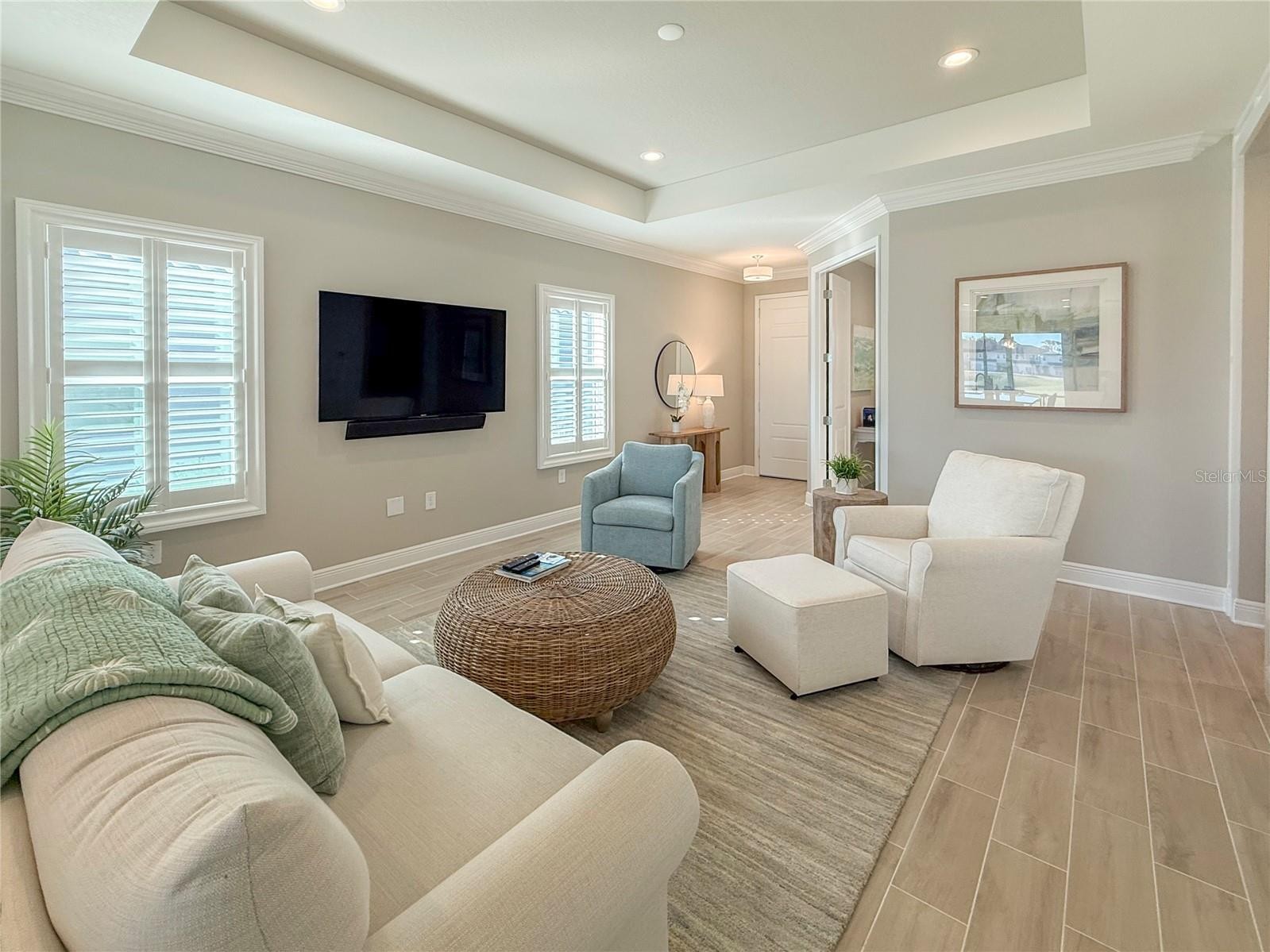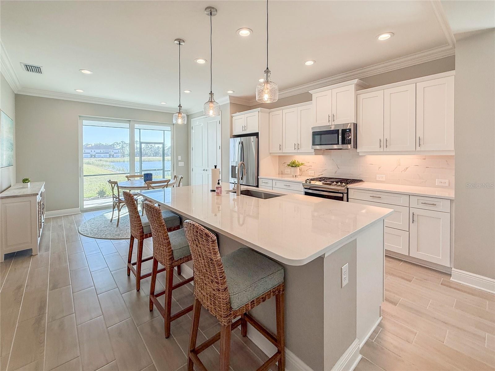 This is a furnished three bedroom two bathroom lake view home with a den in Sarasota's Grand Park. This home has a split floorplan with a great room that features coffered ceilings and luxury furnishings. The den is located near the entry and is connected to the large great room. The eat-in kitchen features a large island with breakfast bar, quartz countertops, a custom tile backsplash, gas range, and stainless steel appliances. There is a dining area near the sliding glass doors and the closet pantry with lake views, a screened patio and an open backyard. The master bedroom has a closet and an ensuite bathroom with his and her vanities, another walk-in closet, a private toilet room and a walk-in shower. There are two spare bedrooms and a spare bathroom with a tub/shower combination. There is a laundry room with a washer / dryer and access to the 2 car garage. Grand Park is known for its lush greenery and parks throughout.Grand Park offers resort style amenities including two resort style pools, spa, Tennis courts, Pickleball courts, Clubhouse with active Social Calendar, State of the art Gym, trails and 2 Dog Parks. Grand Park is conveniently located minutes from I-75 and the Clark Rd Exit. Nearby is also Twin Lakes Park, Shopping and Restaurants. The community does not allow parking recreational vehicles, boats, or trailers in the driveway overnight. Please allow up to 3 weeks after lease signing for community approval before move-in. We score every application. If an application doesn’t score high enough, the resident may be required to place the equivalent of two months’ rent in a security deposit. Please be aware that leasing this property includes a non-optional Home Assistant Services Package that will cost an additional $30 per month. These services and their cost are separate from Tenant’s monthly rent payment and all other payments described in the Lease or any separate Lease addendums. The Home Assistant Services offered are described in the Resident Welcome Packet which can be viewed here: www.sarasotamanagement.com/home-assistant