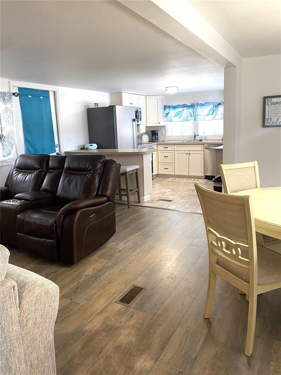Charming, coastal, and move-in ready, this 3-bedroom, 2-bath home offers an inviting open floor plan designed for comfortable everyday living and easy entertaining. The spacious layout seamlessly connects the living room, dining area, and kitchen, creating a bright and welcoming atmosphere throughout. The kitchen features a convenient breakfast bar, perfect for casual dining, morning coffee, or gathering with guests while preparing meals. Thoughtful design continues into the primary suite, where you’ll find a private ensuite bathroom along with the added convenience of an in-suite laundry area—making daily living both practical and efficient. Each bedroom provides flexibility for guests, hobbies, or a home office, while the home’s coastal-inspired furnishings add warmth and charm, making it truly move-in ready. Step outside to enjoy the covered carport and embrace the relaxed Florida lifestyle this home offers. Located in Trailer Estates, a Special Park and Recreation District governed under Chapter 418, Florida Statutes, residents own their land so no lot rent, CDD, or HOA fees. The annual park tax covers cable, high-speed internet, trash pickup, fire and rescue services, and access to outstanding amenities including a marina with rentable boat slips, private beach, pool, hot tub, fitness center, shuffleboard, bocce ball, pickleball, woodshop, and nearly 60 active clubs and social events. Experience one of Sarasota Bay’s most vibrant and welcoming 55+ communities.