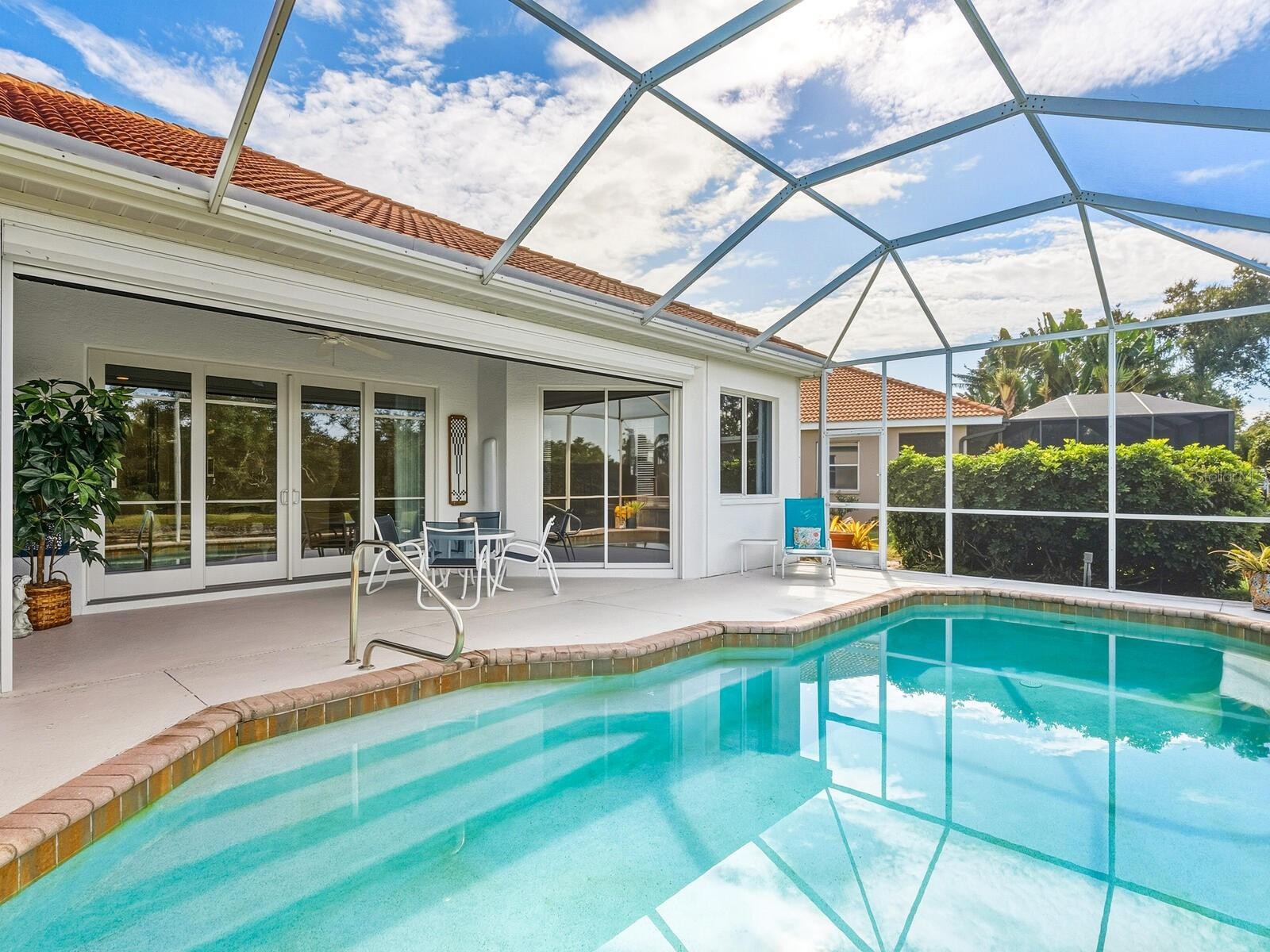 Beautifully set on a private, pie-shaped lakefront lot, this 3-bedroom plus office pool home offers rare privacy in desirable Mote Ranch—a peaceful community with great amenities in an unbeatable location. A picturesque tree-lined street and paver driveway welcome you home. Inside, the light-filled great room features high ceilings and walls of sliders framing tranquil views of the pool, lake and preserve beyond, creating a bright and inviting gathering space. The spacious white kitchen offers easy-care Corian countertops, a classic subway-tile backsplash, and an ample breakfast bar ideal for casual dining. The primary suite is a serene retreat with calming lake views, a soaking tub, raised double vanities, and dual walk-in closets. Outdoors, enjoy complete privacy on the screened-in lanai, where the sparkling pool invites you to relax, entertain, or watch Florida’s bird life and magnificent sunsets over the water. Just half a mile away, the Mote Ranch recreation center sits along the Braden River—featuring a kayak launch, dock, fishing, community pool, playground, and scenic walking trails. Located in sought-after Mote Ranch, this home is within 4 miles of I-75, Nathan Benderson Park, Mote SEA aquarium, Whole Foods, Trader Joe’s, and The Mall at University Town Center—an unparalleled shopping, dining, and entertainment destination. You'll also be just 10 miles from award-winning beaches, and the vibrant arts and culture of downtown. A fabulous Florida lifestyle!