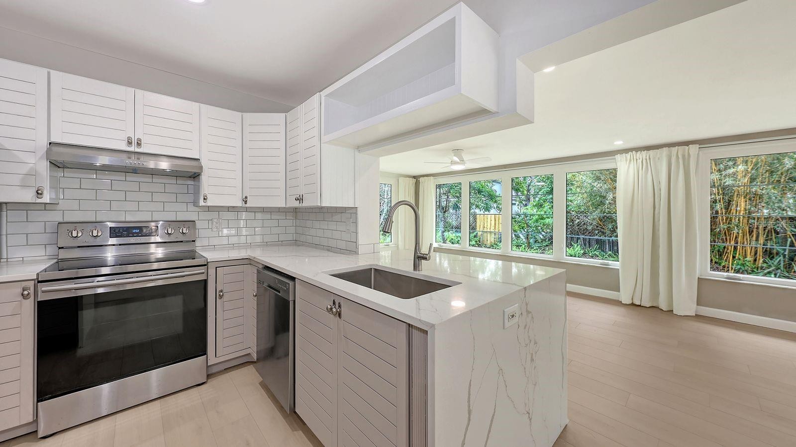 Fantastic location, quiet, peaceful, and in the middle of it all. This 3 bedroom, 2 bath, 2 car garage home is available immediately! Spacious, fully remodeled home features beautiful luxury vinyl flooring throughout, new windows, new bathrooms and an updated kitchen with quarz countertops and newer, stainless steel appliances. Enjoy the outdoors from your large screened lanai. The backyard is ready for the next gardener to take over! Pets OK! 12 month minimum rental.