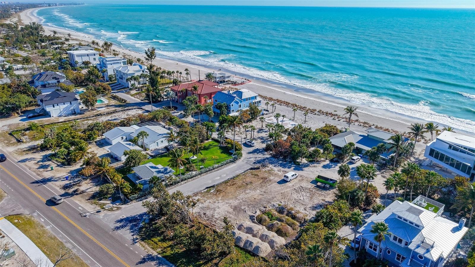 Under Construction. You're in for something special with this new beachfront construction set to be completed by May, 2026. Located on over a quarter acre on Longboat Key, this contemporary luxury home is directly on the beach with stunning Gulf views. Designed with a modern coastal aesthetic, it’s built for both style and comfort. Inside no detail is overlooked. From sleek Walker Zanger porcelain tile to custom cabinetry and polished nickel fixtures, the finishes are top-tier. The gourmet kitchen features an expansive layout with a large waterfall-edge island, double Wolf ovens, Sub-Zero refrigeration, a full-size wine cooler, and a Wolf induction cooktop—everything you need for serious cooking or entertaining. Primary suite is a true showstopper with floor-to-ceiling glass sliders that open wide to a sweeping terrace. Gulf breezes flow through the space, and the shimmering azure water is always in view. Inside, the suite offers a spacious walk-in closet and a spa-like bath featuring tiled walls, a walk-in shower with multiple heads, a soaking tub, dual floating vanities, and a private water closet. Upstairs, an executive office and three generous bedroom suites—each with its own walk-in closet—gives plenty of space for family or guests. A fourth bedroom shares a cozy den, perfect for lounging or movie nights. The grand-level outdoor space takes full advantage of its beachfront setting with a 36-foot lap pool, sun shelf, heated spa, and a fully equipped summer kitchen with a grilling station—ideal for effortless entertaining, all just steps from the sand.