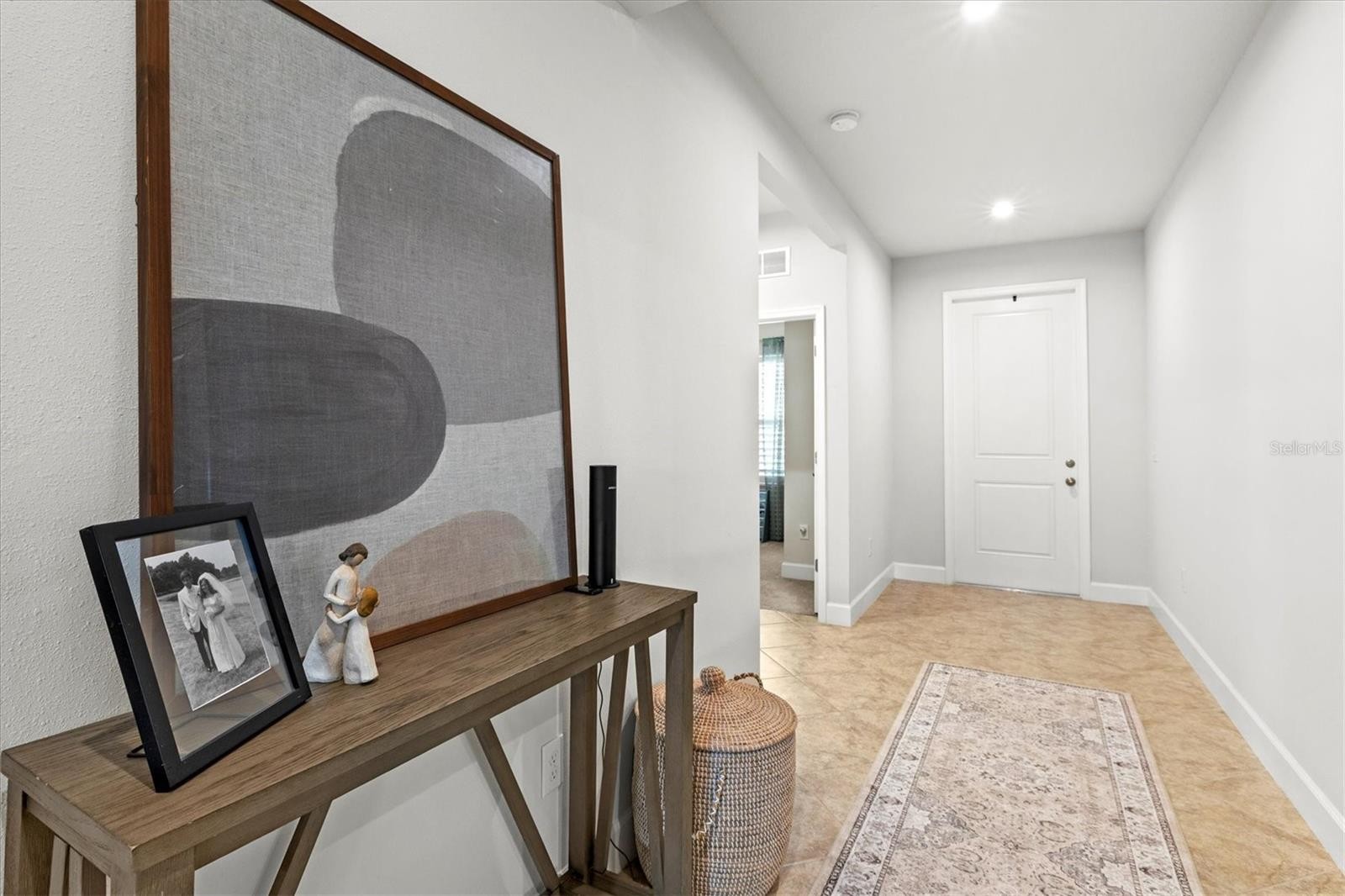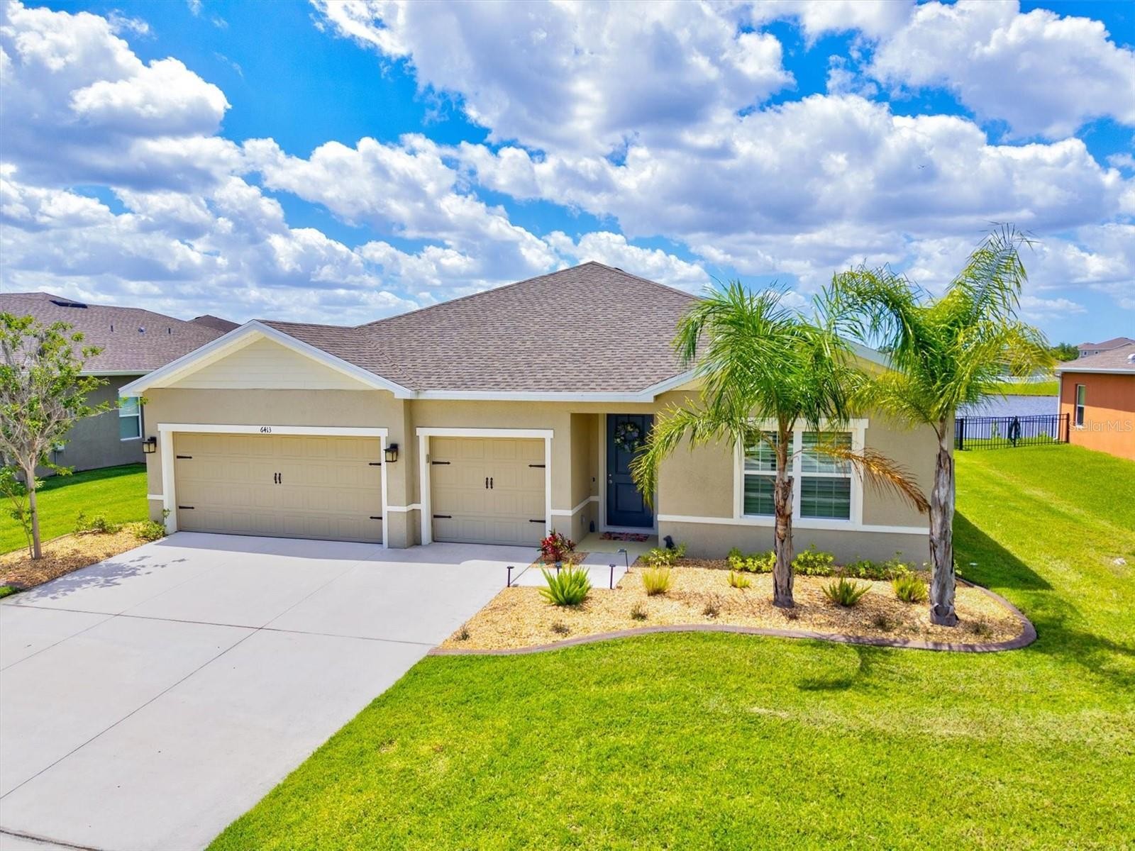 Prepare to be awed by this beautiful home with an inviting covered front porch. This open floor plan features 9-ft. ceilings, a secondary bedroom, an expansive great room, and access to a covered patio, perfect for hosting family! The beautiful kitchen features a large at-eat island, 42-in. upper cabinets with crown molding, a pantry, granite countertops, and a stainless-steel Whirlpool® appliance package. Upstairs, you will find two secondary bedrooms, each with ample closets and a dedicated laundry room. The primary bedroom boasts a walk-in closet, while the adjoining bathroom comes complete with a linen closet, an extended dual sink vanity with granite countertops, and a walk-in shower with tile surround. Community offers no CDD and low HOA.