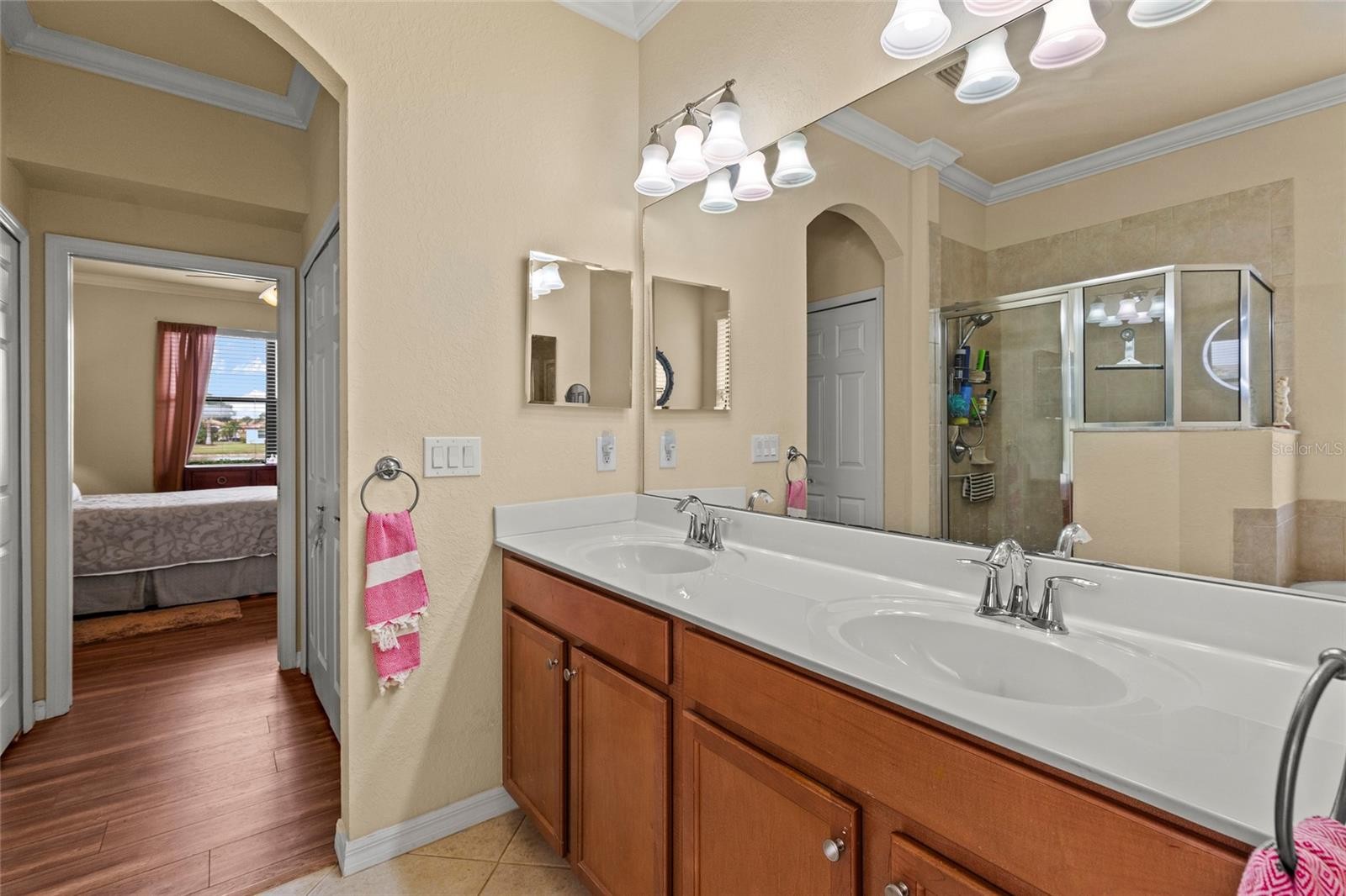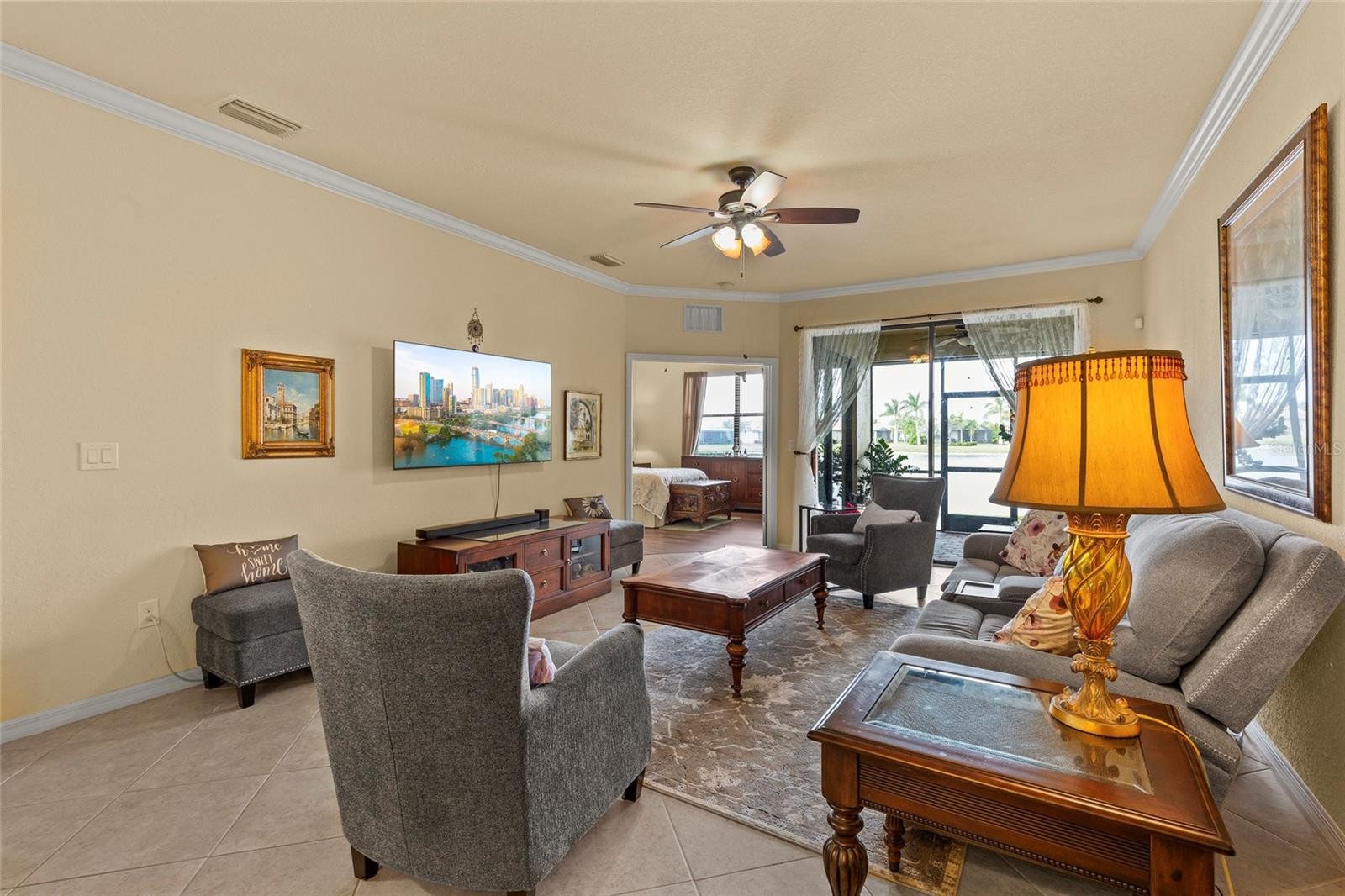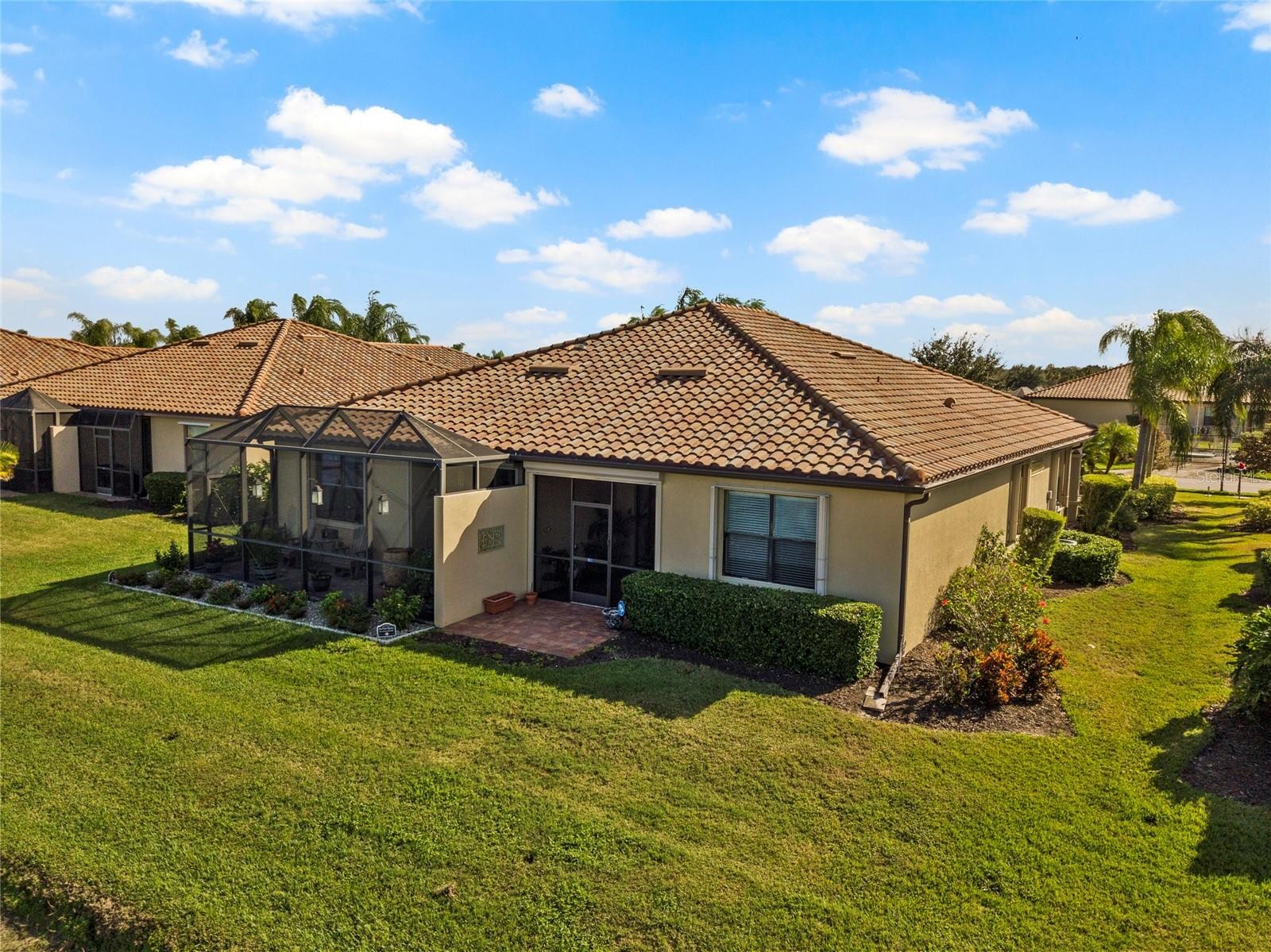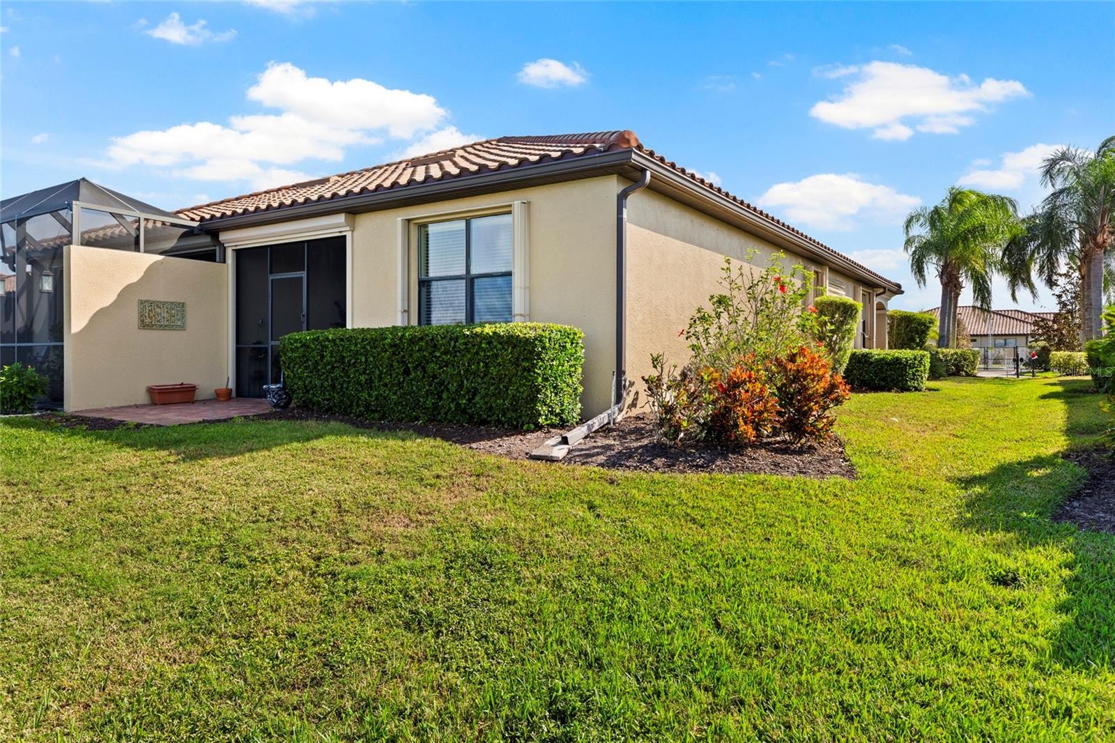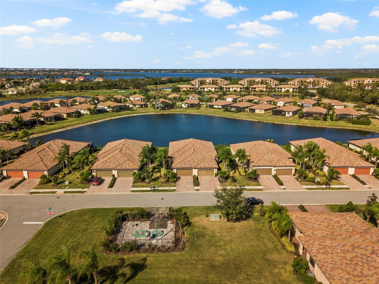 Wake up each day to calming water views in this beautifully maintained villa located within the sought-after River Strand Golf & Country Club in Bradenton. Offers 1% lender credit at closing. Designed for both relaxation and entertaining, the home features a versatile layout with two bedrooms, a dedicated den, two full bathrooms, and an attached two-car garage—all complemented by a peaceful, maintenance-free setting. The open-concept design allows the main living areas to flow effortlessly, with a spacious dining area connecting to the family room—ideal for hosting guests or unwinding after time spent enjoying the community amenities. The kitchen is well-appointed with granite countertops, stainless steel appliances, 42-inch cabinetry, a breakfast bar, and a pantry, making it as functional as it is inviting. A split-bedroom floor plan places the primary suite at the rear of the home while the guest bedroom sits at the front, offering privacy for everyone. The den provides flexible living space and is enhanced with wood flooring, built-in shelving, and work surfaces—perfect for a home office or creative hobbies. The primary bedroom offers tranquil lake views and includes custom-organized closets and a private en-suite bath featuring dual vanities, a soaking tub, and a walk-in shower. Step outside to the screened lanai, complete with an easy-to-use hurricane screen, or enjoy the extended patio area—ideal for grilling, sunbathing, or entertaining. There is also potential to expand the lanai to further enhance outdoor living. Additional upgrades include accordion hurricane shutters throughout, a 2021 AC system with UV air purification, and newly added cabinetry in both the laundry room and garage for excellent storage solutions. A turnkey furnished option is available, offering a seamless move-in experience. River Strand delivers a resort-style lifestyle with an impressive lineup of amenities, including two main pools, six satellite pools, a heated spa, tennis courts, eight pickleball courts, a fitness center, and a fully renovated 39,000-square-foot clubhouse. Residents enjoy multiple dining options, including a grille room and Tiki bar, along with year-round social events and live entertainment. Golf is available on a pay-to-play basis. HOA fees cover cable TV, exterior maintenance, lawn care, irrigation, and full access to the community amenities. Conveniently located near Costco, Publix, Walmart, UTC Mall, dining, parks, and walking trails, and just 30 minutes from Bradenton Beach, Anna Maria Island, and Siesta Key, this villa offers the ideal blend of comfort, convenience, and active Florida living. Schedule your private showing today and experience it for yourself.