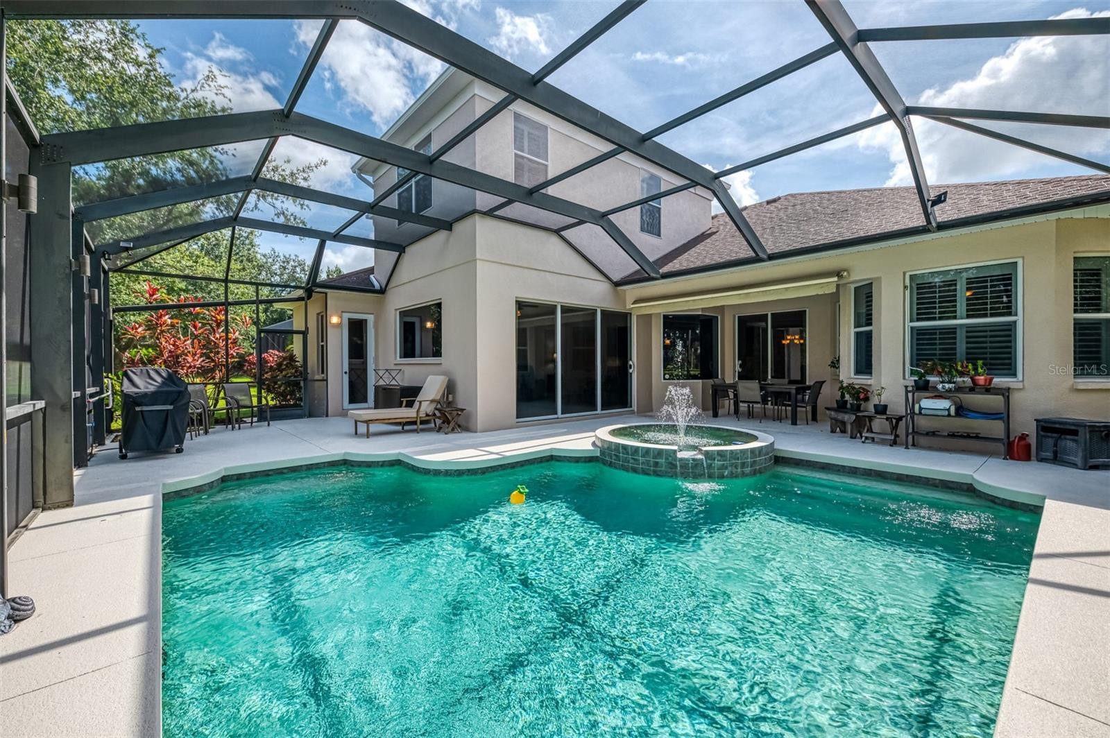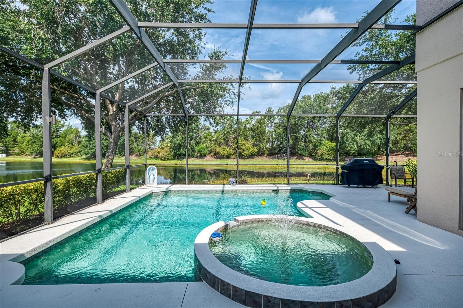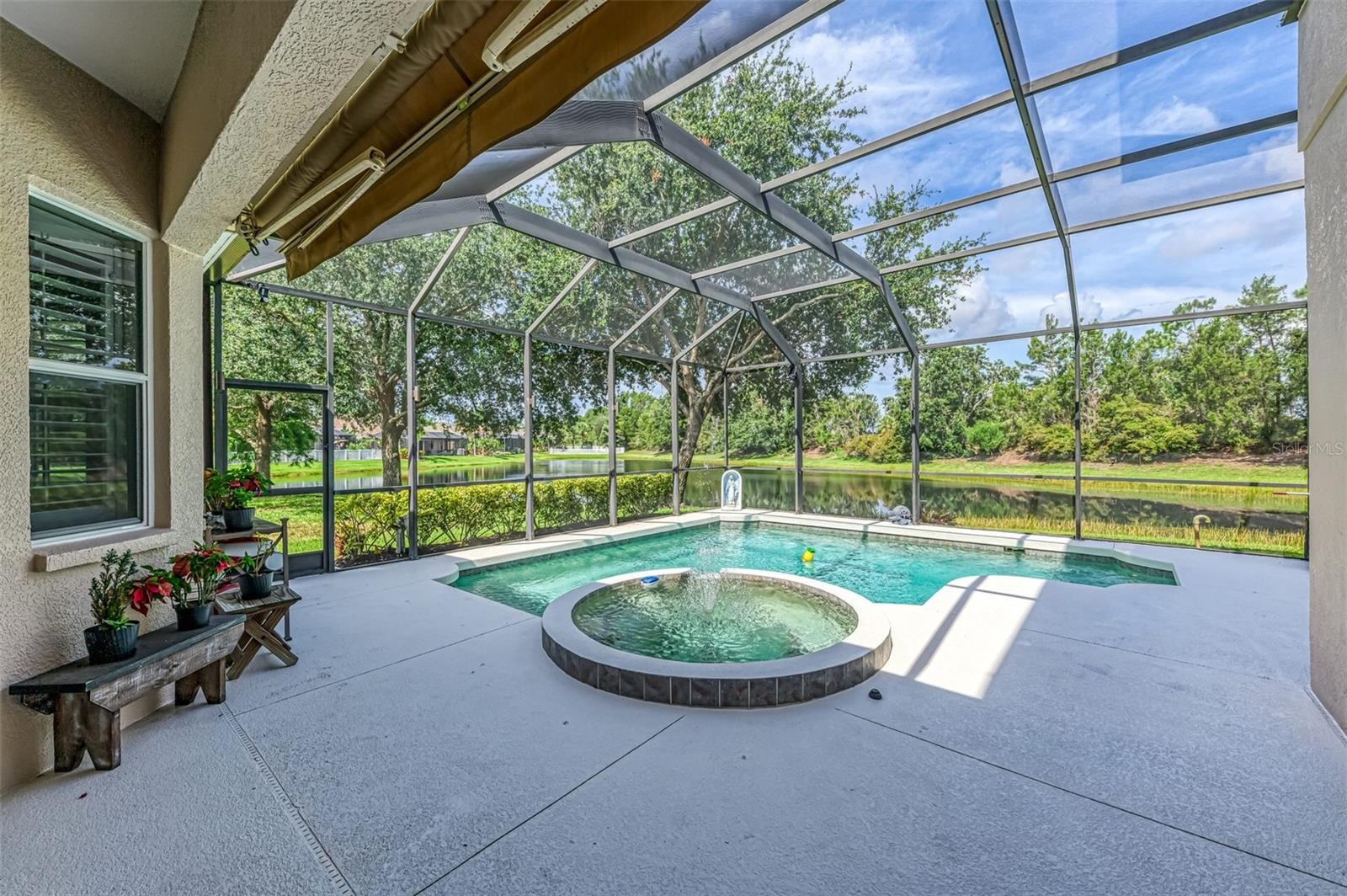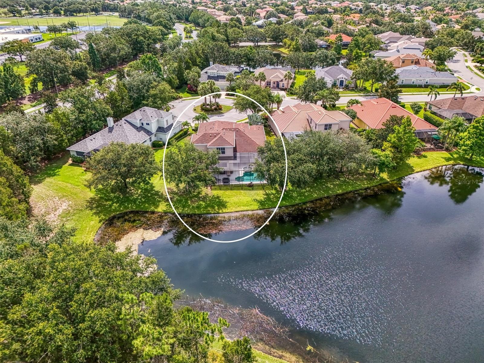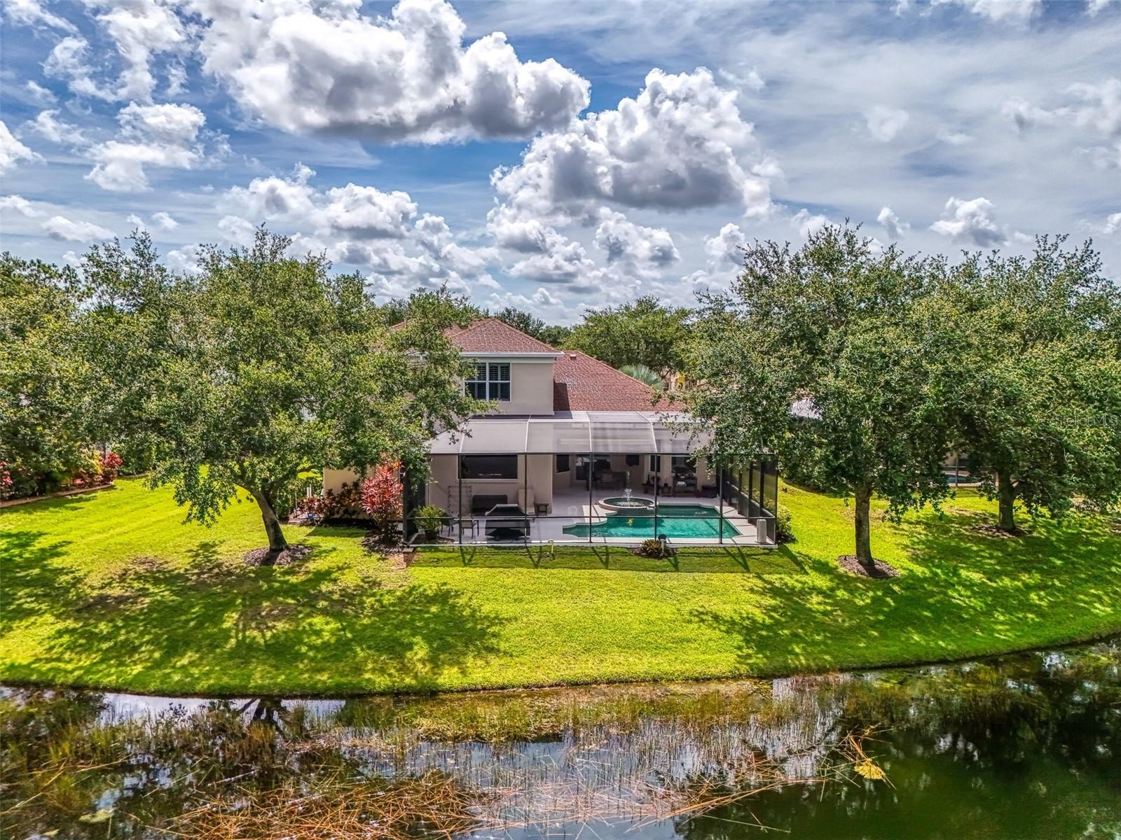 Brand new roof installed August 2025!!! Idyllic family pool home in Lakewood Ranch! Are you dreaming of the perfect family home on a cul de sac with lush tropical vegetation and tranquil pond views? This 4 bedroom, 4 (full) bathroom home is situated on an outstanding, and rare, cul de sac lot, with wide views of the pond and natural setting in Greenbrook Village. The generous lanai with heated pool and spa is fully caged for year round enjoyment. Mature landscaping and plantation shutters complete the exterior charm. The interior ground level features a large eat-in kitchen with a gas range, separate breakfast nook and formal dining room. The ground level includes the oversized master suite with a sitting area and large en suite bathroom, two additional guest bedrooms, two additional full baths and the large laundry room with abundant storage. The upstairs features a large bonus room and guest suite with the fourth full bathroom, making it the perfect space for teens or guests and activity area / game room. The attached three-car garage provides ample space for your vehicles, toys and storage. Enjoy walking to the parks nearby as well as both the fantastic elementary and middle schools. Additional features include: Water heater replaced in June 2022; Culligan water softener installed in 2018; Whole house generator installed 2020; Freshly painted inside and out and driveway sealed in 2025; Home is wired for an ADT security system.