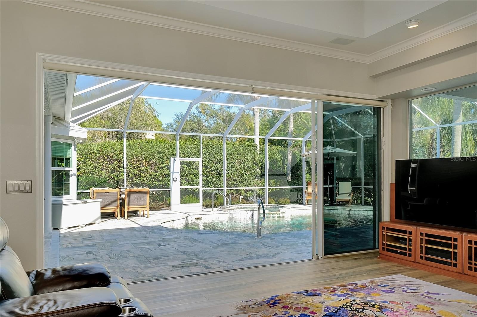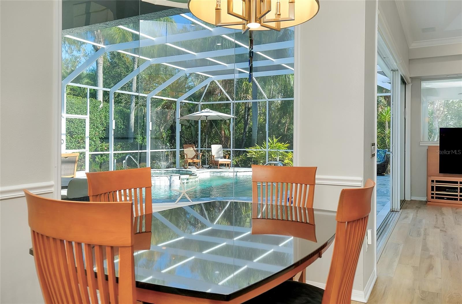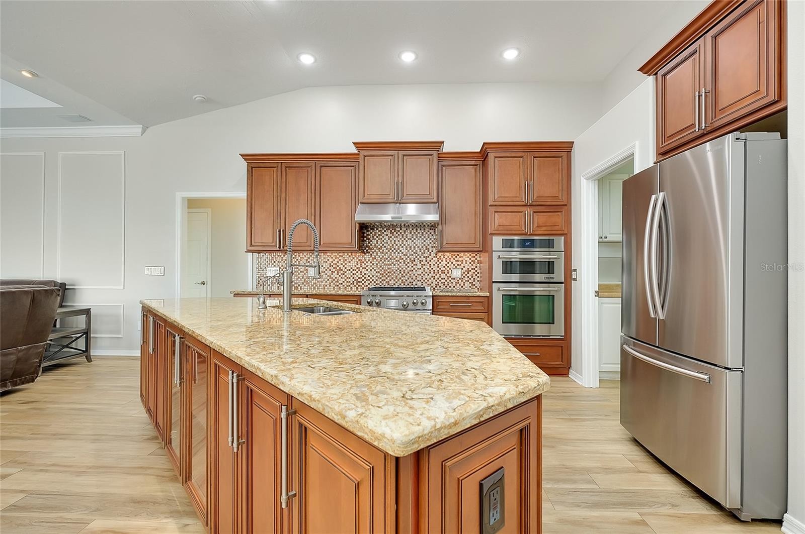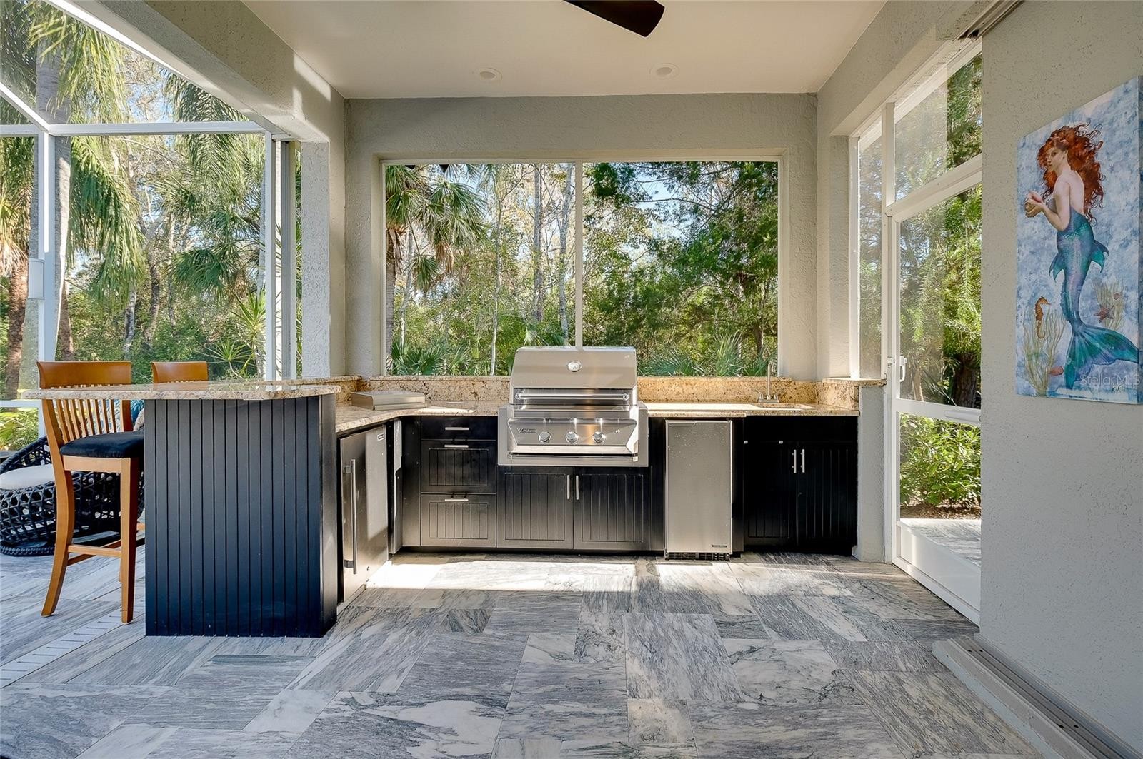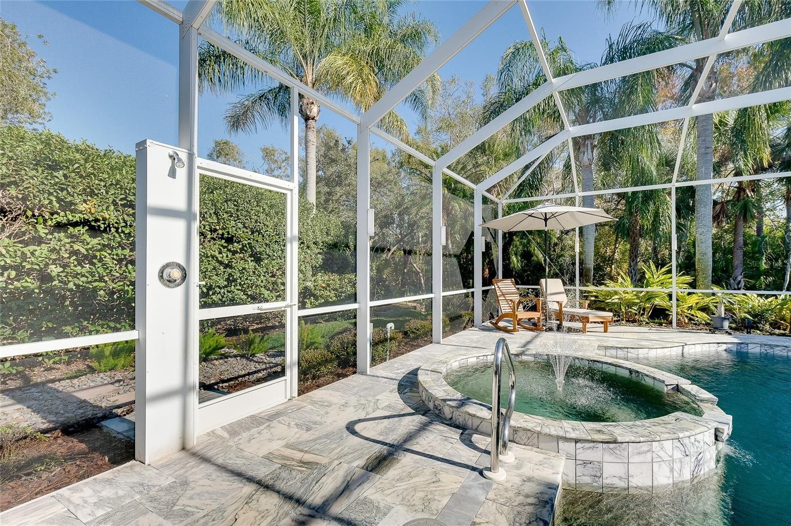 Exceptional Opportunity to discover this beautifully upgraded pool home located in the highly sought-after, gated Edgewater community of Lakewood Ranch. From the moment you arrive, the home delivers a true WOW factor, beginning with the impressive double entry featuring stunning iron doors added in 2023. Built by Todd Johnston, this residence offers a spacious split-bedroom floor plan with 3 bedrooms plus a den/office with custom built-ins, 3 bathrooms, and multiple living spaces including a formal living and dining area as well as a family room with an adjacent dinette. The home has been thoughtfully remodeled to complement its exceptionally private preserve-view lot, tucked away on a quiet one-way cul-de-sac. Designed for both comfort and entertaining, the main living areas feature newer luxury vinyl and tile flooring and flow seamlessly through fully pocketing sliding glass doors to the expansive outdoor living space. Enjoy cozy evenings by the gas fireplace, framed by quadruple sliding doors overlooking the impeccably landscaped backyard and serene preserve views. The gourmet kitchen is a chef’s delight, showcasing granite countertops, rich wood cabinetry, and stainless steel appliances, including a Wolf gas range and double oven. The spacious primary suite offers a tranquil retreat with a bay window overlooking the preserve, two walk-in closets, dual vanities, a soaking tub, a separate shower, and a private water closet. The secondary bedrooms, additional bathrooms, and den are thoughtfully positioned on the opposite side of the home for privacy. Elegant plantation shutters are featured throughout the home, adding timeless style and functionality. The expansive outdoor living area serves as the true centerpiece of the home, thoughtfully designed to accommodate large gatherings of 25+ guests with ease and enhanced by recently added leathered marble flooring, lanai cage lighting, a fully equipped outdoor kitchen with granite countertops, gas grill and burner, sink, and refrigerator, along with an outdoor shower, large pool, and spa. One of the guest bathrooms conveniently serves as both an en-suite and a pool bath. Major upgrades have already been completed, including a new roof (2022), new A/C system (2022), new water heater (2025), pool heater (2024), and washer/dryer (2023), and all newer hurricane impact windows, offering peace of mind for years to come. First impressions truly matter, and this home delivers exceptional curb appeal. Recent exterior upgrades include a refreshed landscaping package, elegant driveway pavers, updated exterior (and interior) paint, and new gutters—all completed within the past couple years. This home is also high and dry, being built higher than others in the area. Edgewater Village boasts a prime Lakewood Ranch location near University Parkway and Waterside, with very low HOA dues that even include kayak AND canoe storage at Lake Uihlein—perfect for leisurely paddles to Lakewood Ranch Main Street. With easy access to world-famous Florida beaches, exceptional shopping and dining, and multiple major airports, this home offers the ultimate Florida lifestyle. Don’t miss your opportunity to make this extraordinary property your private paradise.