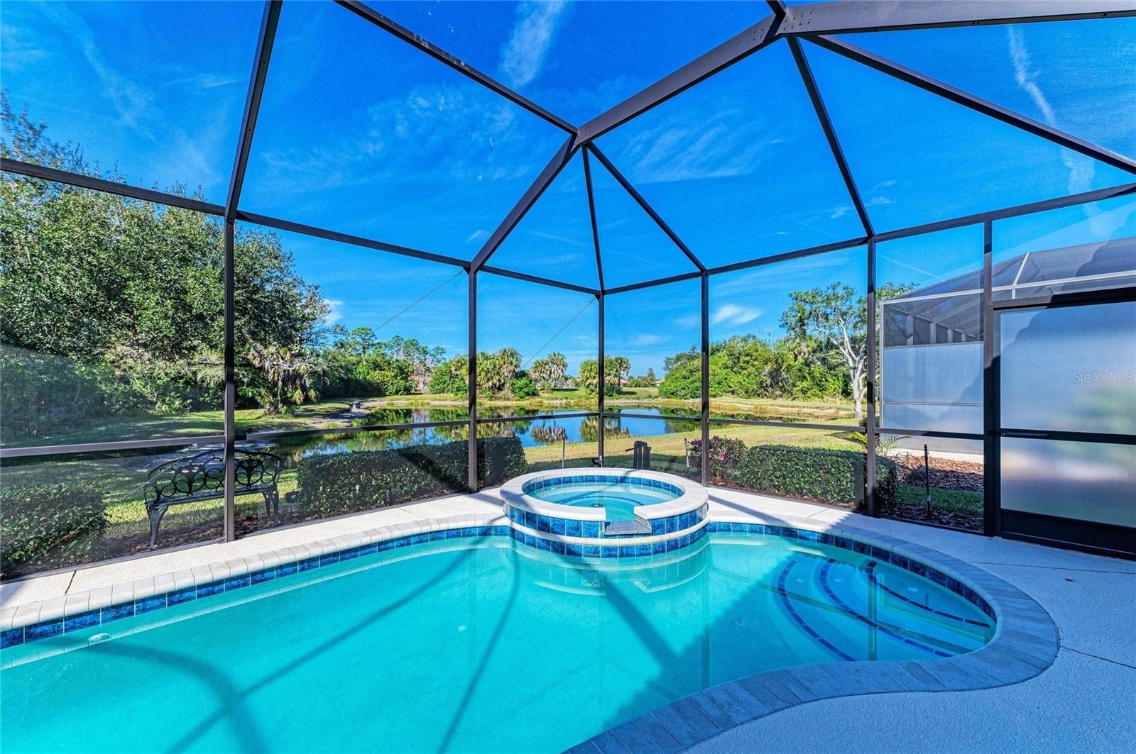 Perfectly positioned in the highly sought-after Tara Preserve, this meticulously maintained Lee Wetherington home enjoys tranquil pond and golf course views, creating a calm, retreat-like atmosphere. Step outside to your own private escape, where a sparkling pool and spa, outdoor kitchen, and breathtaking Florida sunsets set the stage for relaxed outdoor living night after night. Inside, abundant windows and triple-pane sliding glass doors flood the home with natural light and open seamlessly to the outdoor living space, creating a bright, open feel ideal for year-round enjoyment. Tile and laminate flooring throughout keep the space clean and cohesive, while the kitchen offers granite countertops, stainless steel appliances, pull-out shelving, under-cabinet lighting, a built-in wine fridge, and a cozy kitchen nook with an aquarium window. The primary suite is quietly positioned, offering a peaceful retreat with tray ceilings, generous closet space, double vanities, a walk-in shower, and serene water and fairway views. The thoughtfully designed floor plan provides excellent separation of space, with the second and third bedrooms privately situated and sharing a full bath, plus a large hall closet for additional storage. The third bedroom, accented with French glass doors, works beautifully as a home office, den, or quiet sitting room. A separate interior laundry room includes a new washer and dryer (2022). Major updates are already complete, including a new tile roof (2023), new A/C (2022), and new water heater (2022). The pool has been resurfaced and upgraded with newer equipment, including a heater, pump, and filter. Additional features include hurricane shutters, surround sound, a fireplace with custom entertainment center, landscape lighting, and a super clean two-car garage. Residents of Tara Preserve enjoy low HOA fees that include cable and internet, along with access to a heated community pool and spa, clubhouse, and pickleball courts. Surrounded by Tara Golf & Country Club and The Preserve Golf Club, with golf membership optional, the community is ideally located near I-75, UTC shopping and dining, Sarasota Airport, downtown Sarasota, Tampa/St. Pete, and the area’s stunning Gulf Coast beaches. CDD is included in the taxes, adding to the overall value and ease of ownership.