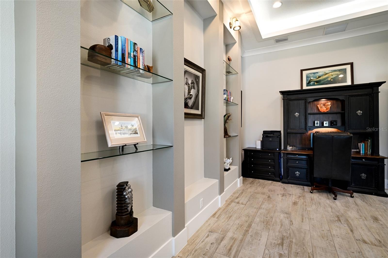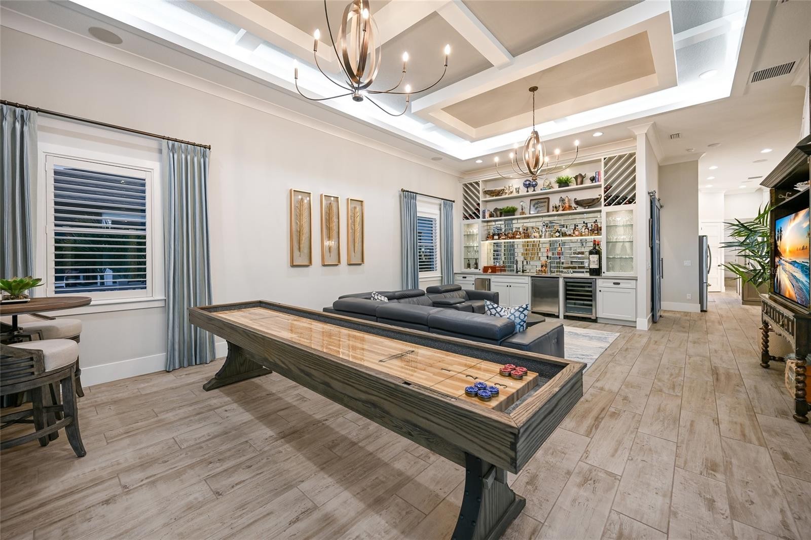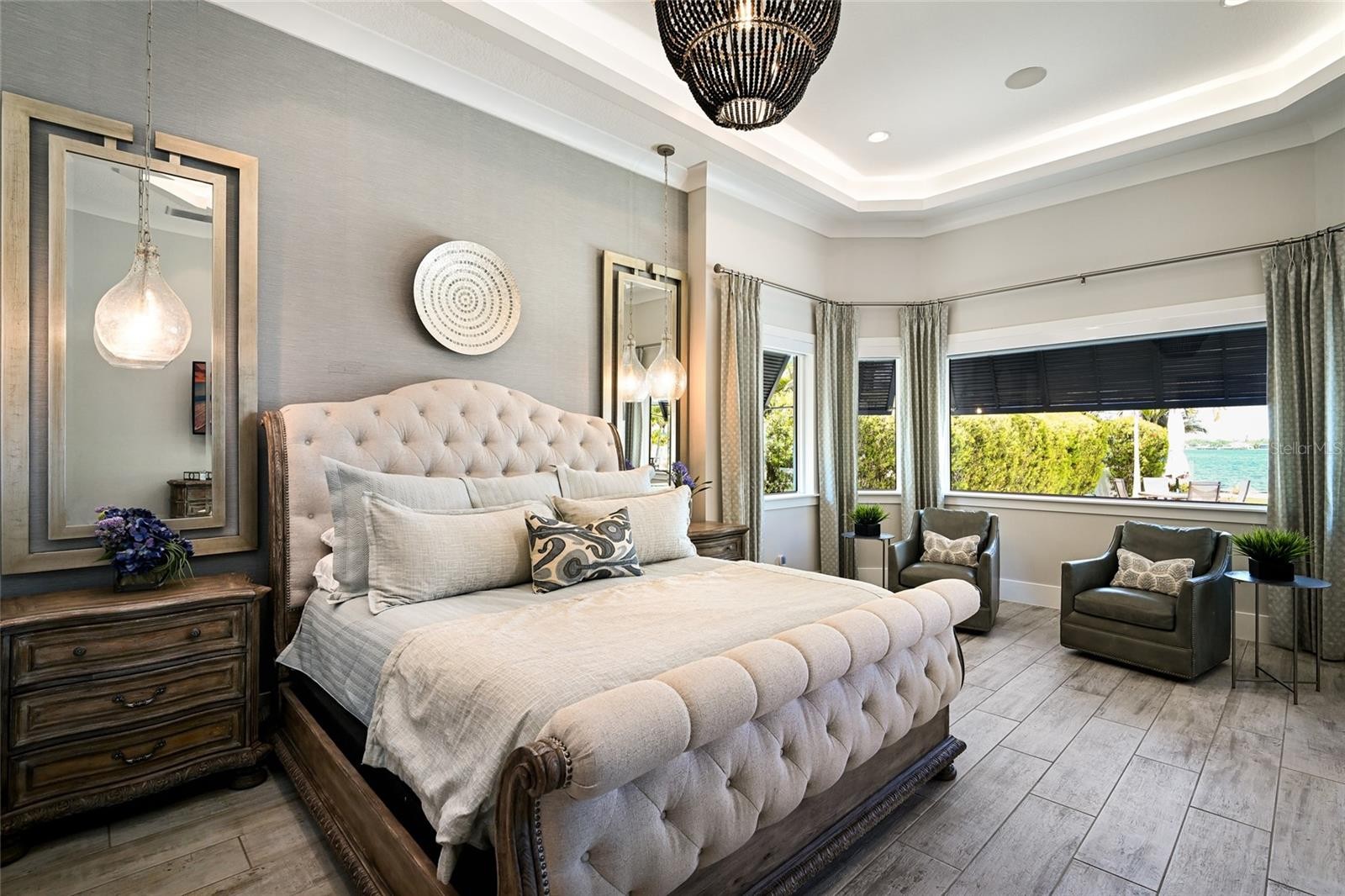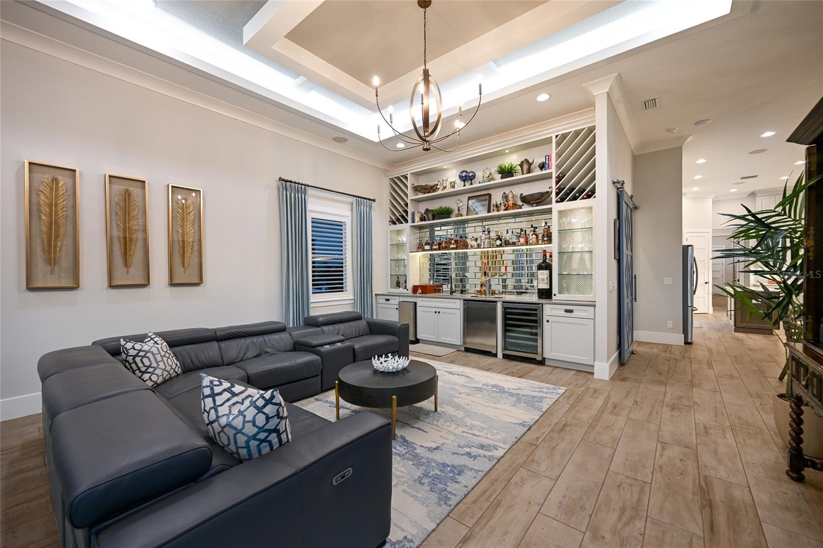 An extraordinary opportunity to own over 4,100 square feet of refined, single-level living on direct open water, complete with a private dock set against a breathtaking waterfront backdrop. Located within the exclusive, double-gated enclave of The Reserve at Harbour Walk on the Manatee River, this exceptional 2021-built estate offers the pinnacle of privacy, elegance, and coastal sophistication. From the moment you enter through the striking glass entry, you are welcomed by sweeping, unobstructed water views and a light-filled interior designed to impress. Professionally decorated with impeccable attention to detail, the home is offered furnished with an acceptable offer—presenting a true luxury experience. The grand vaulted living room showcases a sleek fireplace feature wall and a seamless blend of contemporary design and relaxed elegance. Expansive hurricane-impact windows and pocketing sliding glass doors seamlessly connect indoor and outdoor living spaces, while providing both beauty and peace of mind. The owner’s suite is a tranquil retreat, perfectly positioned to capture serene water vistas and complemented by a spacious walk-in closet. The spa-inspired bath features upscale finishes, dual vanities, and an oversized walk-in shower with a soaking tub enclosure. Guest accommodations are thoughtfully designed for comfort and privacy, each with adjacent baths. An expansive bonus room elevates the home’s entertainment appeal, complete with a wet bar, kegerator, and refrigerator—perfect for hosting while enjoying spectacular sunset views. A private office offers flexibility and can easily serve as a fourth bedroom. Outdoors, two generous lanai areas provide the ultimate waterfront lifestyle experience, enhanced by electric storm screens for added protection and comfort. A full outdoor kitchen, bar seating, and ample lounging space create an inviting setting to enjoy panoramic water views, vibrant sunsets, and abundant wildlife. The private dock is equipped with two boat lifts (30,000 lb and 10,000 lb), offering direct access to the Intracoastal Waterway and the Gulf, with waterfront dining and marinas just moments away. Further enhancing the home’s quality and resilience is a whole-house generator, ensuring uninterrupted comfort year-round. Residents of The Reserve at Harbour Walk enjoy a premier lifestyle with a guarded entrance, additional gated security, tennis courts, walking trails, kayak launch, playground, and observation pier. Ideally situated near I-75, upscale shopping and dining, world-renowned beaches, major airports, and IMG Academy, this residence embodies the very best of luxury waterfront living. This is a rare opportunity to own a fully curated waterfront retreat and experience Florida coastal living at its finest.