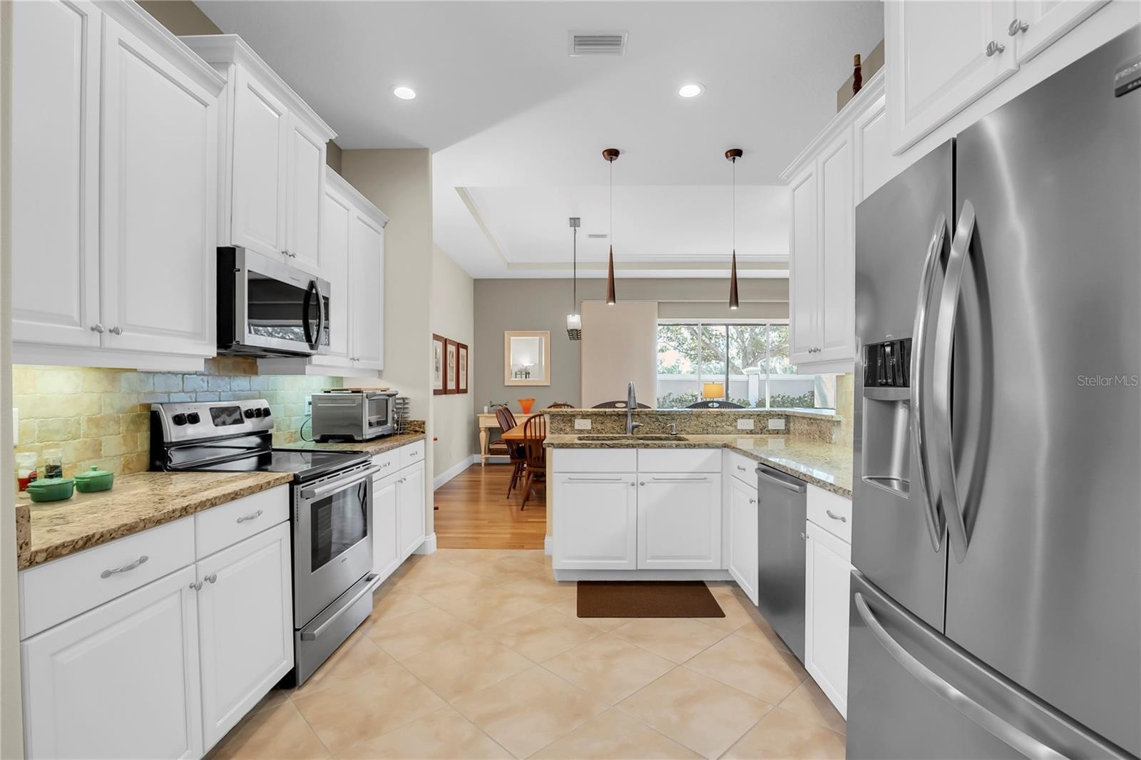 Welcome to this bright, sunny, and beautifully updated 3Bed/2Bath Medallion home located in the vibrant 55+ community of The Cascades of Sarasota. Enter through the tall, elegant, custom-made hurricane rated double front doors and inside you’ll find an open concept that connects the kitchen (featuring stainless steel appliances) with the spacious dining and living areas. A unique feature added during the home’s original construction involved expanding the size of the primary and guest bedroom (when compared to the model home), giving extra space to both. Throughout the home you’ll find wood flooring in the main living areas and tile in the bathrooms & kitchen. Off the back of the house, you’ll find triple sliding glass doors which allows easy access from the living room into the screened-in lanai which has tiled floors (not pavers). In the front of the house is an attached double car garage that connects right into the expansive laundry/utility room where you then have 2 exit points into the home. Some enhancements include: remodel of primary bathroom (2020), kitchen & bathroom cabinets refurbished (2021), full interior and exterior repainting (2019), and many more. Experience resort-style living with The Cascades of Sarasota amazing amenities. The newly renovated clubhouse is the hub for tons of social groups and events. Stay active with the community's pickleball courts, bocce ball, gym, swimming pool, walking paths, and some of the best clay tennis courts in the state.